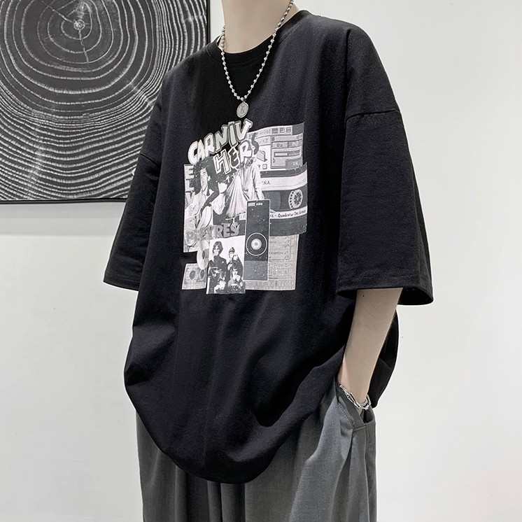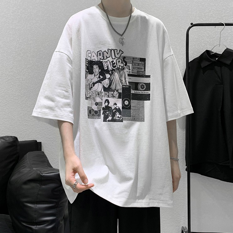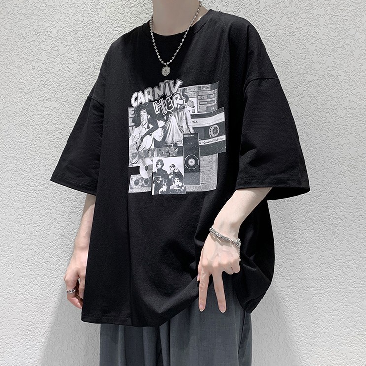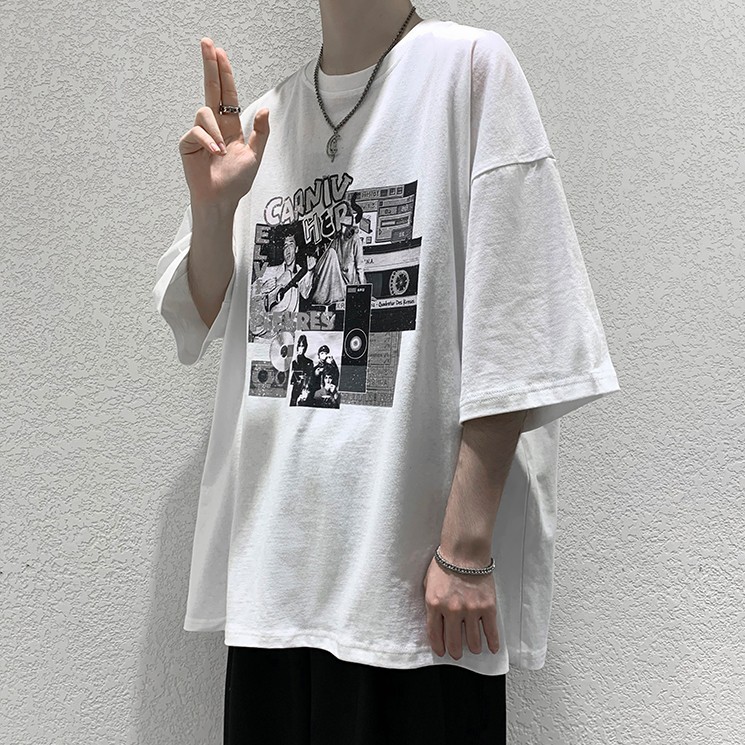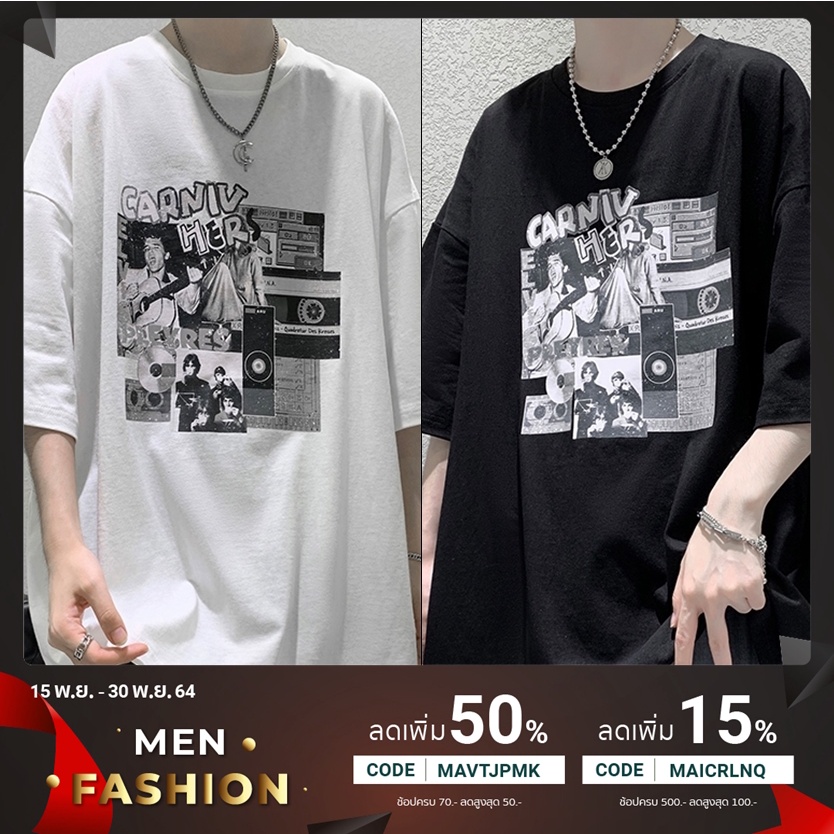 🎸POOHPAND🎸 เสื้อยืดOversize ลายวงดนตรีย้อนยุค Elvis แฟชั่นเกาหลี สวมใส่สบาย แนวสตรีท เท่ๆ ขาว-ดำ พิมพ์ลายคมชัด #2023