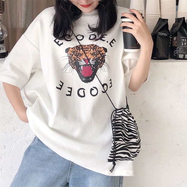 🐯POOHPAND🐯 เสื้อยืดแฟชั่น สไตล์เกาหลี Oversize ลายเสือ ขาวดำ ทันสมัย สวมใส่สบาย #2033