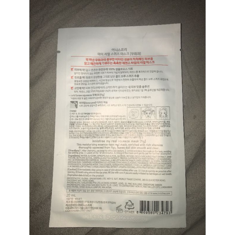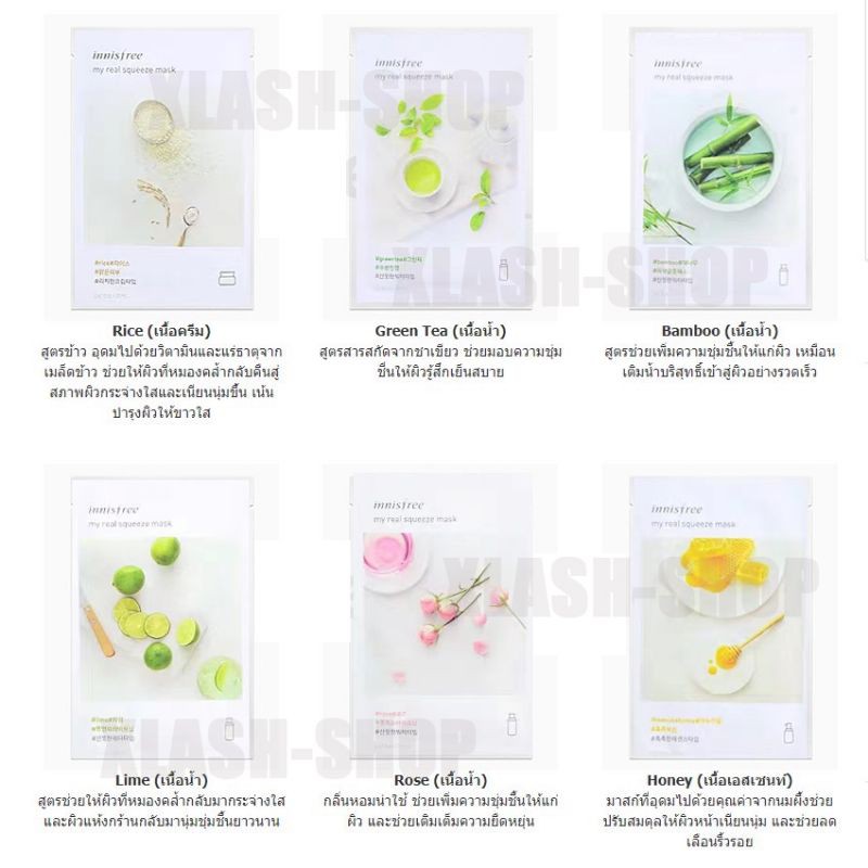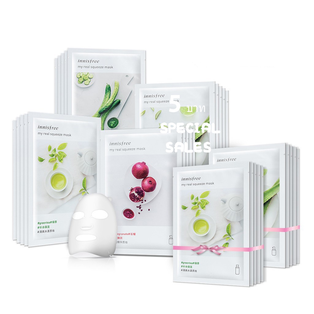 พร้อมส่ง อินนิสฟรี มาส์กหน้า 18สูตร Innisfree My Real Squeeze Mask 20ml แผ่นมาส์กหน้า มาร์คหน้า มาร์กหน้า