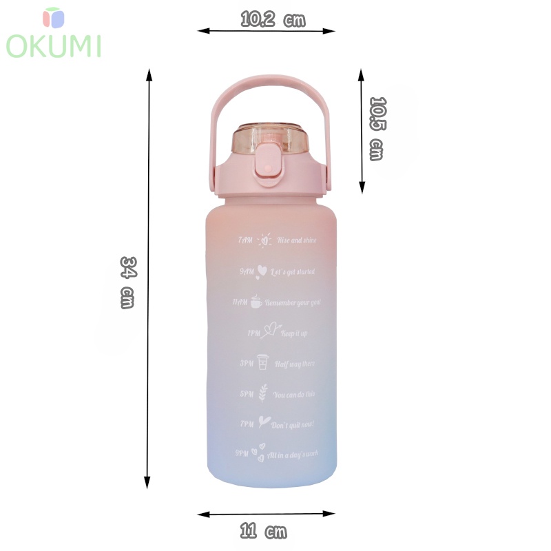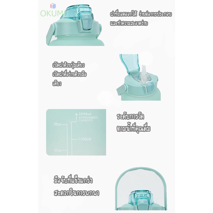 OKUMI_SHOP ขวดน้ำสีพาสเทล ขวดน้ำดื่มขนาด2ลิตร ขวดน้ำสไตล์สปอร์ต แข็งแรงทนทาน แถมฟรีสติกเกอร์สุดน่ารัก