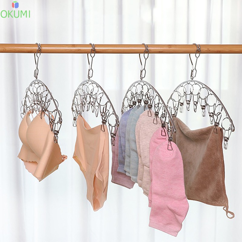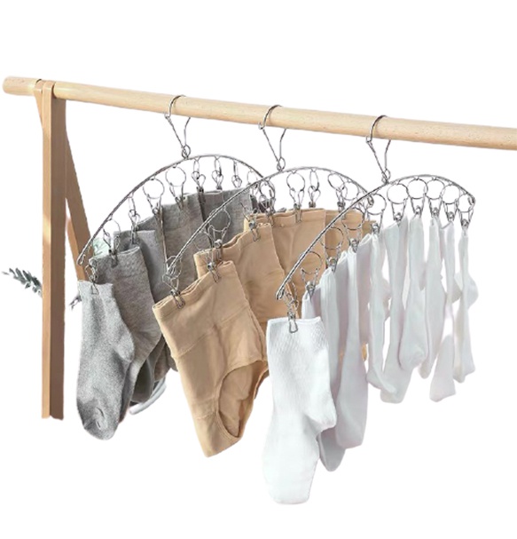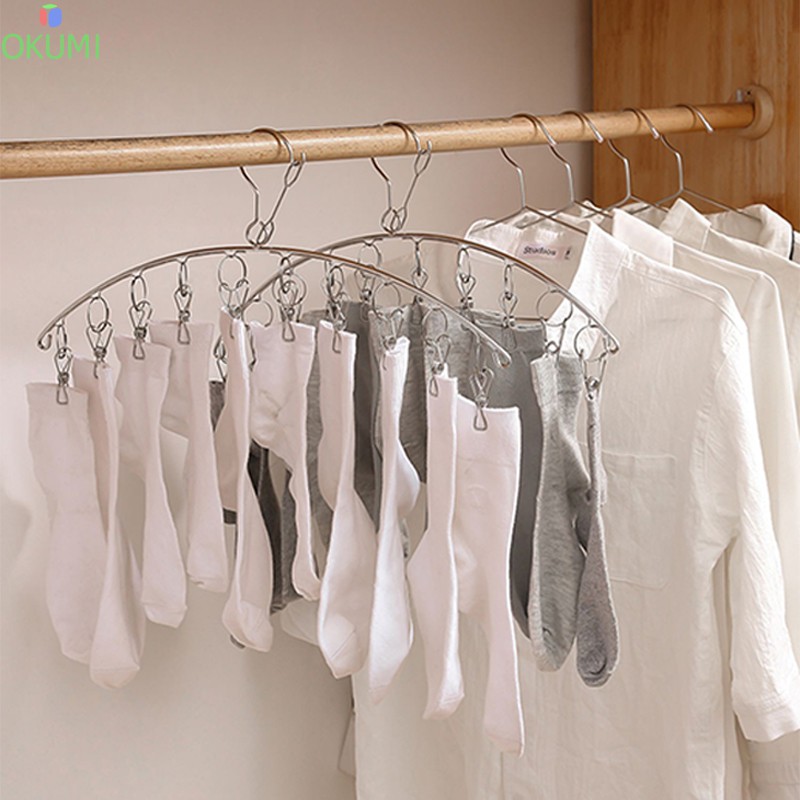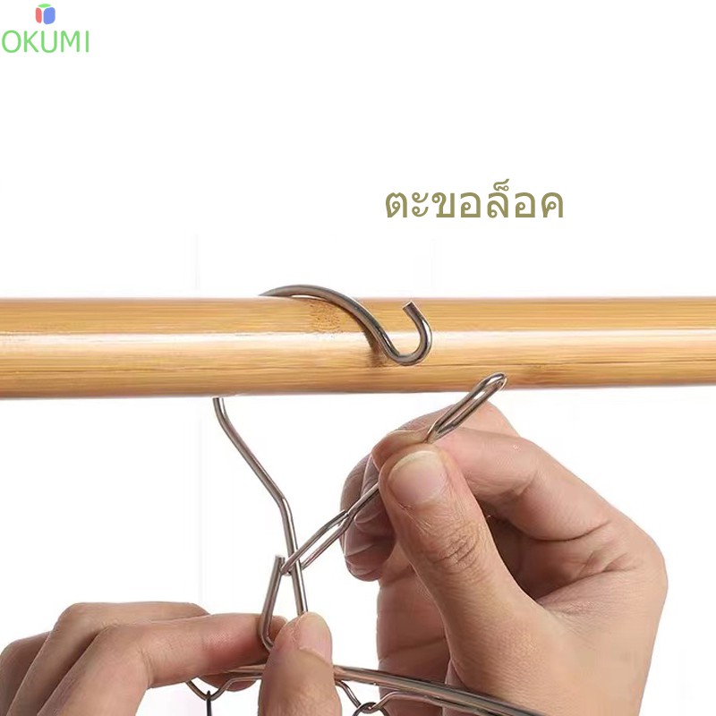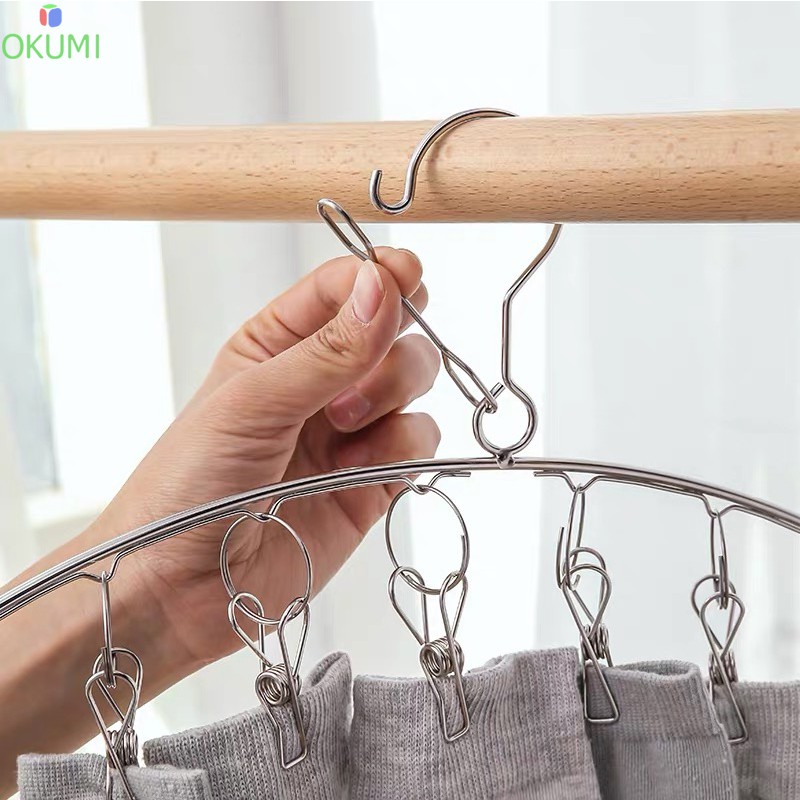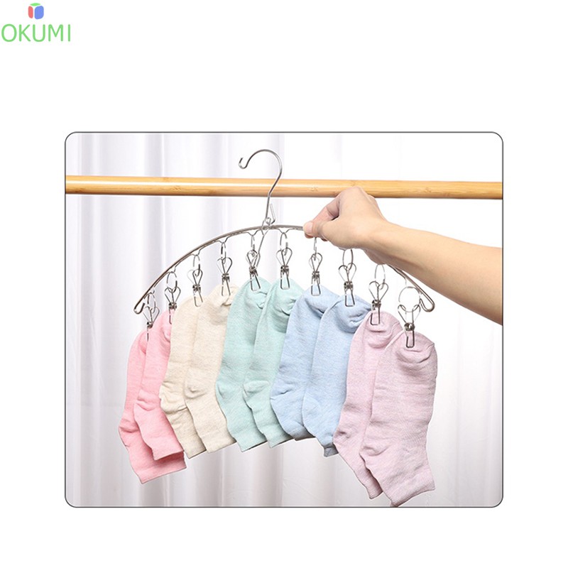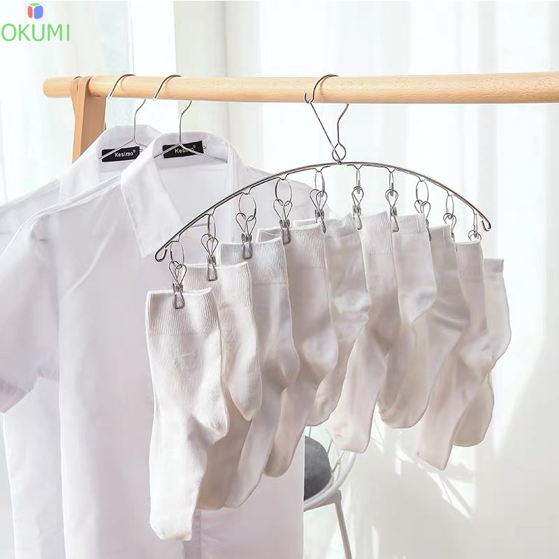OKUMI_SHOP ราวหนีบผ้า ที่หนีบผ้าสแตนเลสแบบโค้ง 10 ตัวหนีบ ม้แขวนสแตนเลส(0005)