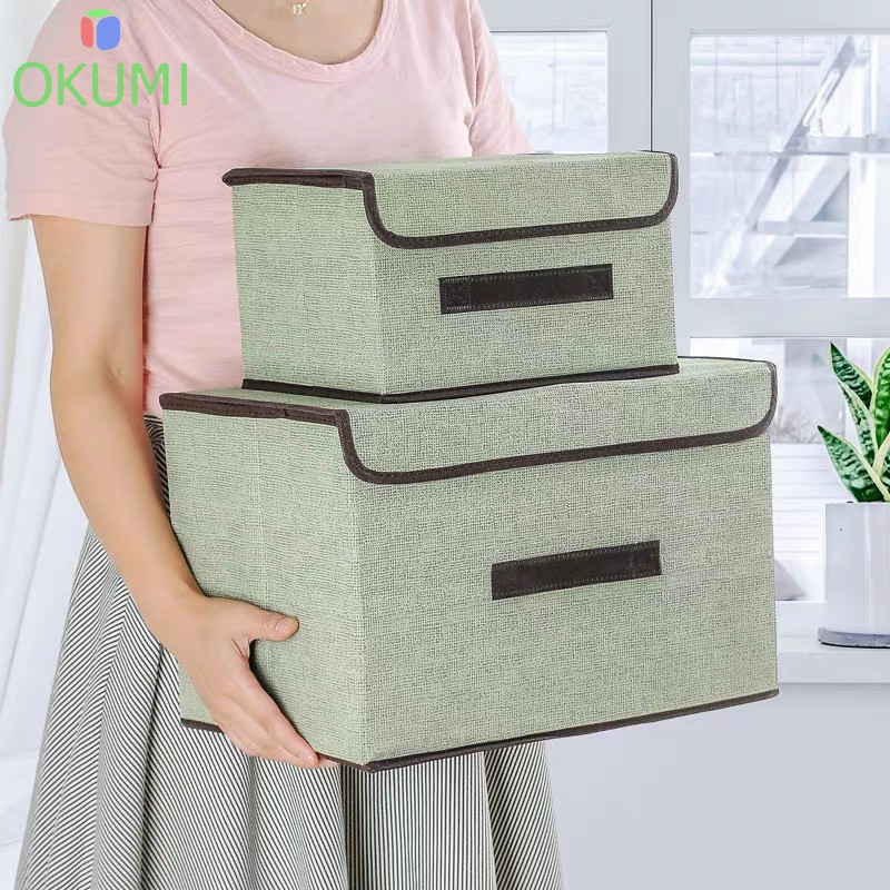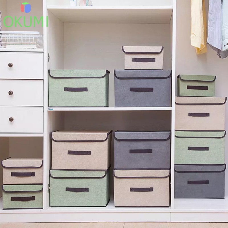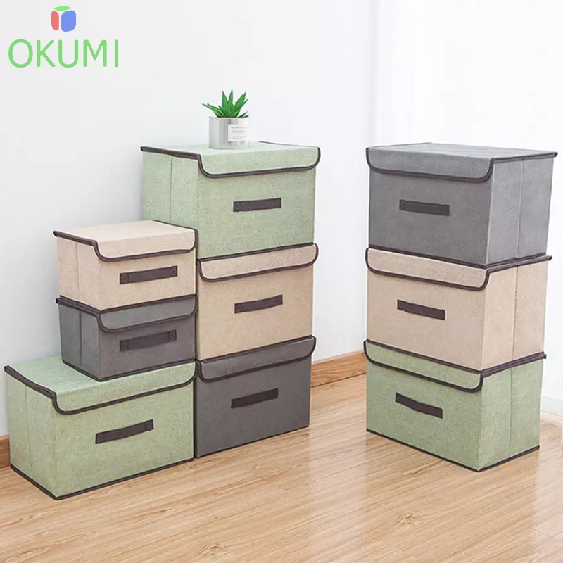 OKUMI_SHOP กล่องพับอเนกประสงค์ กล่องผ้าลินิน เก็บของ จัดระเบียบ (K-601)