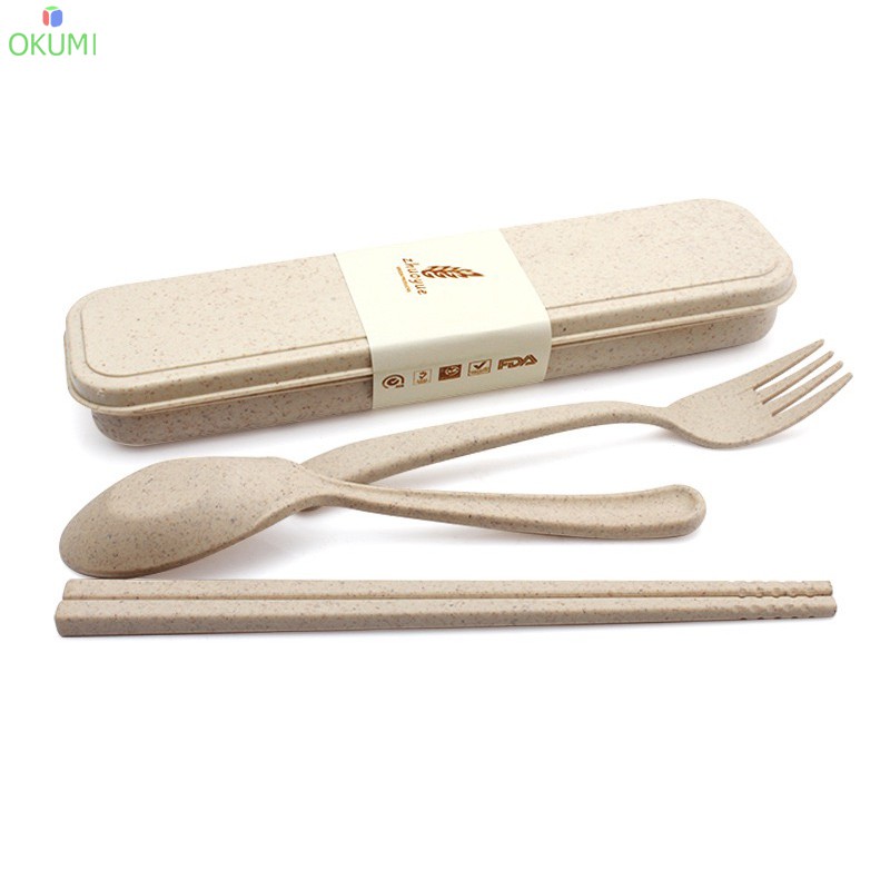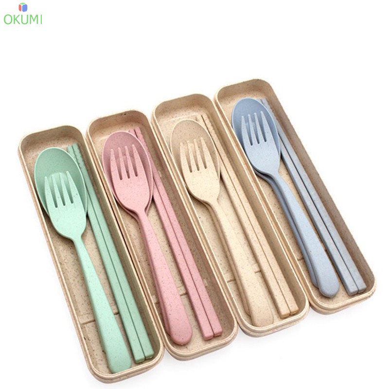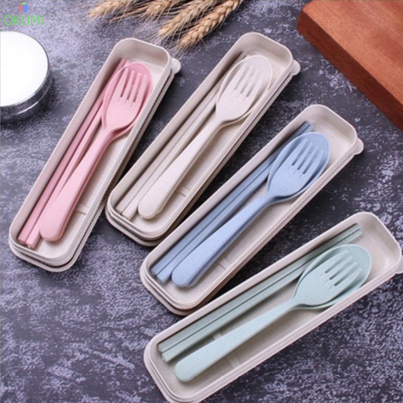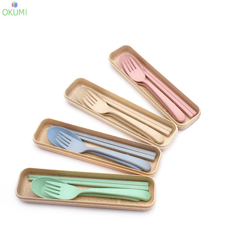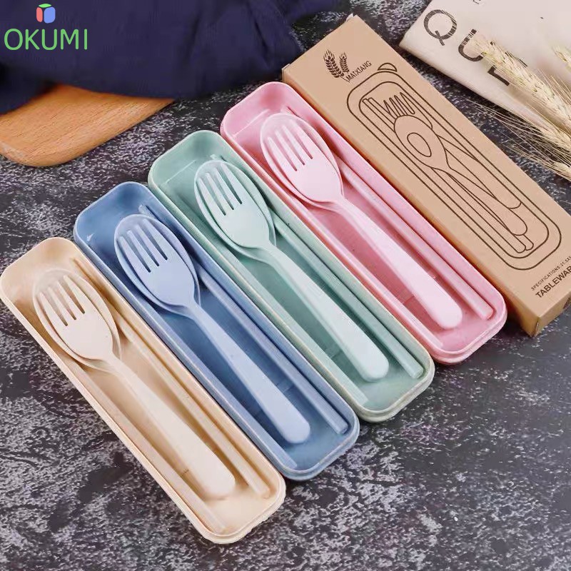 OKUMI_SHOP ชุดช้อนส้อมตะเกียบ พร้อมกล่อง มี4 สีให้เลือก K-208