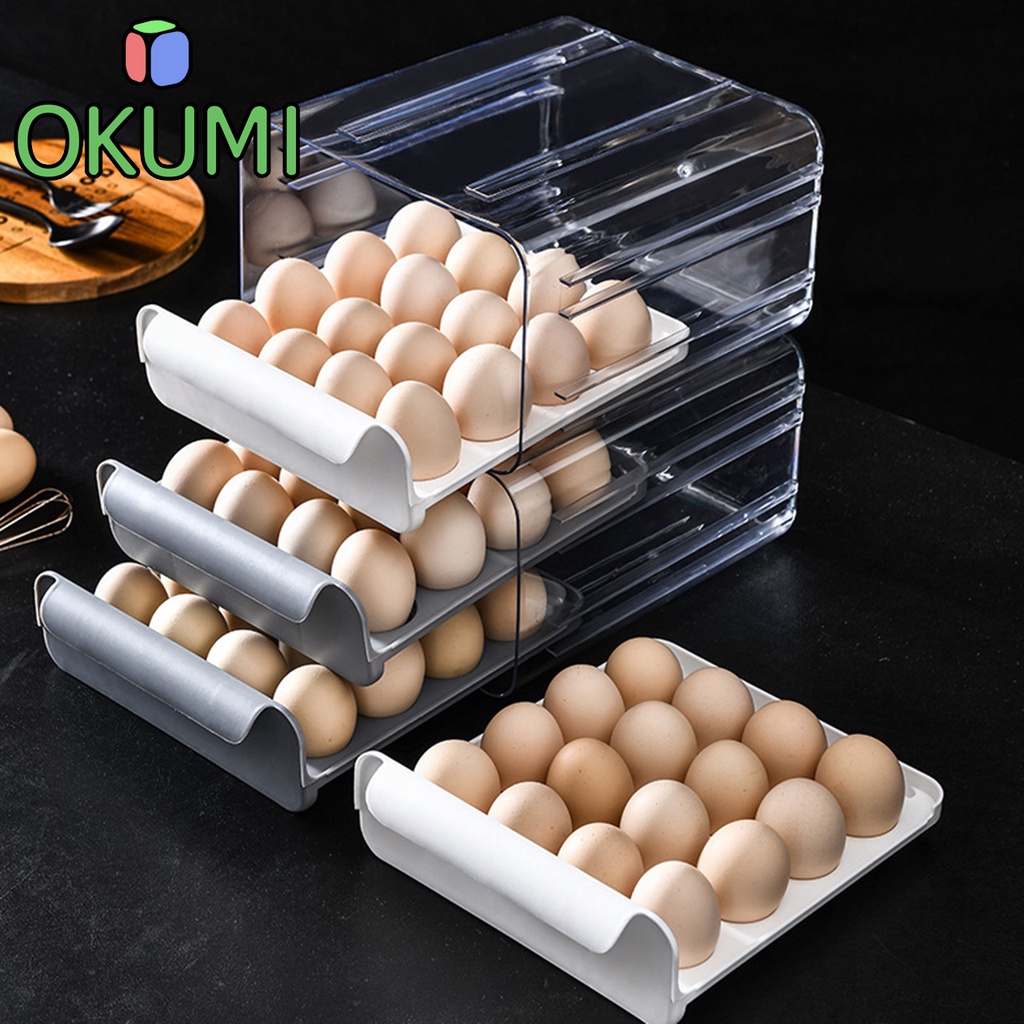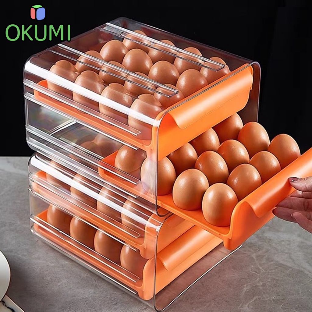 OKUMI_SHOP กล่องเก็บไข่ กล่องใส่ไข่ ที่เก็บไข่ แบบลิ้นชัก มี2ชั้นใส่ได้ 32ใบ