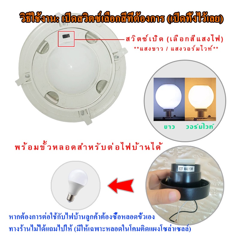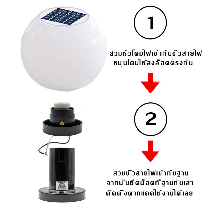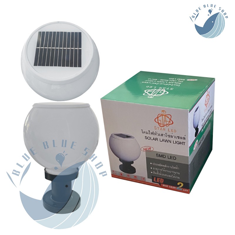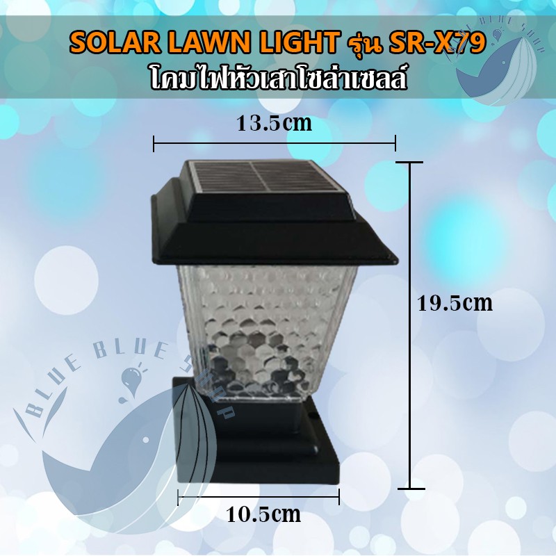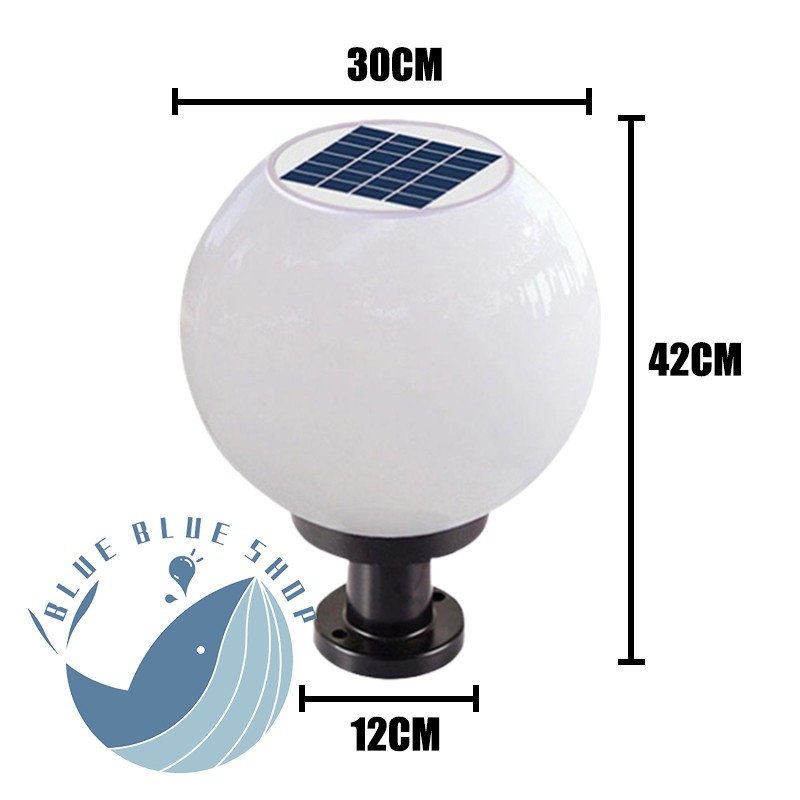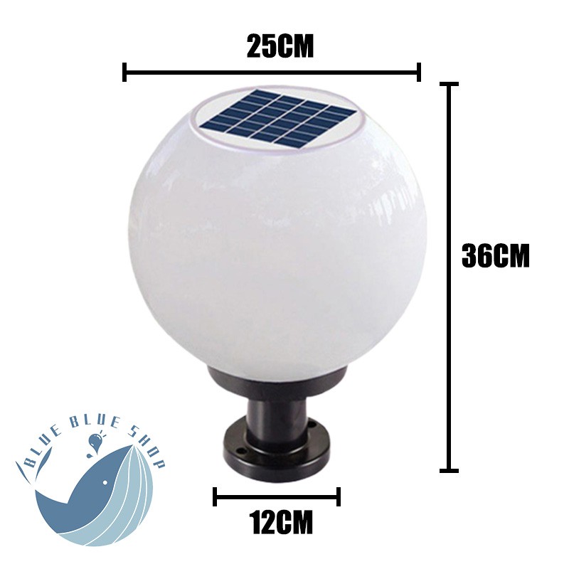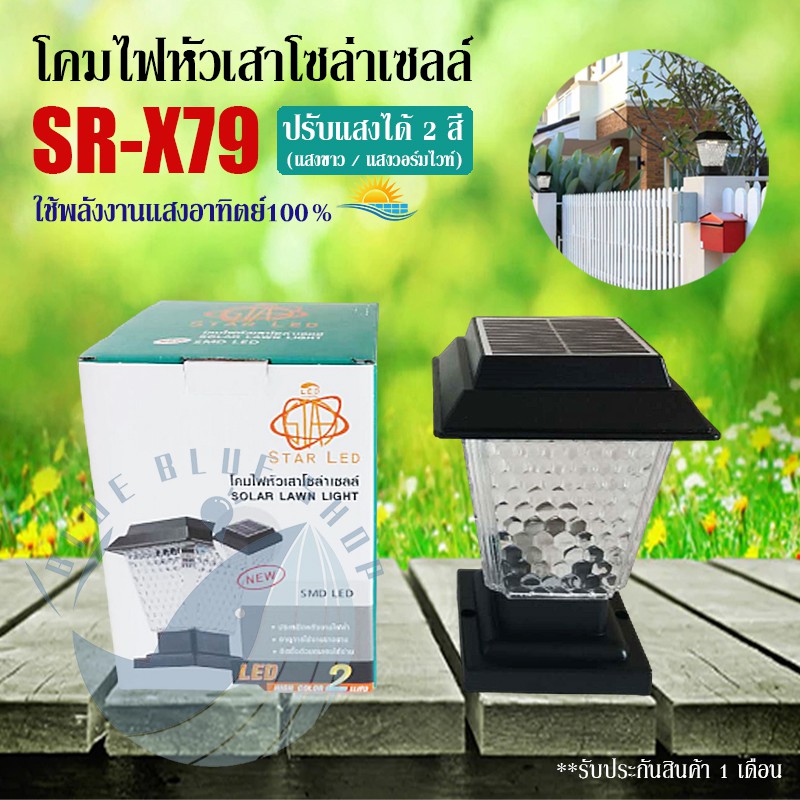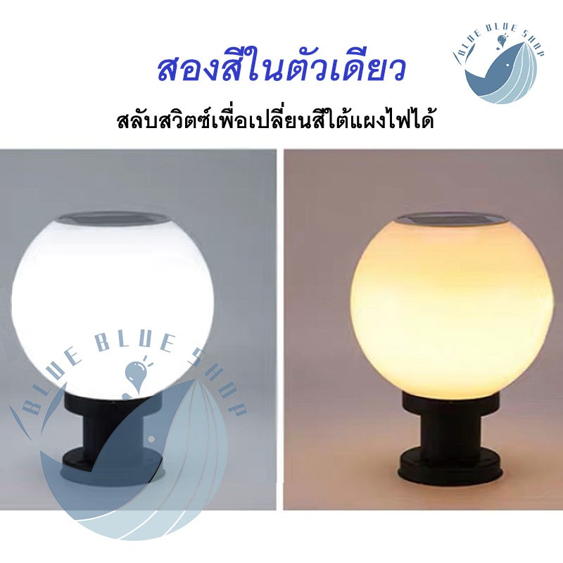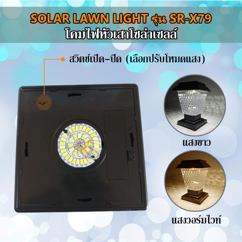 โคมไฟ โคมหัวเสาโซล่าเซลล์ รุ่น 20cm / 25cm / 30cm / SR-X79 หัวโคมไฟกลม การควบคุมแสงอัจฉริยะ 2 สี