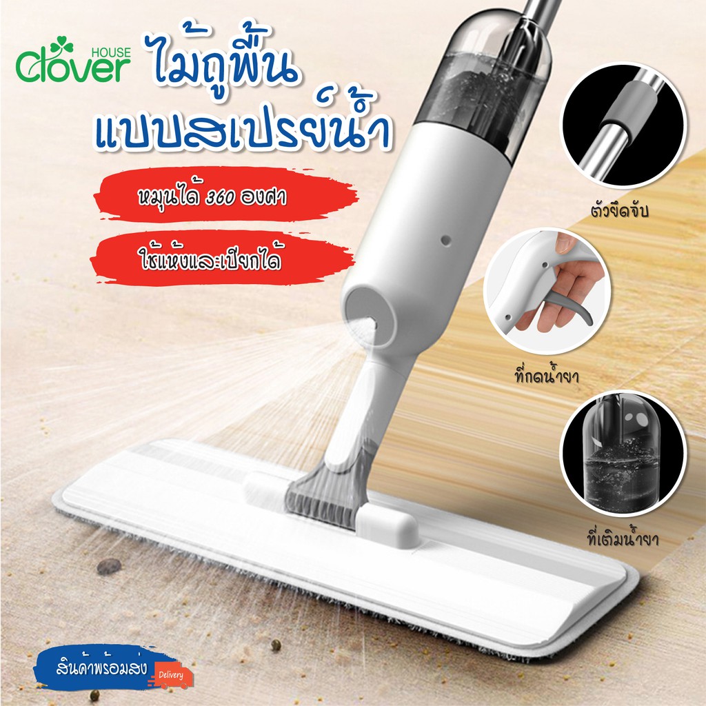 พร้อมส่ง /cloverhouse/ ไม้ถูพื้นแบบสเปรย์หมุนได้ 360 องศา ไม้ถูพื้นแบบสเปรย์ ไม้ถูพื้น หัวฉีดน้ำแบบสเปรย์ สะอาดง่าย