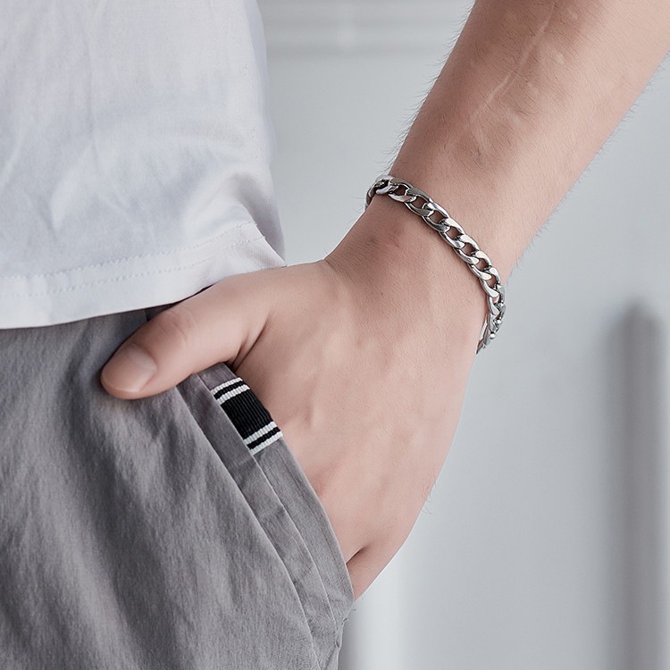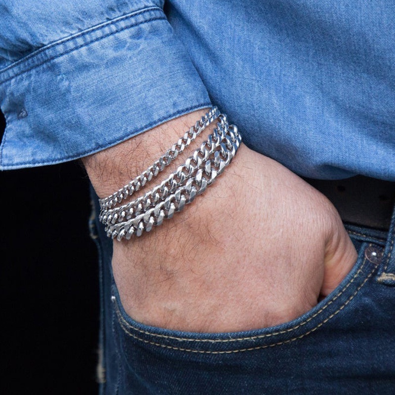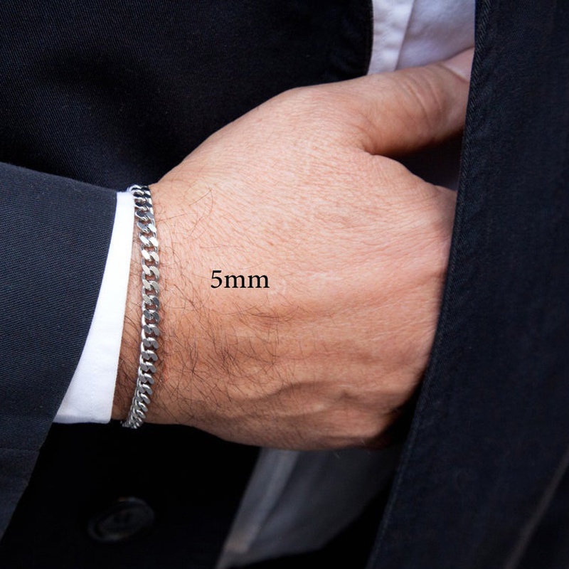 กว้าง 5 มม. แฟชั่นใหม่ สเตนเลส สีเงิน สร้อยข้อมือคิวบา ผู้ชายและผู้หญิง เครื่องประดับแฟชั่น