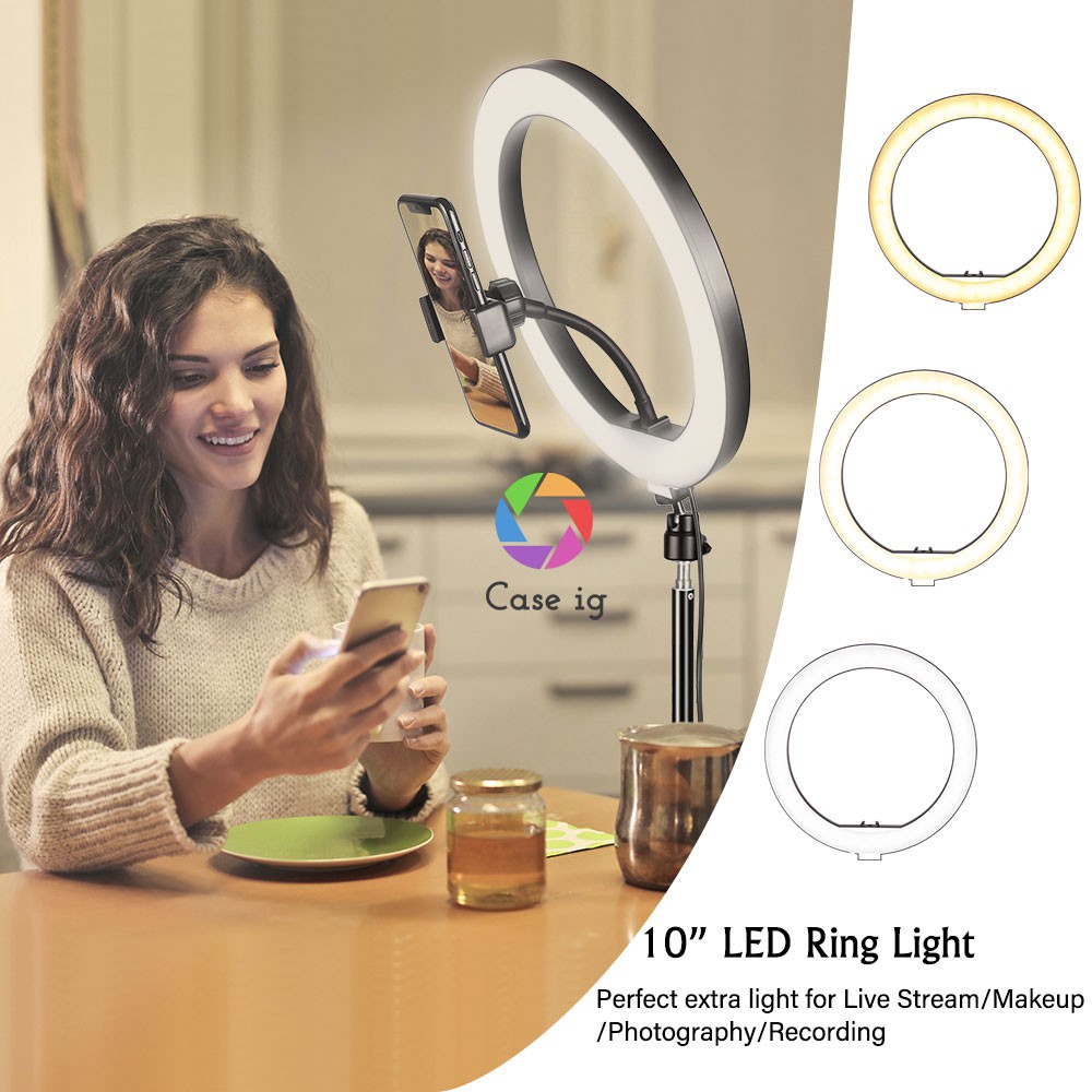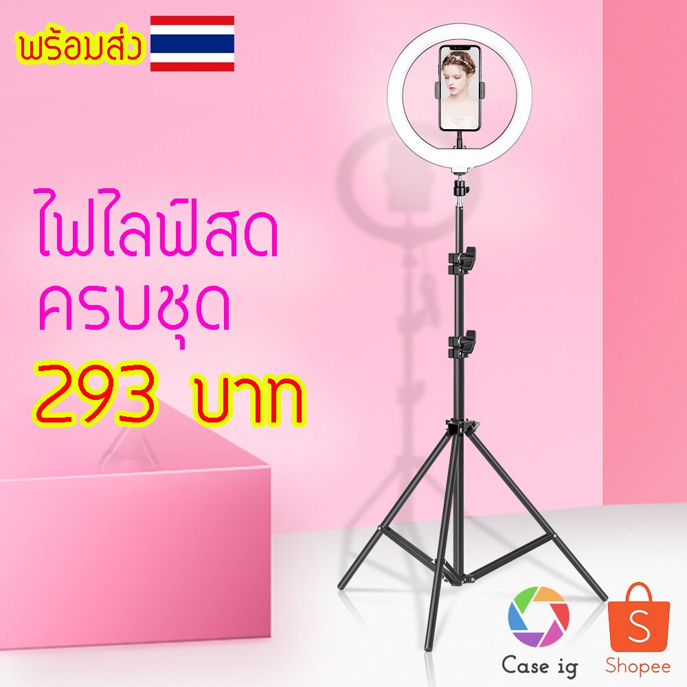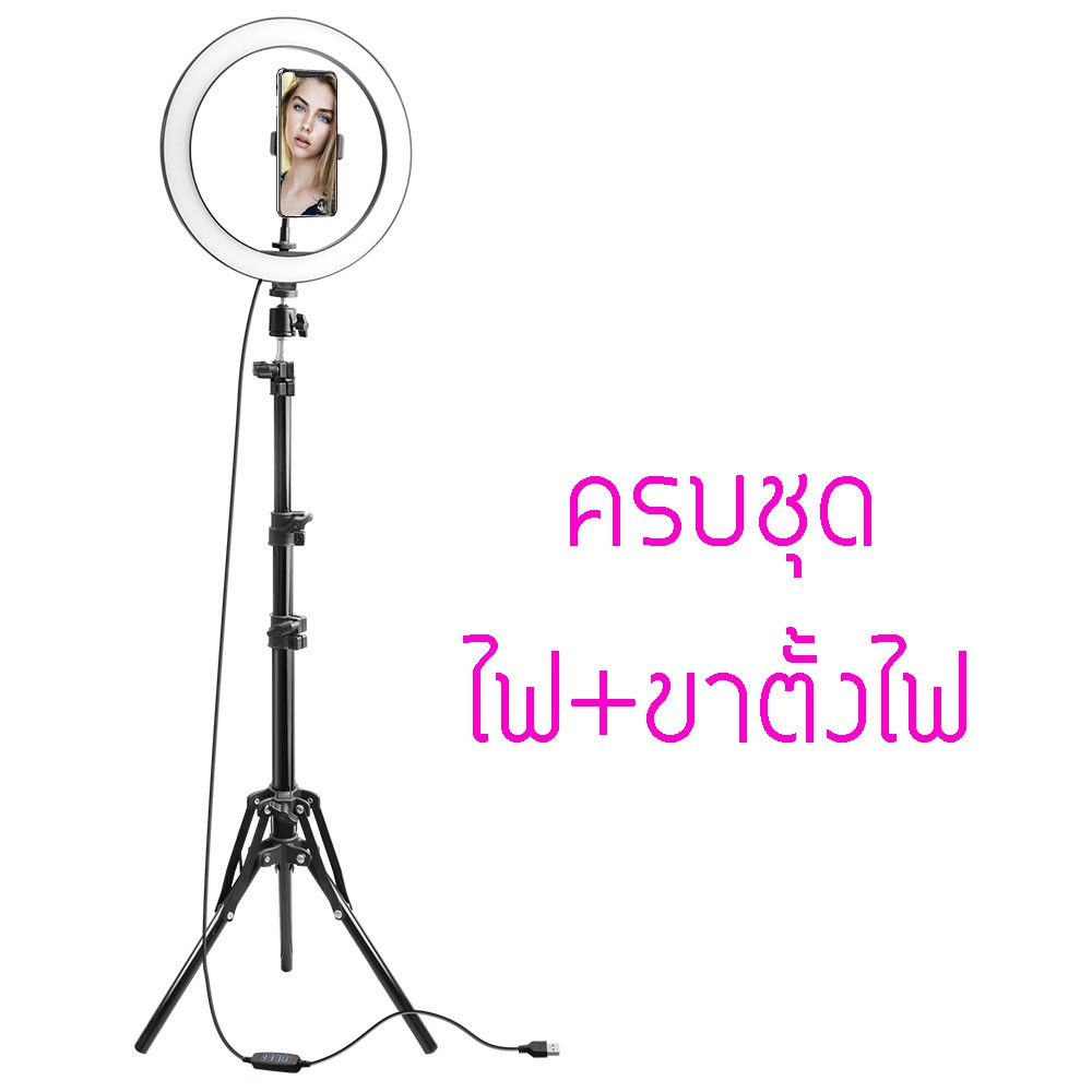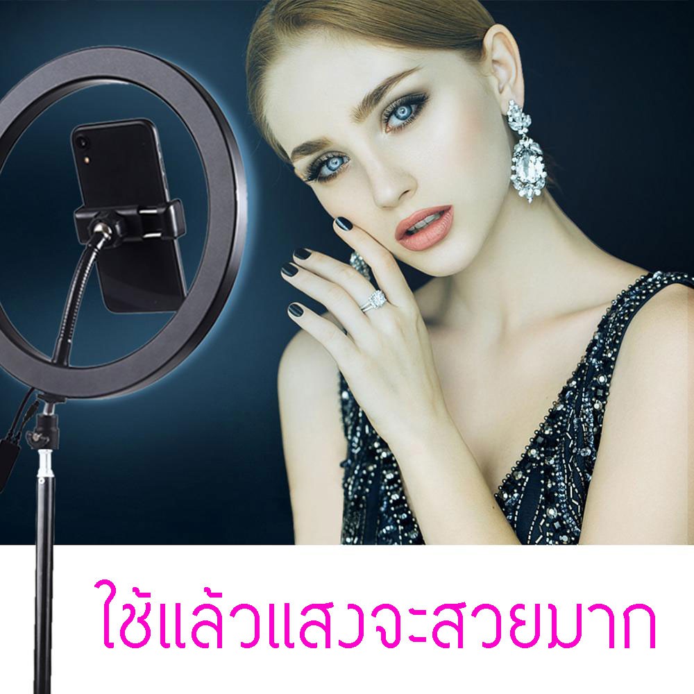 ไฟไลฟ์สด 10 นิ้ว ปรับแสงได้ ไฟแต่งหน้า ไฟ live สด ไฟกลม เซลฟี่ อัดวิดีโอ แต่งหน้า ถ่ายวิดีโอ สวยๆ