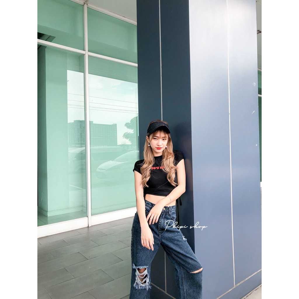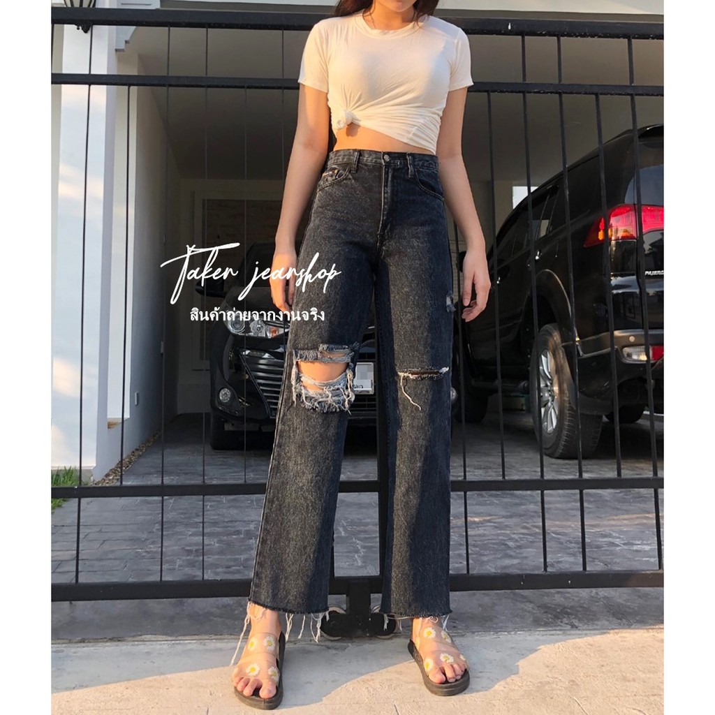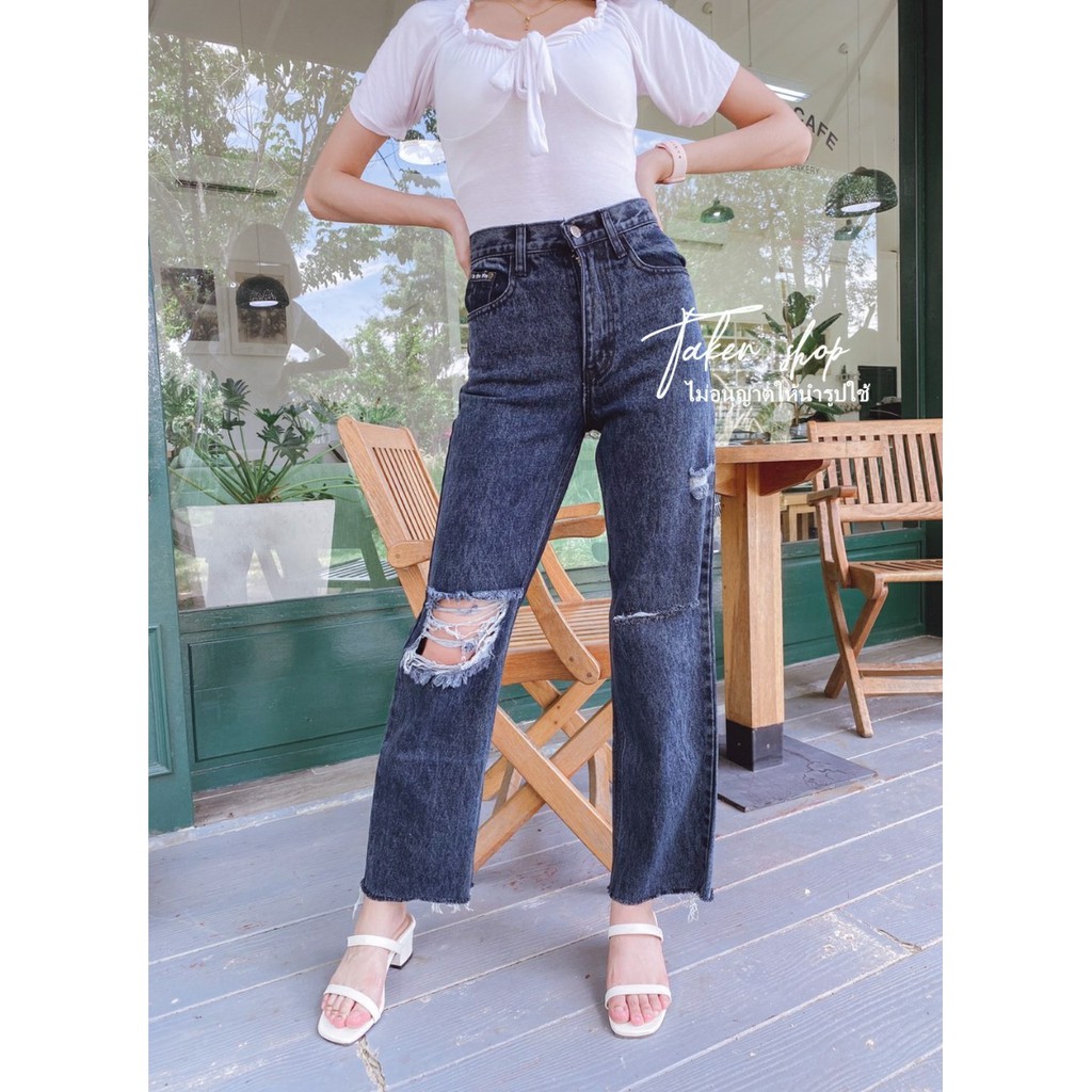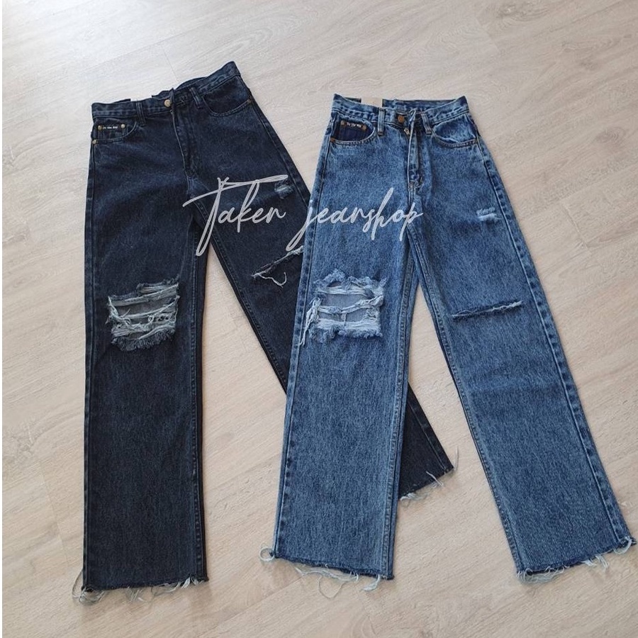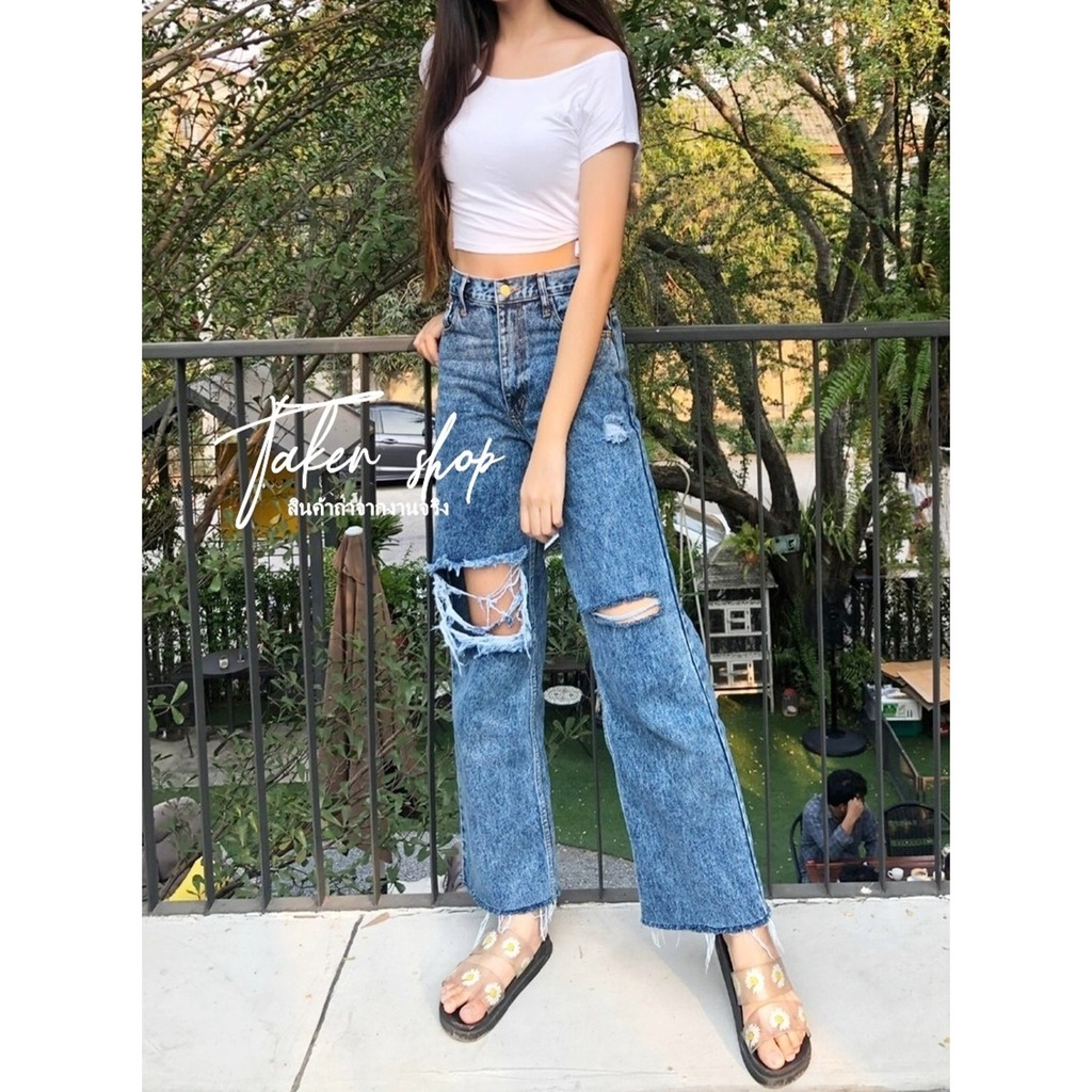 กางเกงยีนส์ขายาวทรงกระบอกเอวสูงวินเทจ TAKEN.JEANS ขายาว