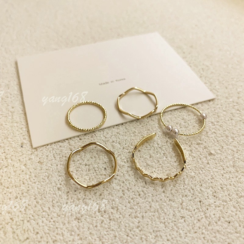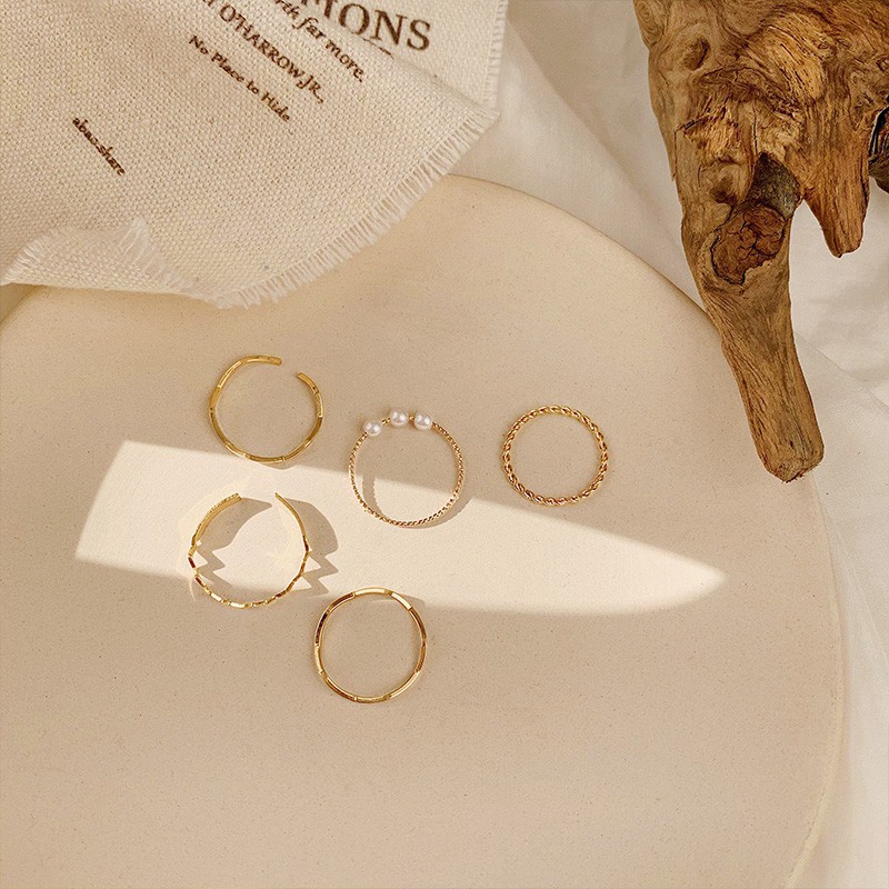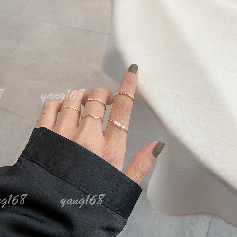 แหวนนิ้วมือ แหวนแฟชั่น แหวนเปิด ทรงคลื่น ประดับไข่มุก 5 ชิ้น / ชุด