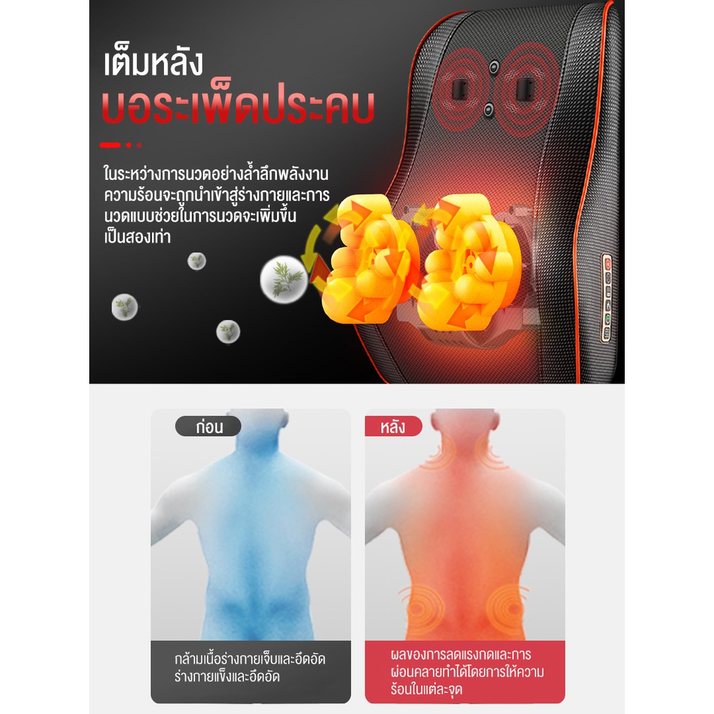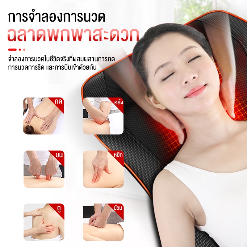 Srabuyหมอนนวดไฟฟ้า เบาะนวดอเนกประสงค์ แยกส่วนได้ ระบบสั่นแม่เหล็ก2-in-1 อัพเกรดหัวนวด20หัว หมอนรองคอ