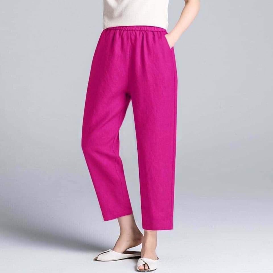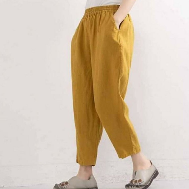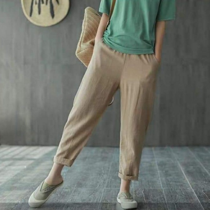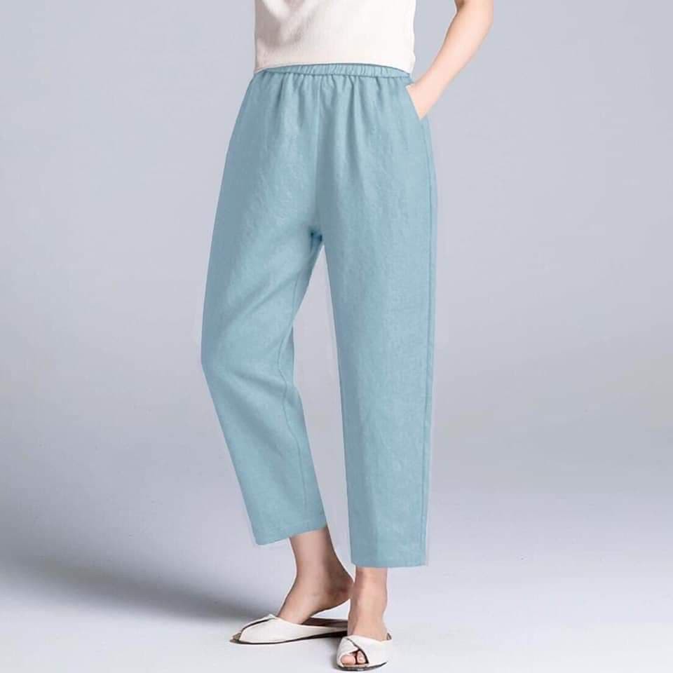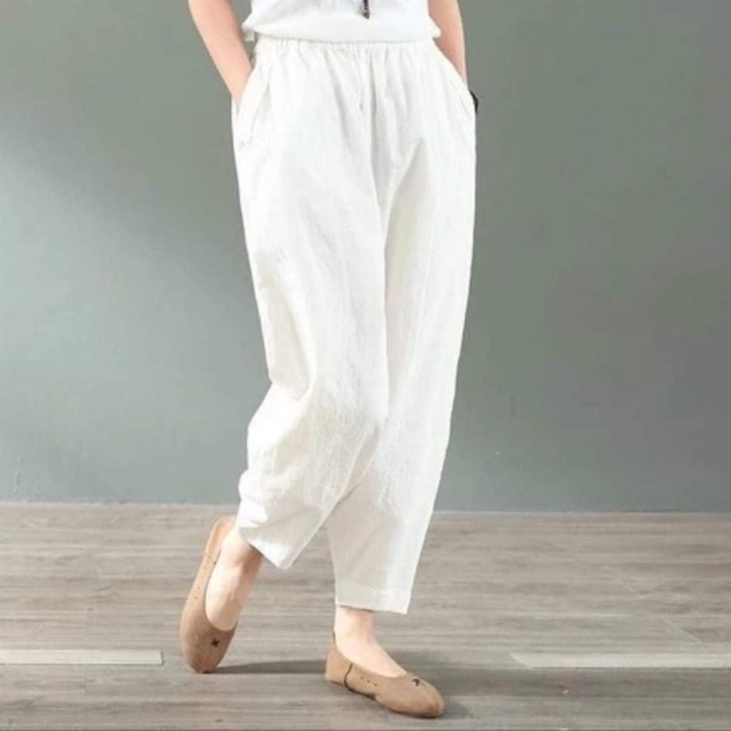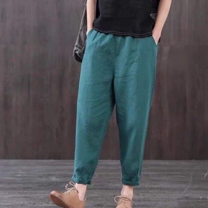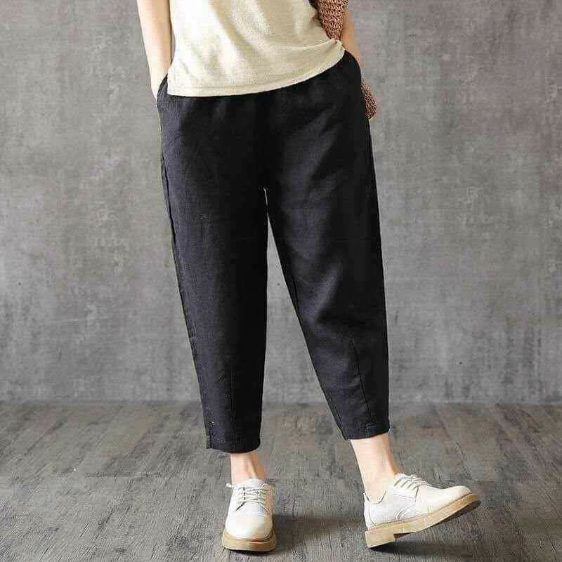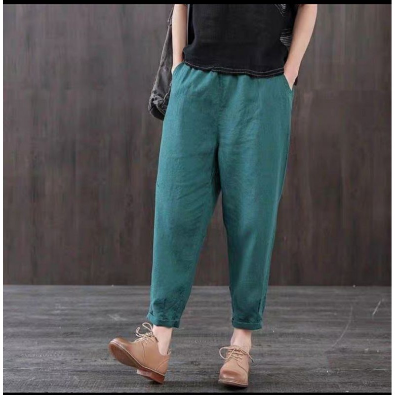 กางเกงผ้าฝ้ายผสมลินินทรงบอยยอดฮิตฟรีไซส์เอวยางยืด มี20สี