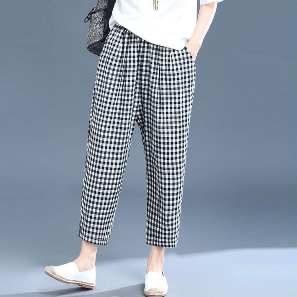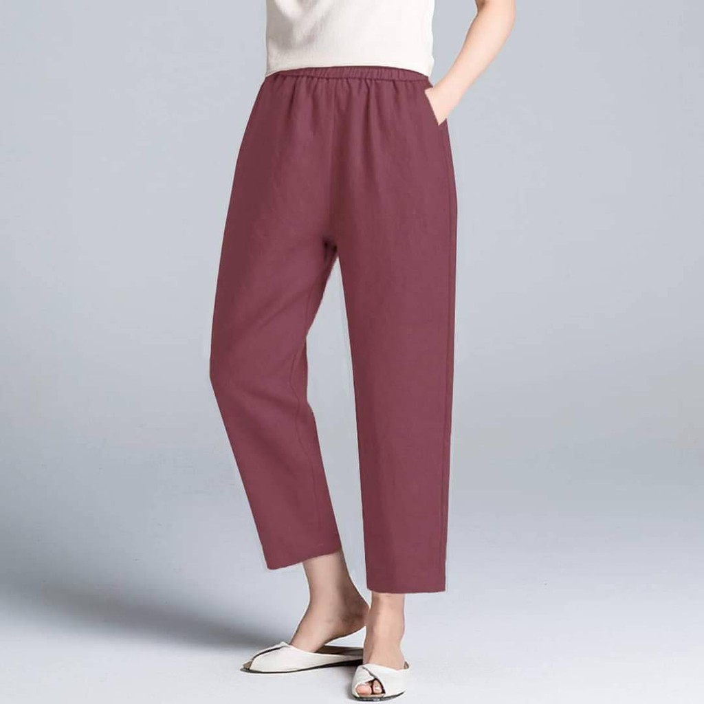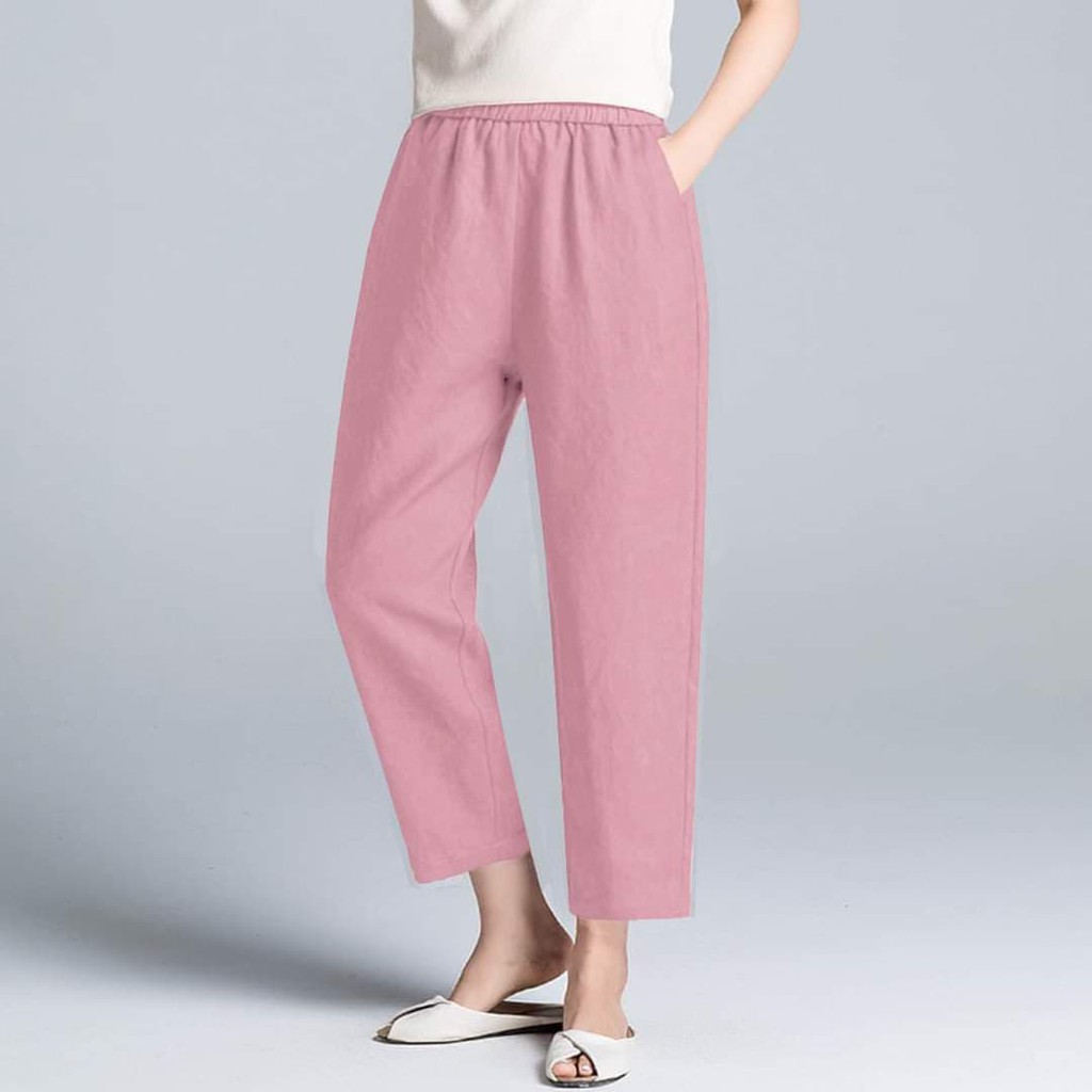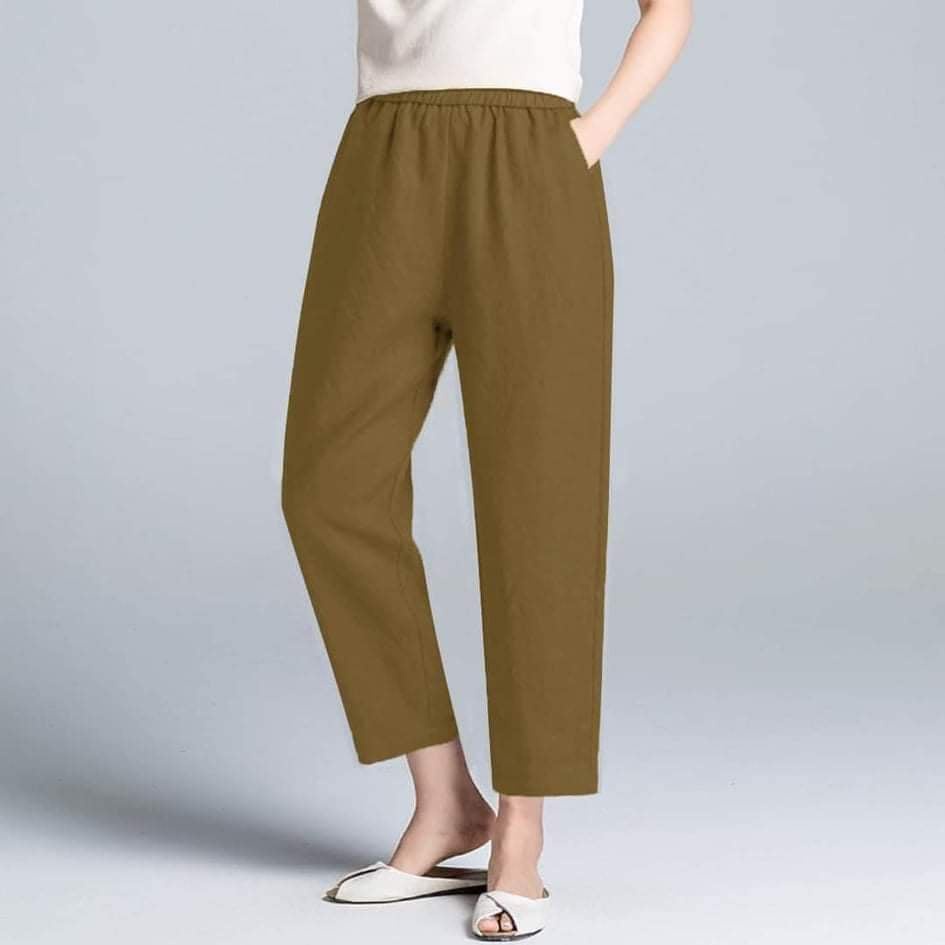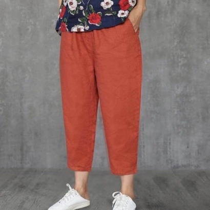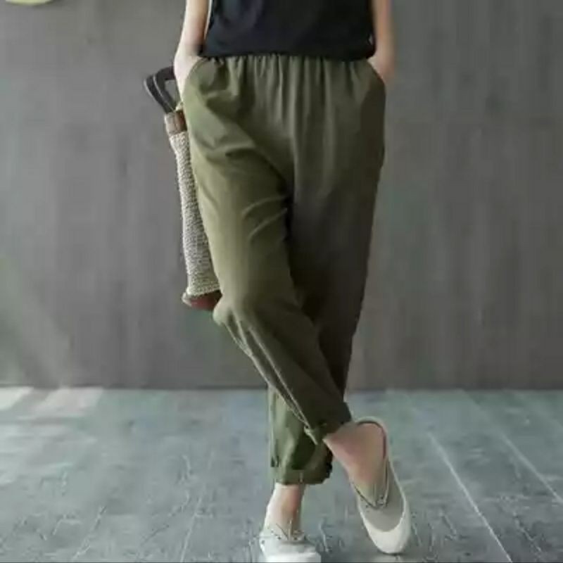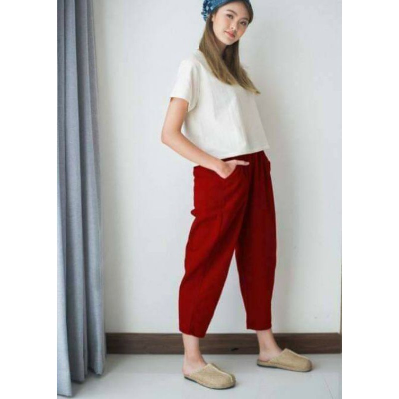 กางเกงผ้าฝ้ายผสมลินินทรงบอยยอดฮิตฟรีไซส์เอวยางยืด มี20สี