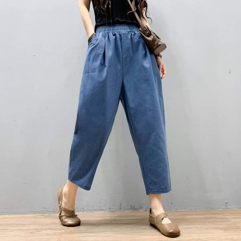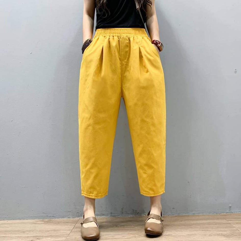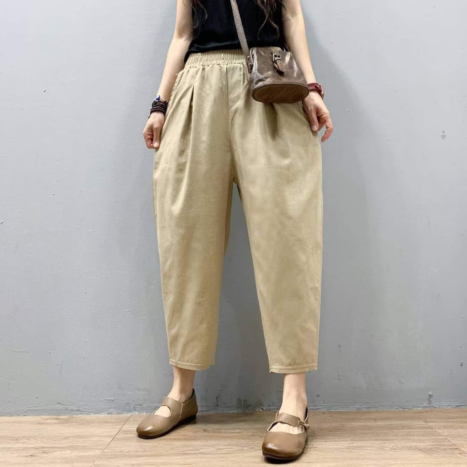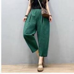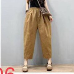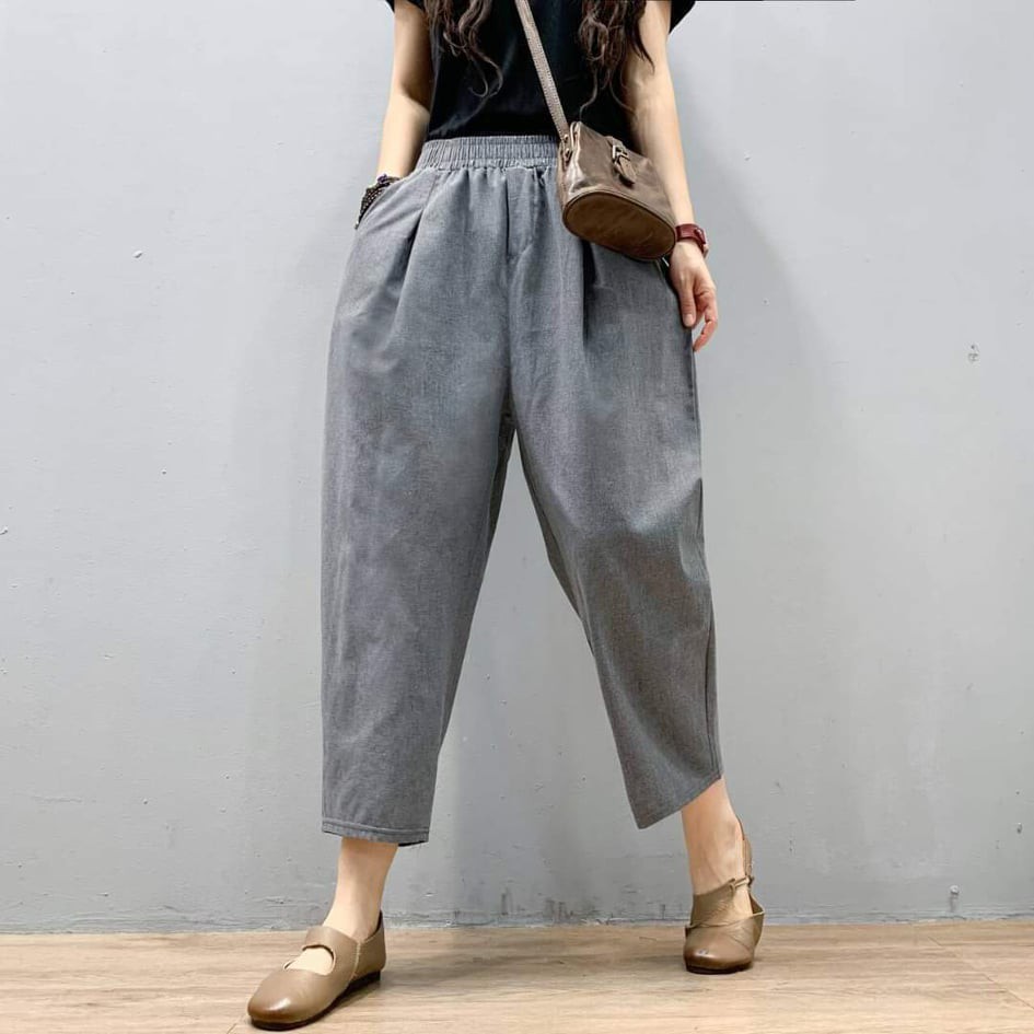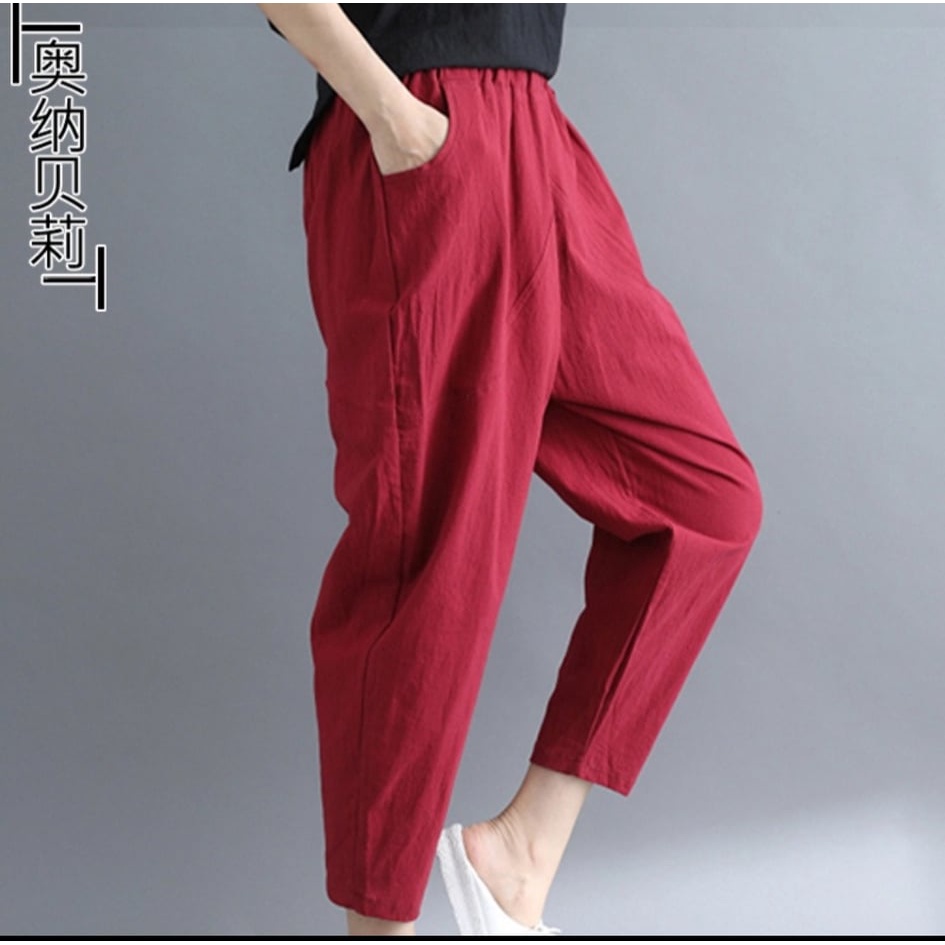 กางเกงผ้าฝ้ายผสมลินินทรงบอลลูนสีพื้นสะโพกใหญ่ เหมาะสำหรับสาวอวบ Freesize 13 สี