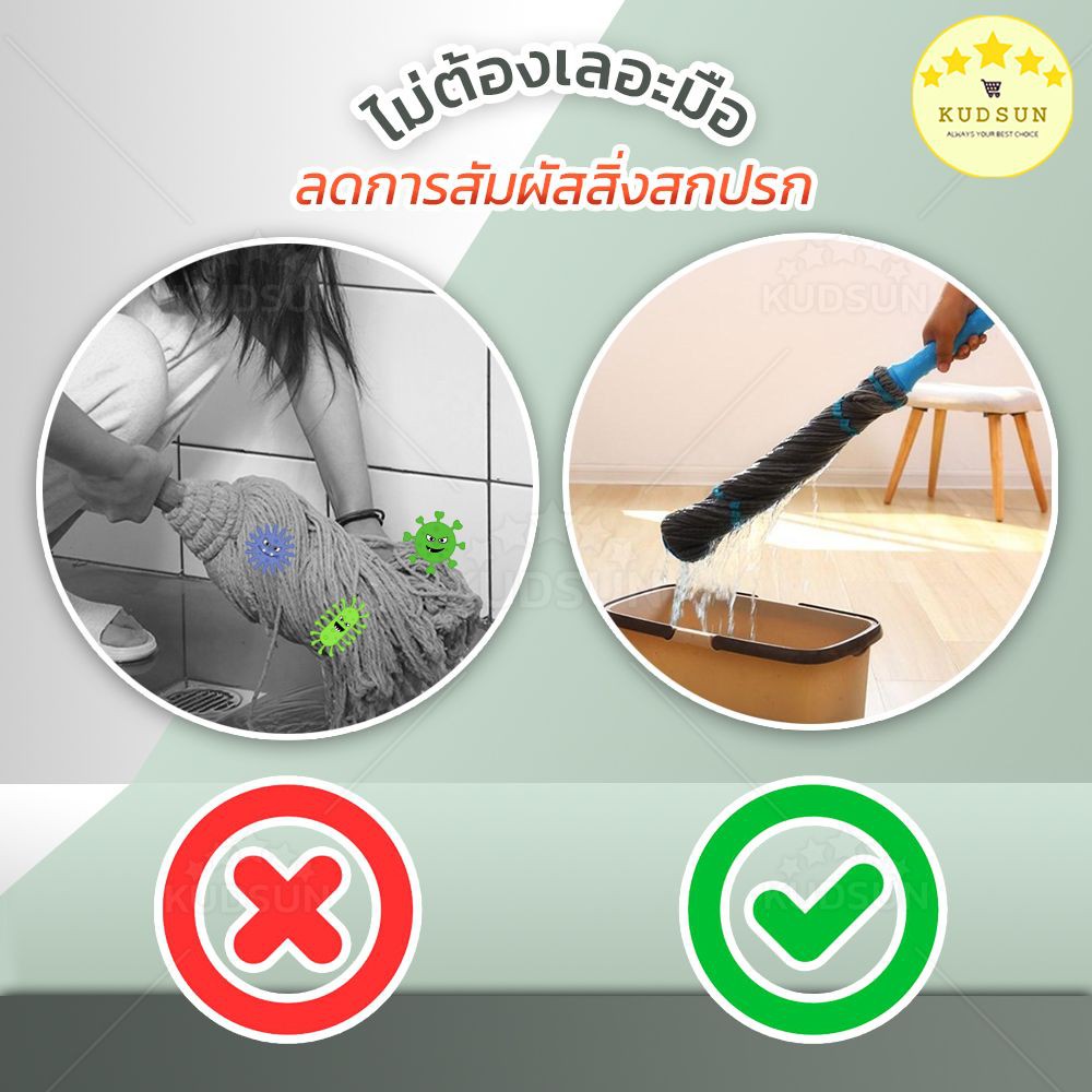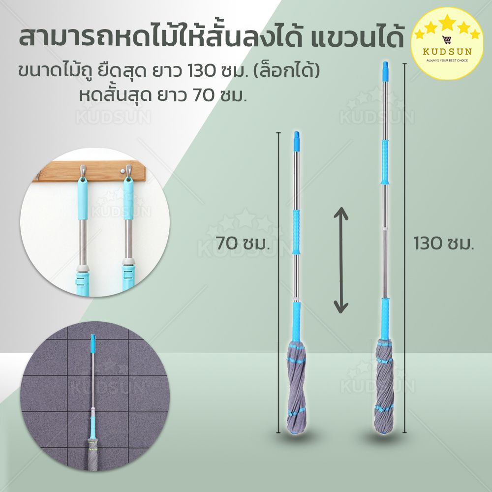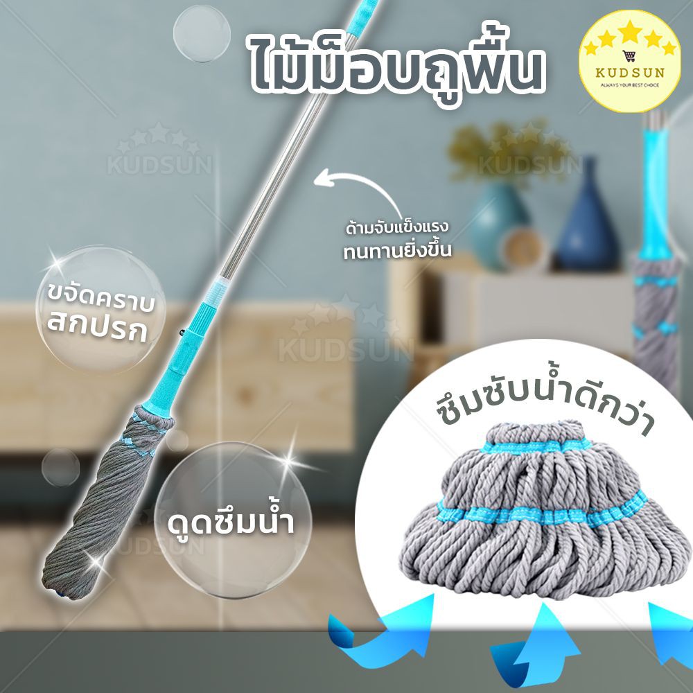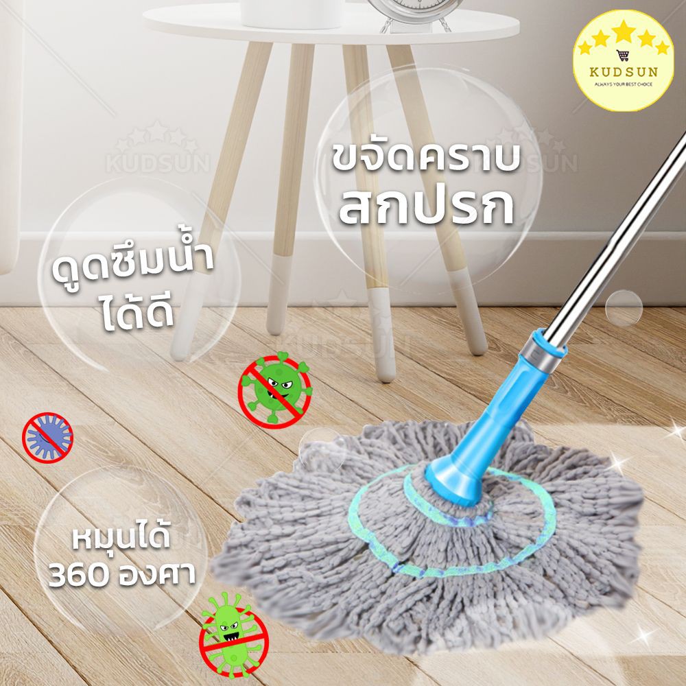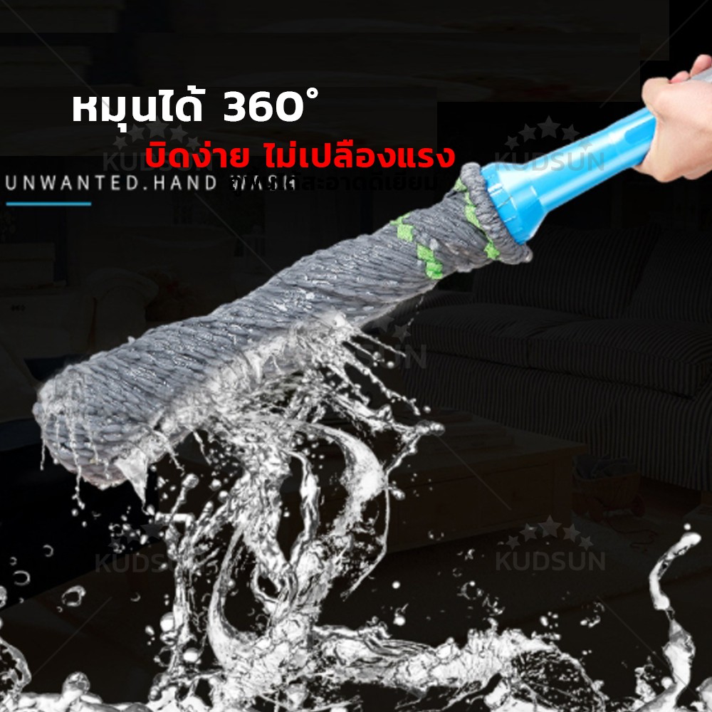 ✨ ใหม่ ✨ KUDSUN ไม้ถูพื้น ม็อบถูพื้น ไม้ม็อบถูพื้น 360 องศา รุ่น EzyTwist ไม้ถูพื้นไมโครไฟเบอร์ บิดง่าย