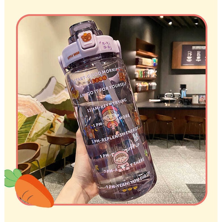 KUDSUN กระบอกน้ำ ขวดน้ำพกพา ขวดน้ำ 2 ลิตร มีหลอด กระบอกน้ำบอกเวลา Water Bottle พกพาสะดวก ช่วยให้ดื่มน้ำ สม่ำเสมอ