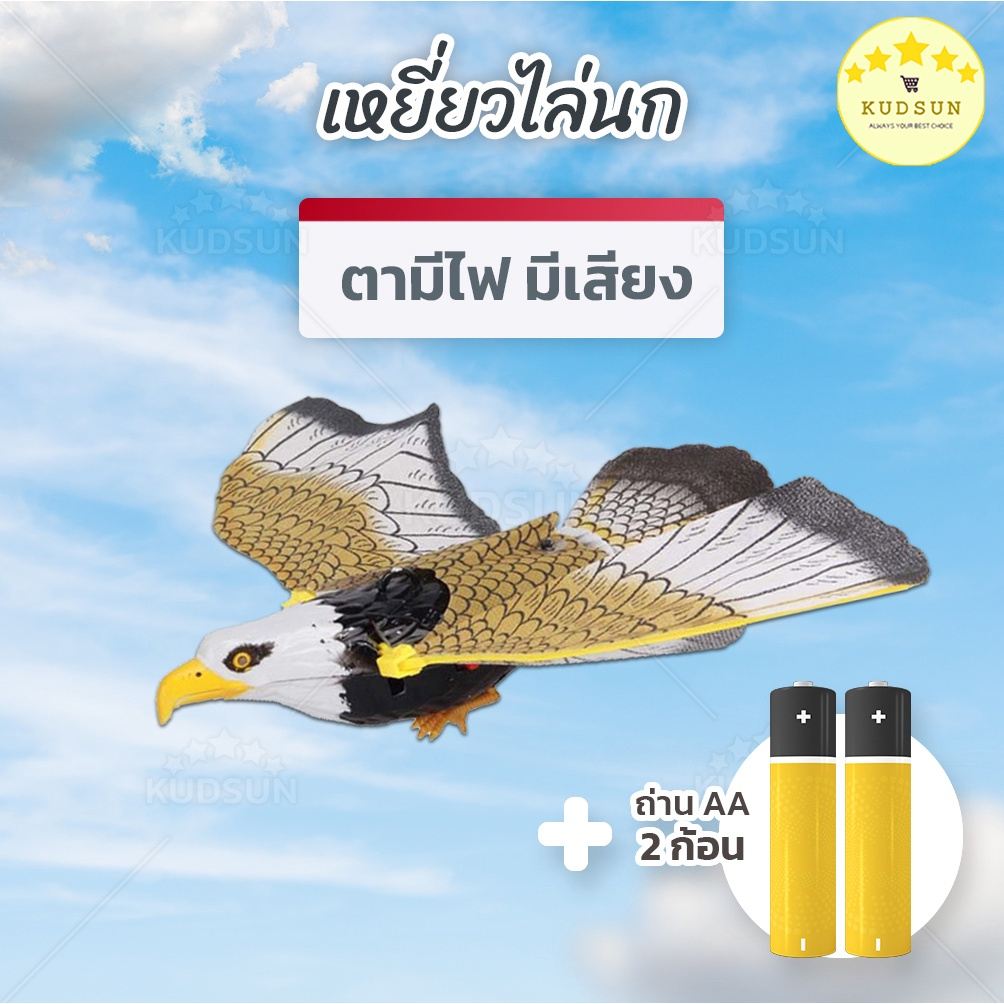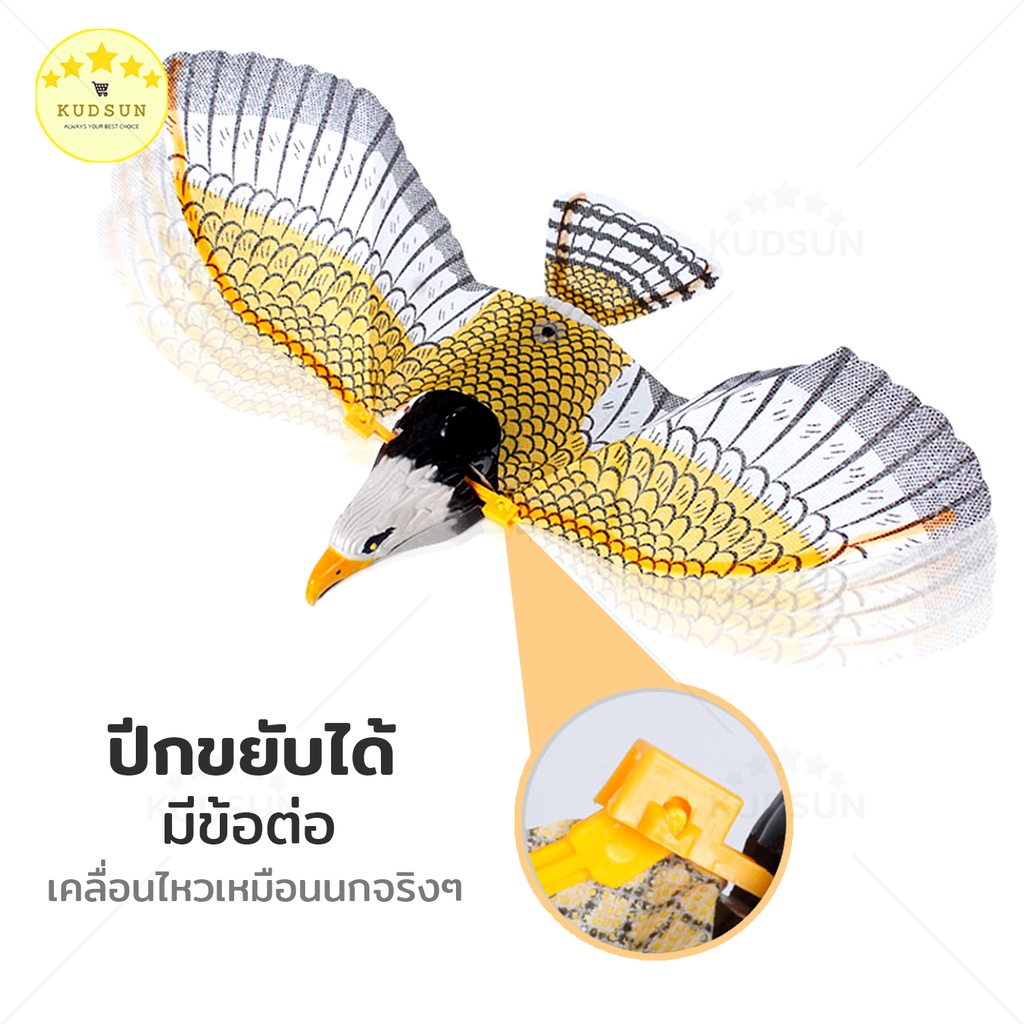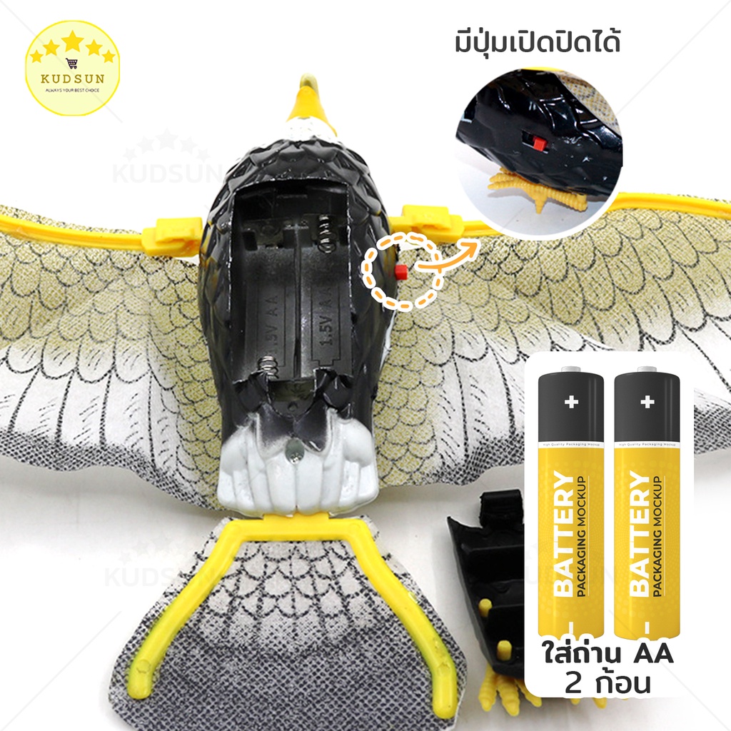 KUDSUN เหยี่ยวไล่นกพิราบ เหยี่ยวไล่นก ไล่นกพิราบ ไล่นกพิราบ ใส่ถ่าน มีเสียง ปีกขยับได้ มีไฟที่ตา