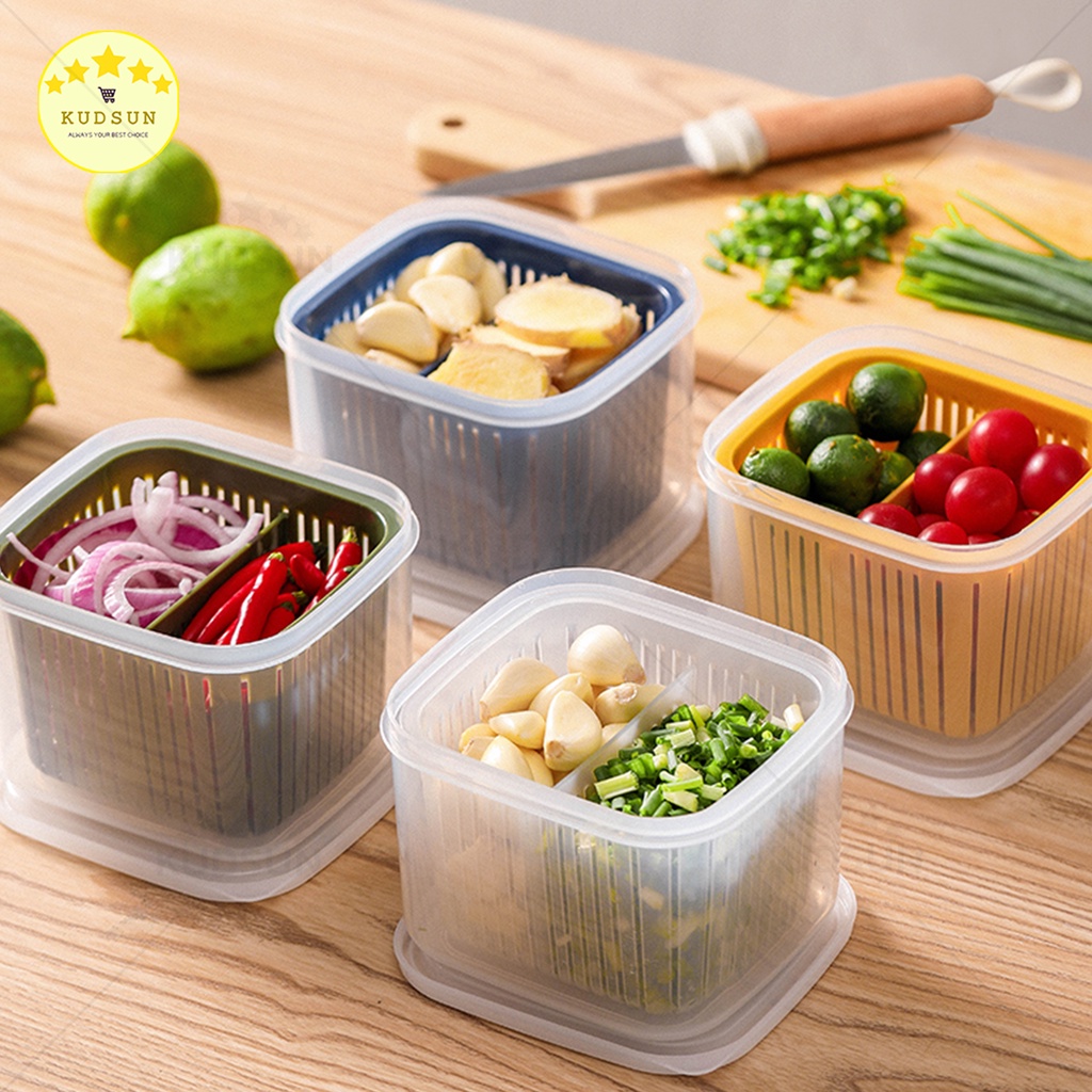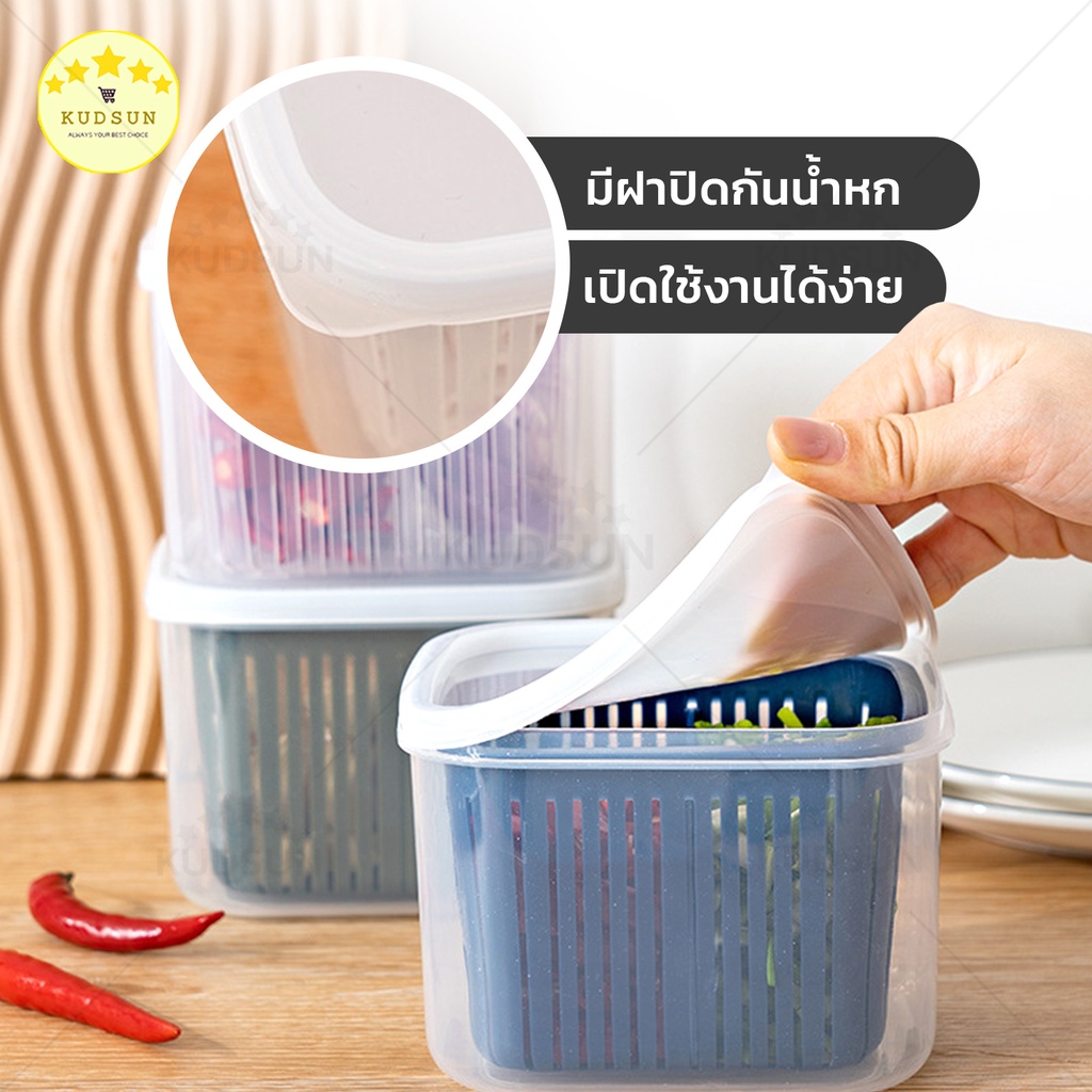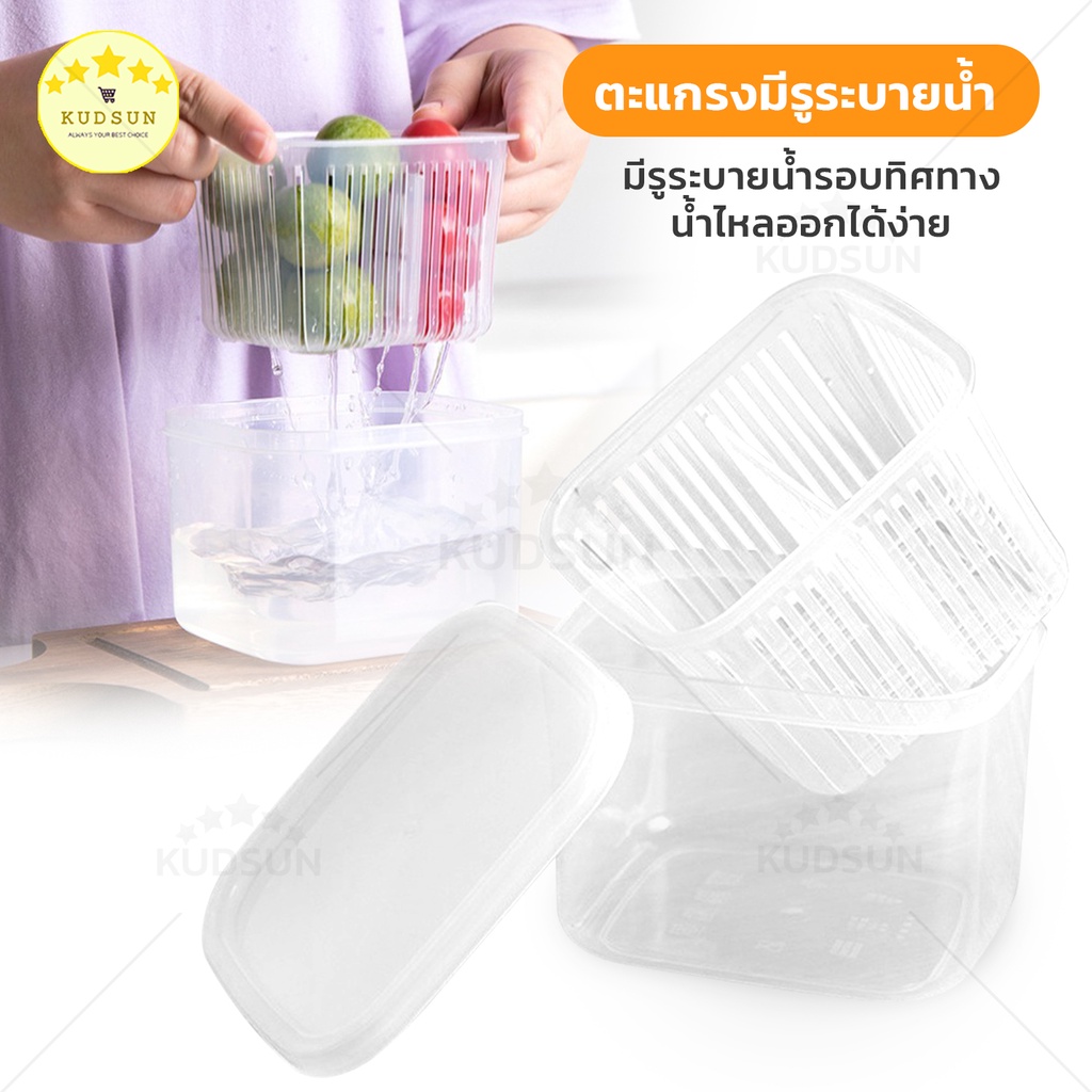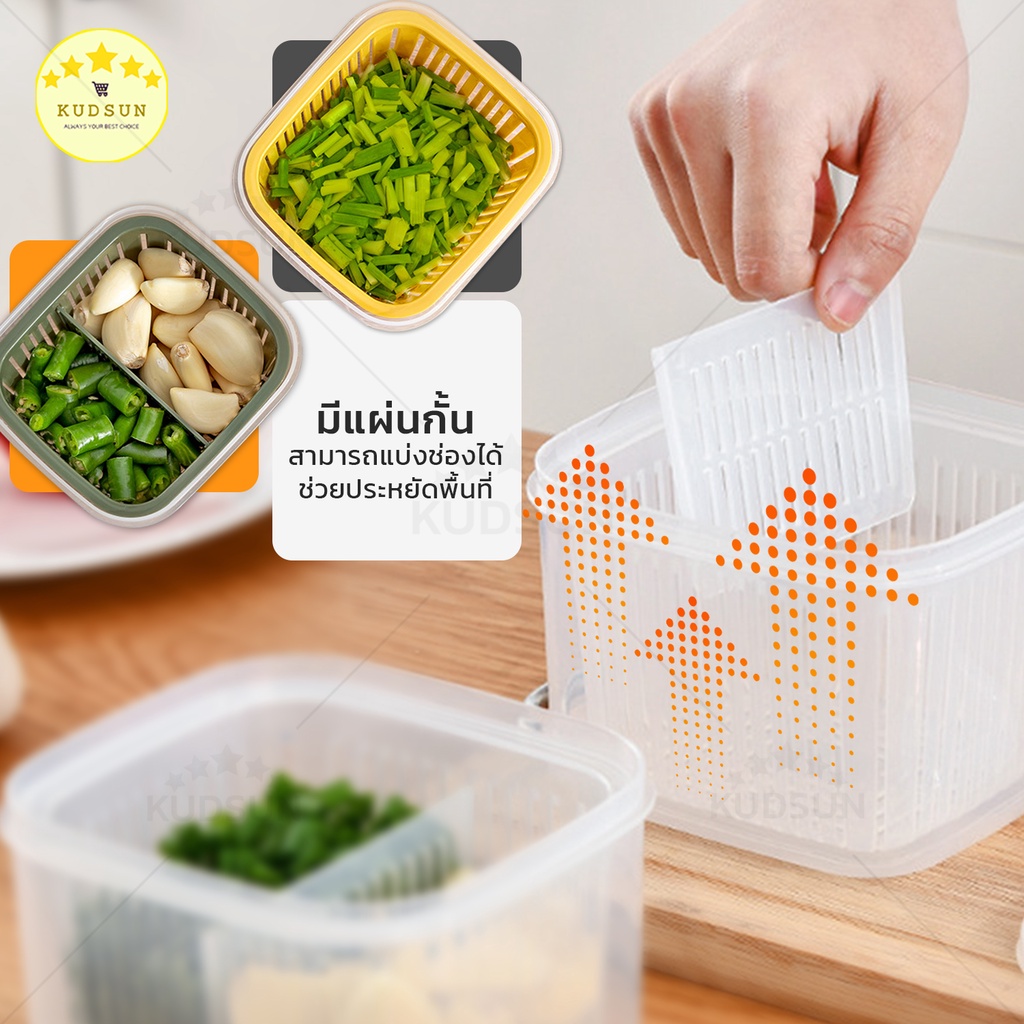 KUDSUN กล่องเก็บผัก กล่องเก็บผักในตู้เย็น แบ่งส่วนได้ ถนอมผักสด กล่องใส่ผักในตู้เย็น กล่องใส่ของในตู้เย็น กล่องเก็บ