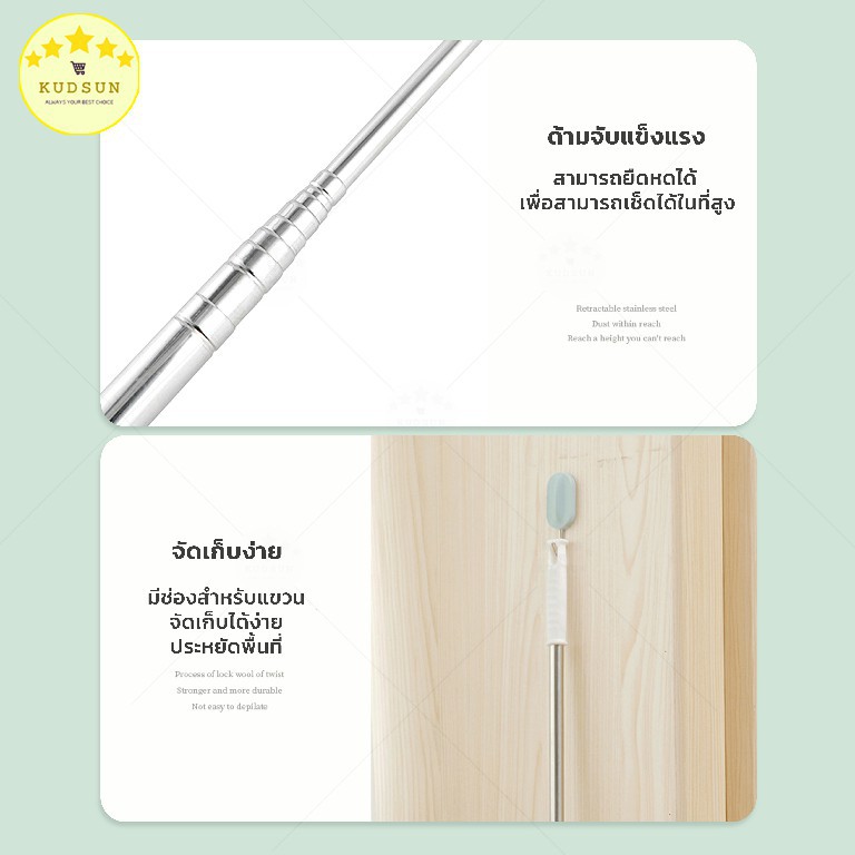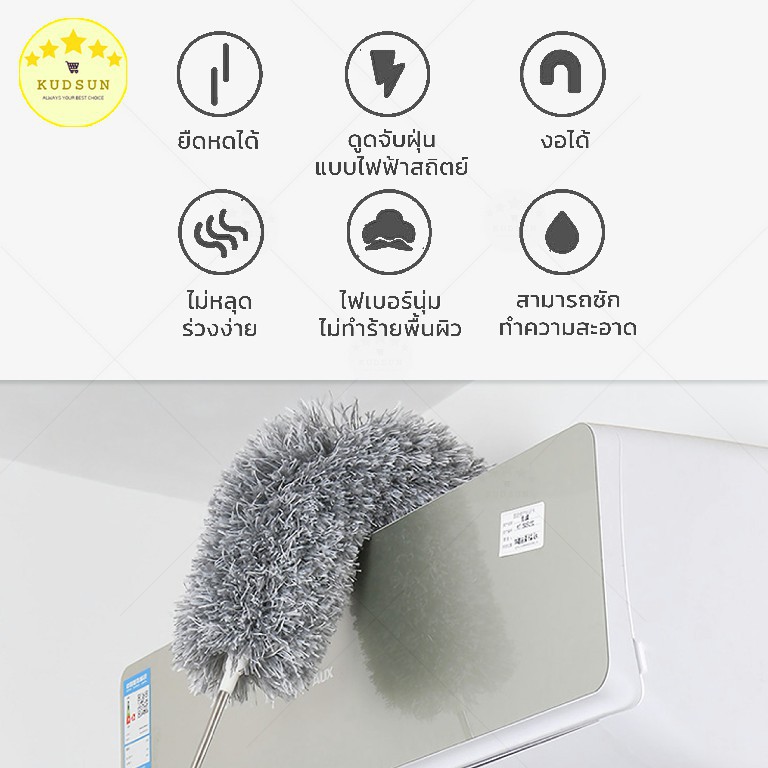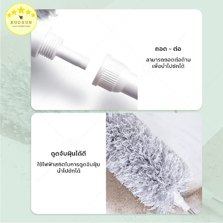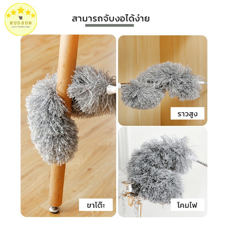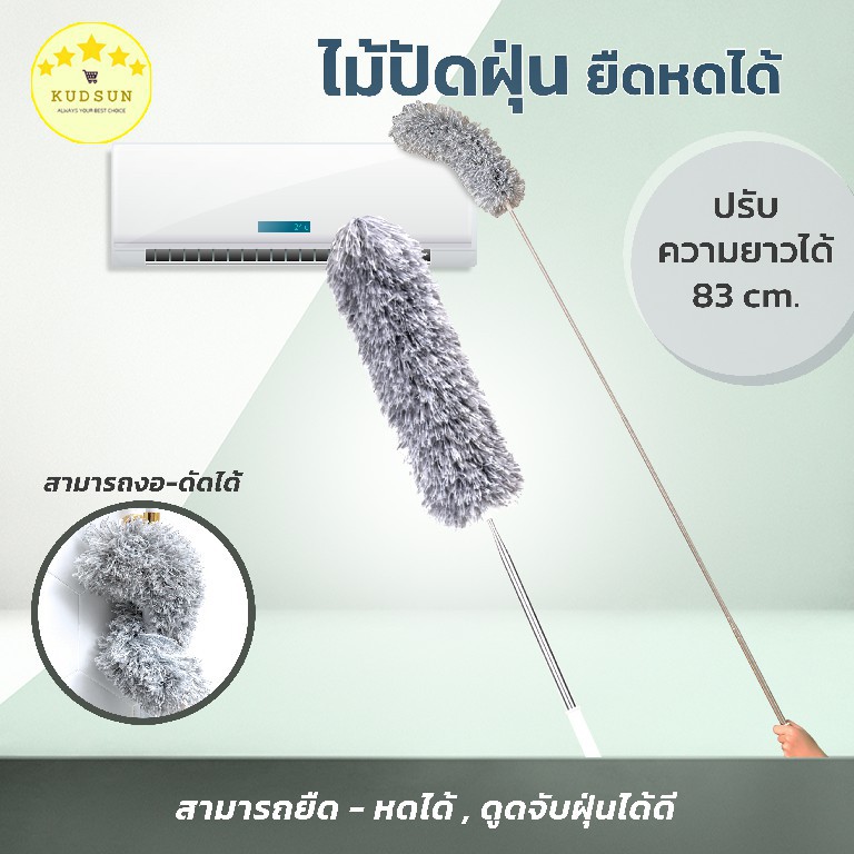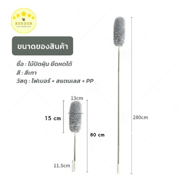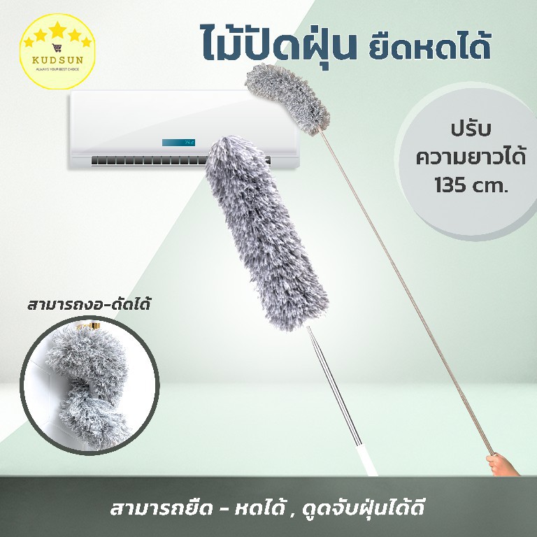 KUDSUN ไม้ปัดฝุ่น ไม้กวาดหยากไย่ ปรับได้ 80-280 ดักจับฝุ่น99% ดัดงอได้ ใช้ปัดฝุ่นรถ ใช้งานในบ้านทั่วไปมี3ขนาด