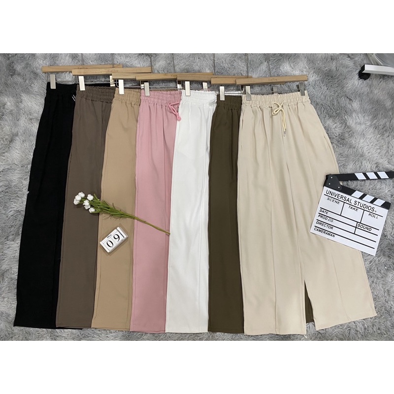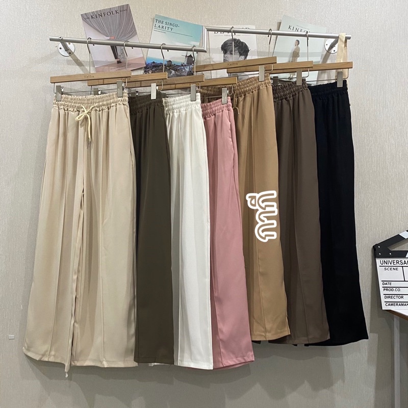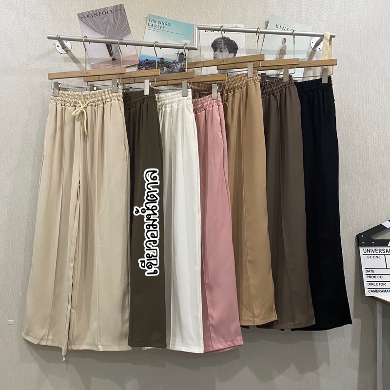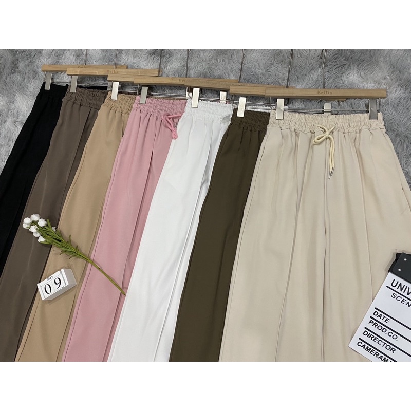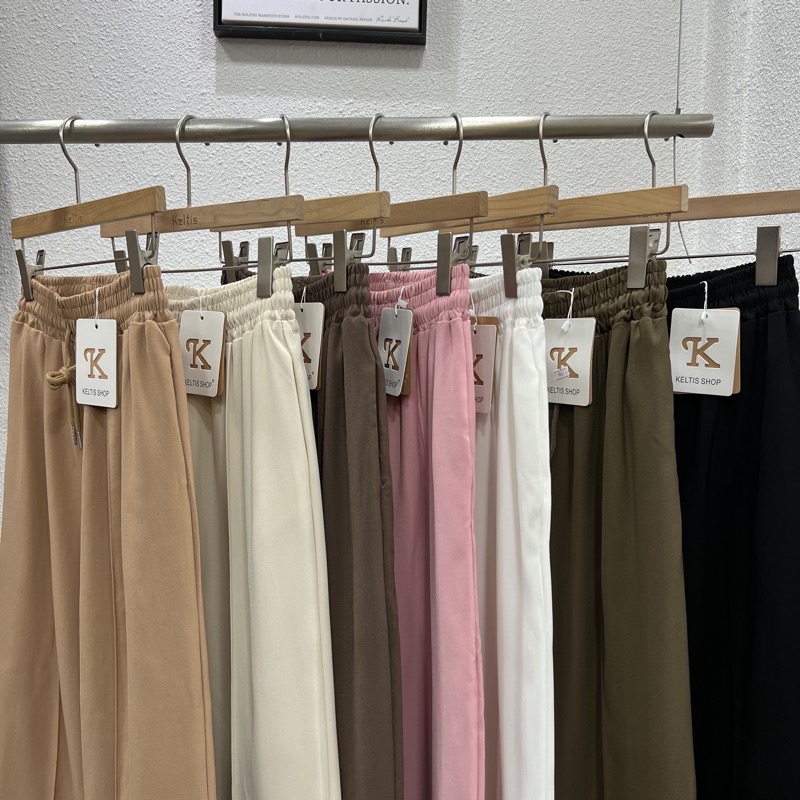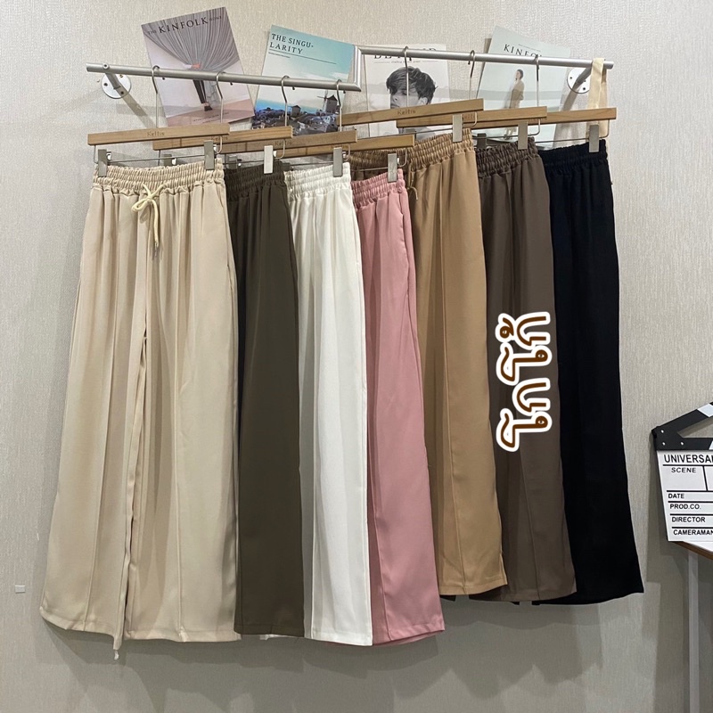 💥ขายดีที่สุด‼️ Keltis กางเกงขายาวผ้าพริ้วๆใส่สบายมาก เอวยางยืด ผ้าเนื้อเรียบ / E1-4 // K-9061 ⚫