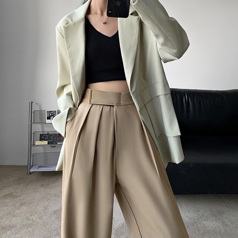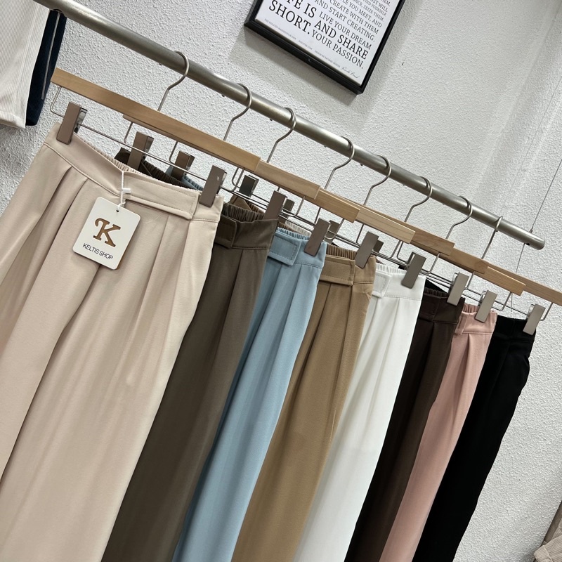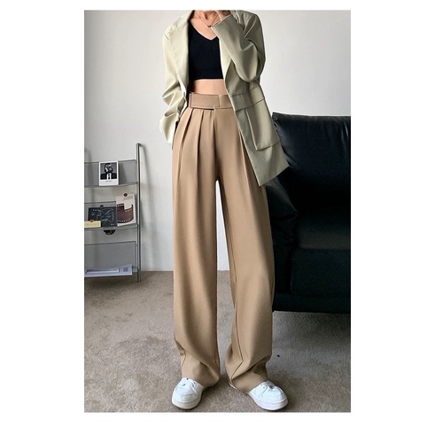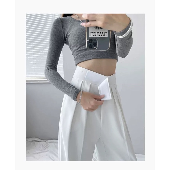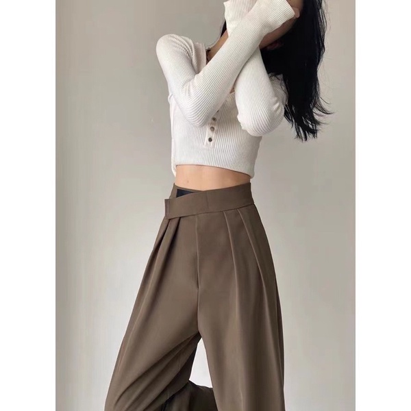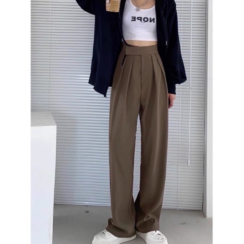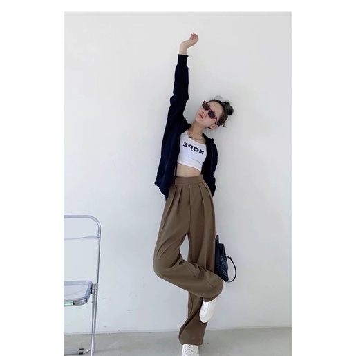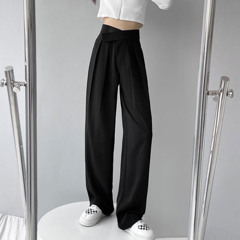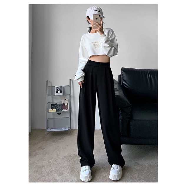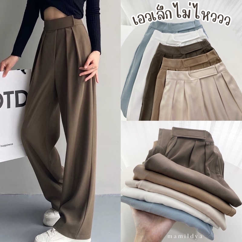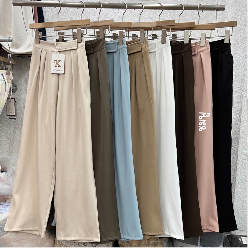 ⭐️ผ้าทิ้งตัว✨ขอบเอวใหญ่ ดูเอวเล็ก✨กางเกงขายาวเอวสูงแปะตีนตุ๊กแก/ A3-5 // K-2252 ⚫