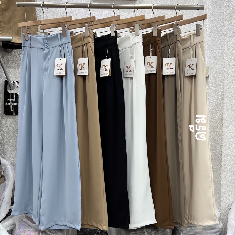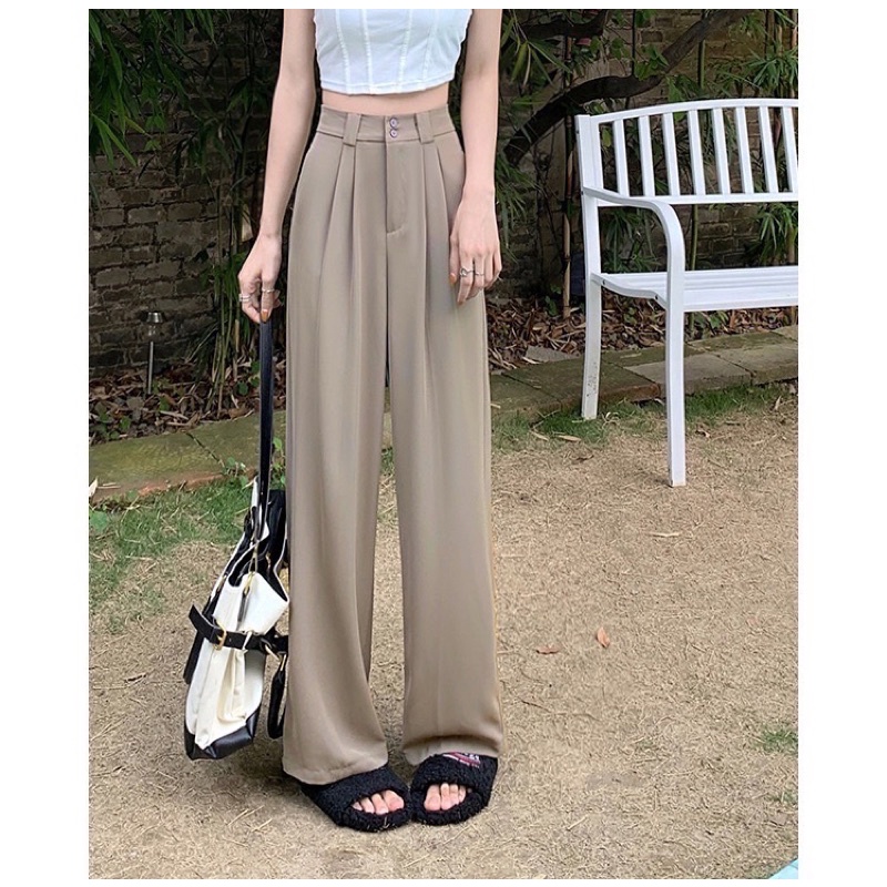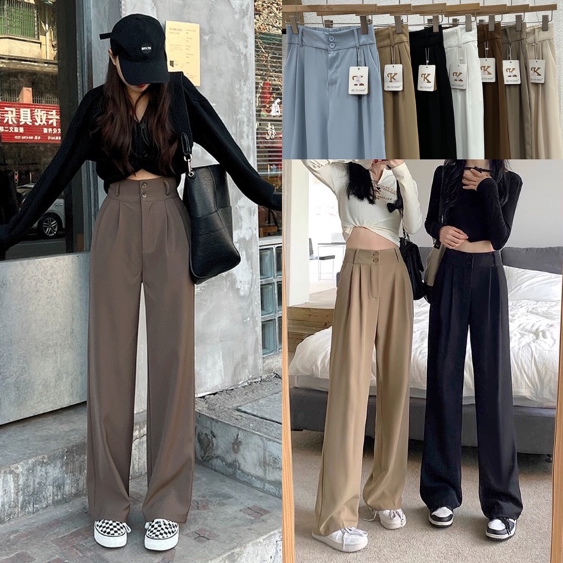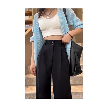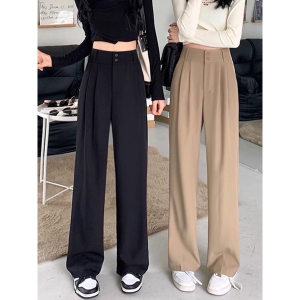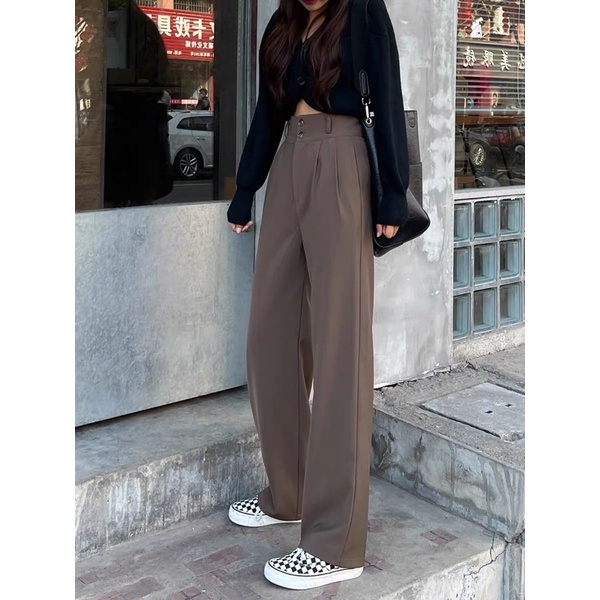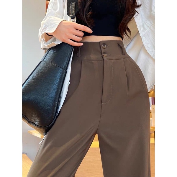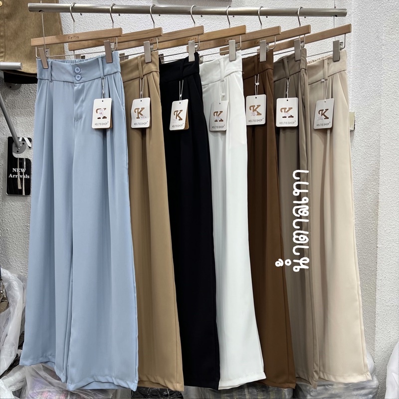 🌟ผ้ามีน้ำหนัก🌟✨กางเกงเอวสูงขายาวขอบเอวใหญ่/ A3-2 // K-9115 ⚫