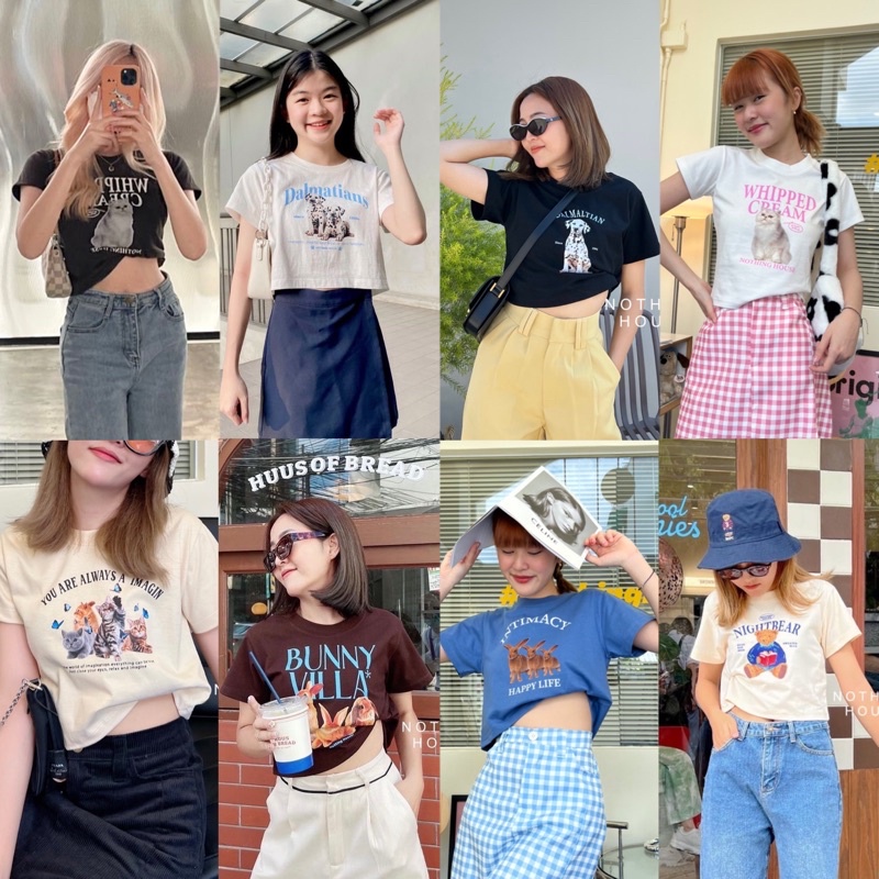 ผลิตครั้งเดียว🏁 เสื้อครอป ป้าย Notthing ลายน่ารักๆ / A1-A2 // NOT-00