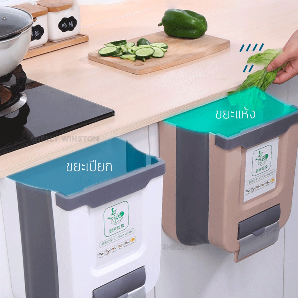 ถังขยะในครัวแบบแขวนพับได้ ถังขยะพับได้สำหรับห้องครัว ถังขยะประหยัดพื้นที่ ห้องครัว S241