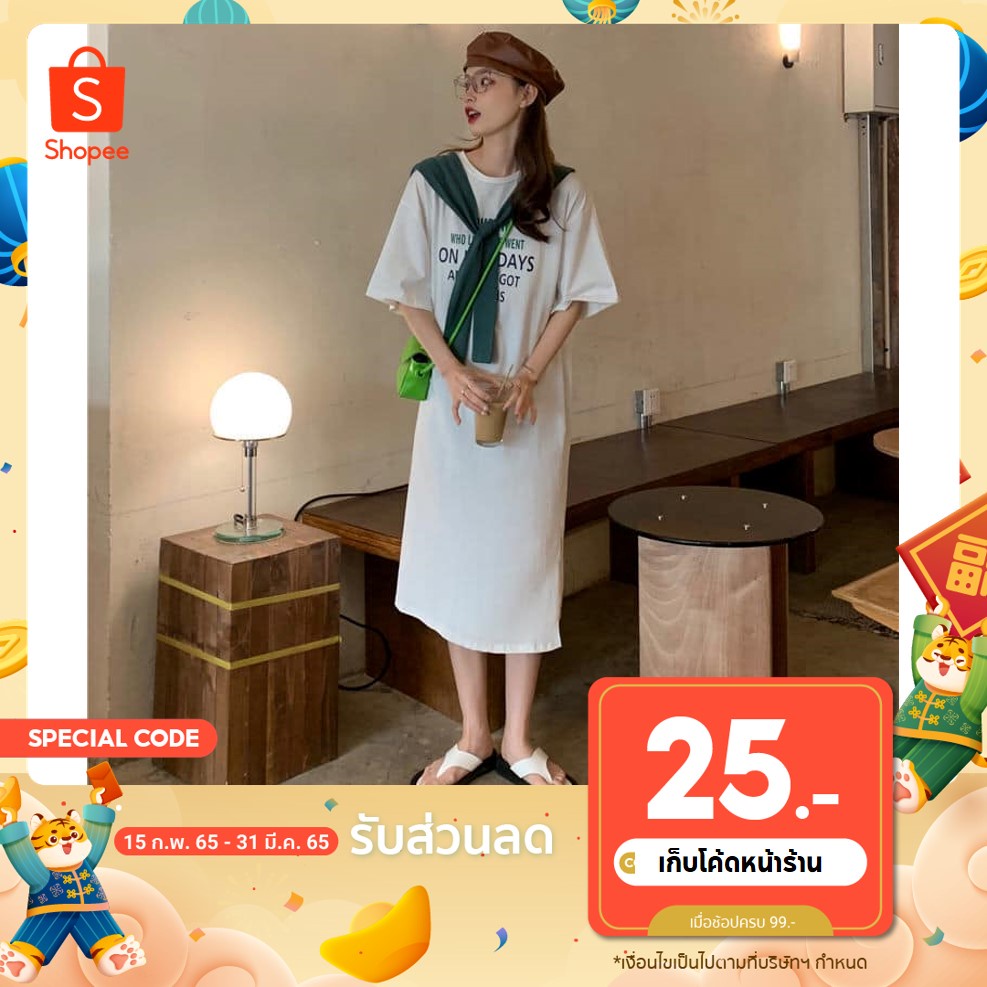 ลดเหลือ 134.- ใส่โค้ด INCSM3F+เก็บโค้ดหน้าร้าน เดรส ผ้ายืด ผ้าคอตตอน สกรีนลาย แต่งผ้าผูกคอ ผูกเอวได้