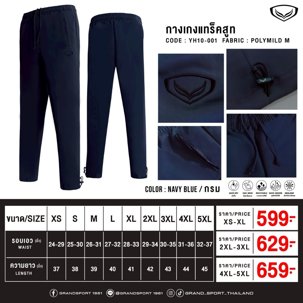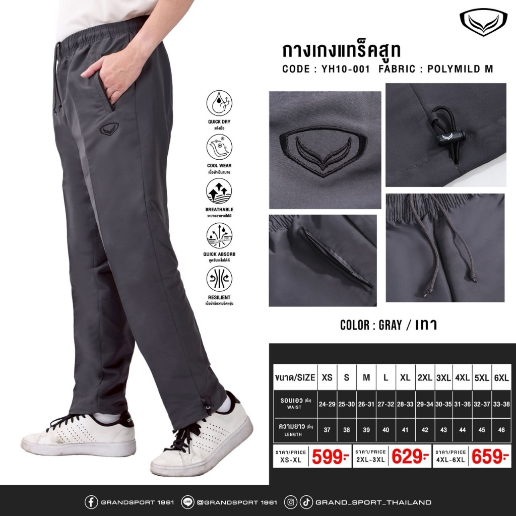 กางเกงแทร็คสูท กางเกงผ้าร่ม Grandsport สีดำ กรม เทา รหัส 10-210/10-223/10-224/10-001/10-002 พร้อมส่ง