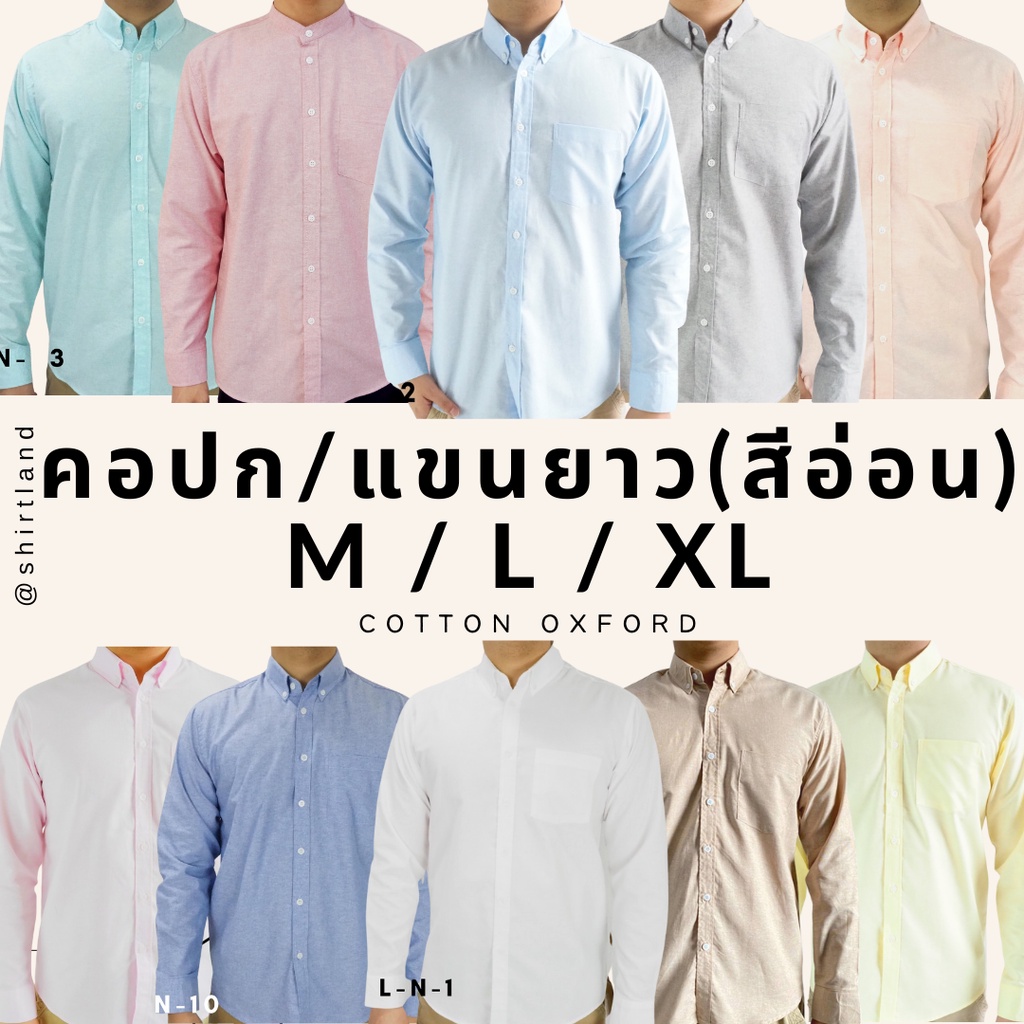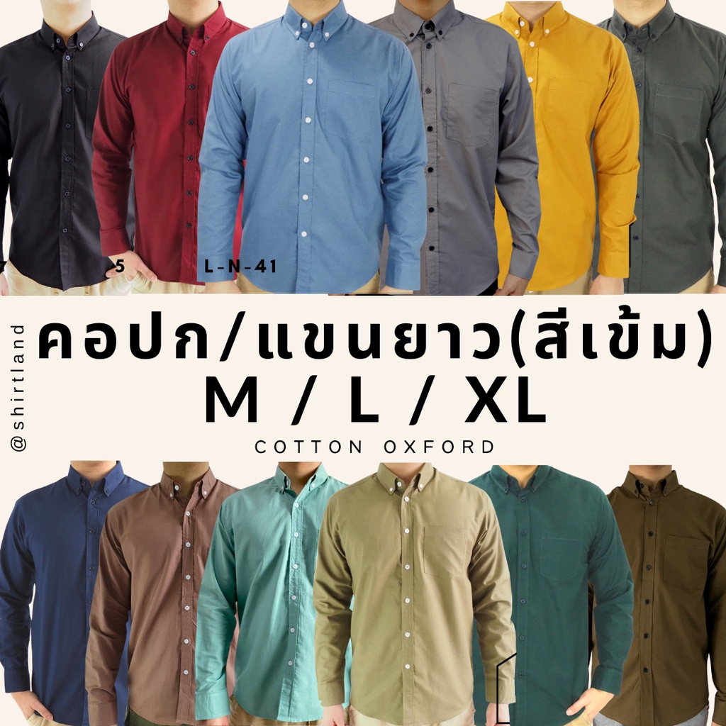 คอปก/แขนยาว(สีเข้ม) M/L/XL ผ้า OXFORD - SHIRT LAND เสื้อเชิ้ตผู้ชาย Long Sleeve Collar Shirt