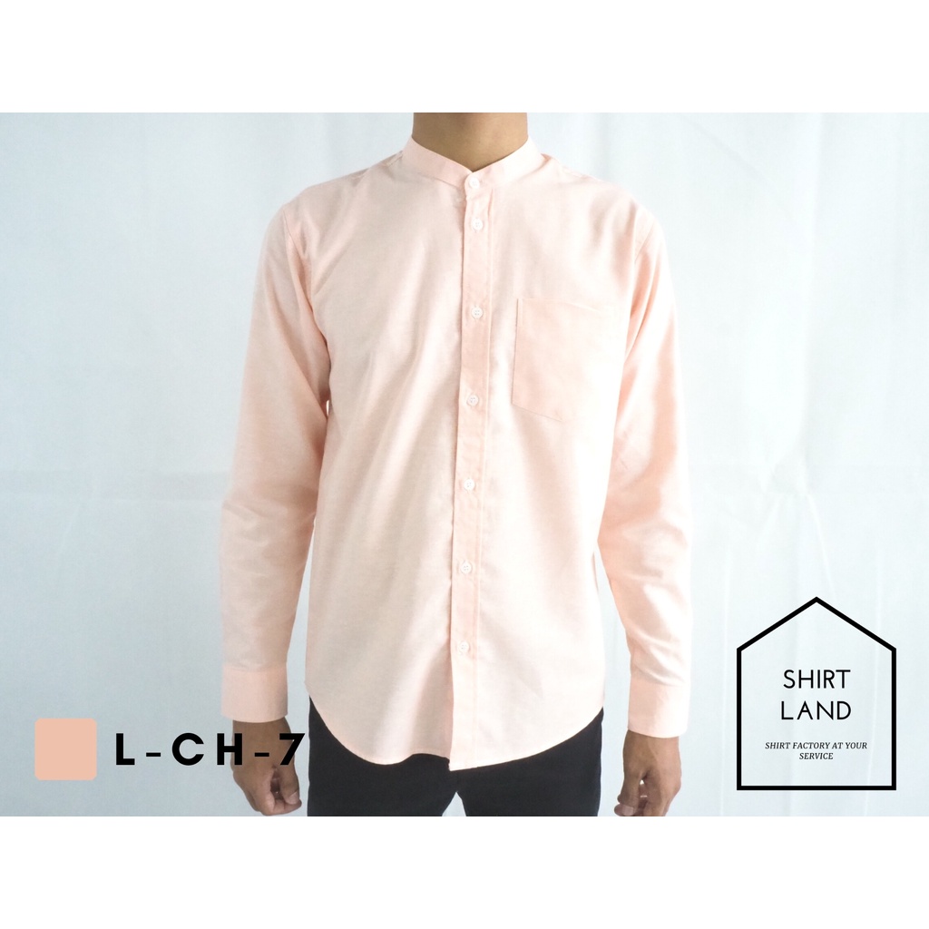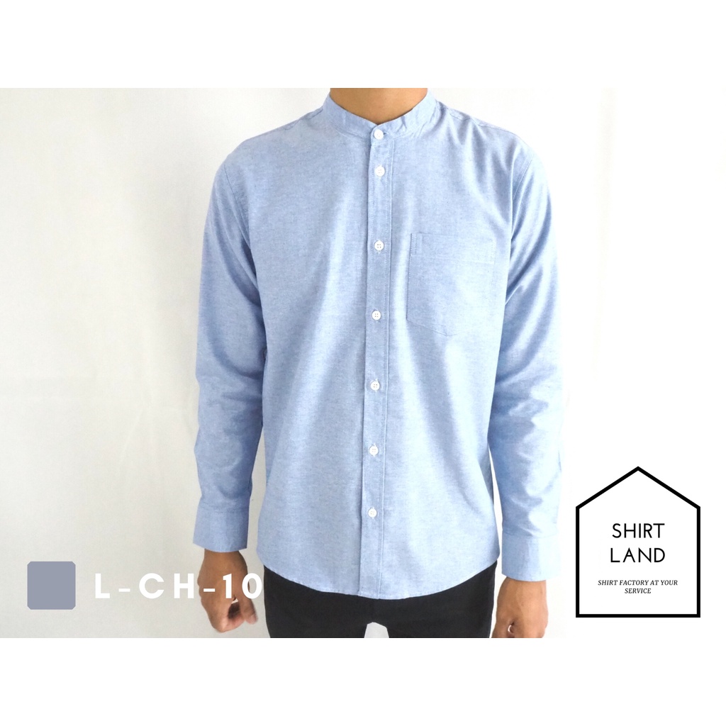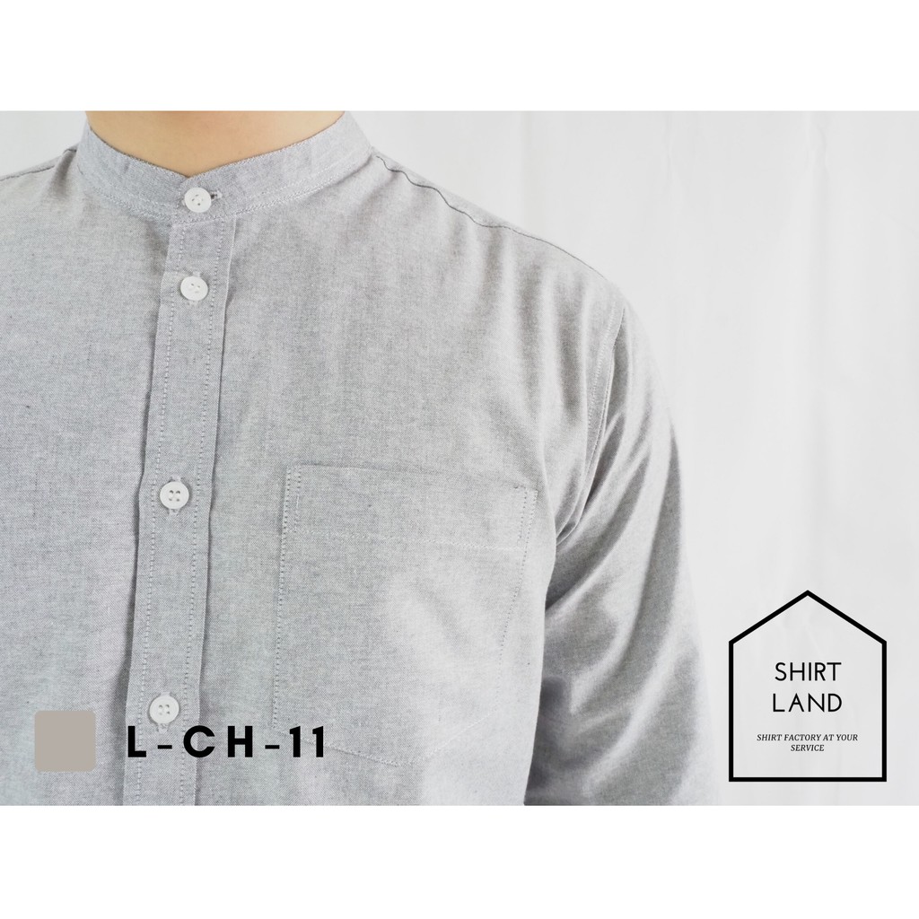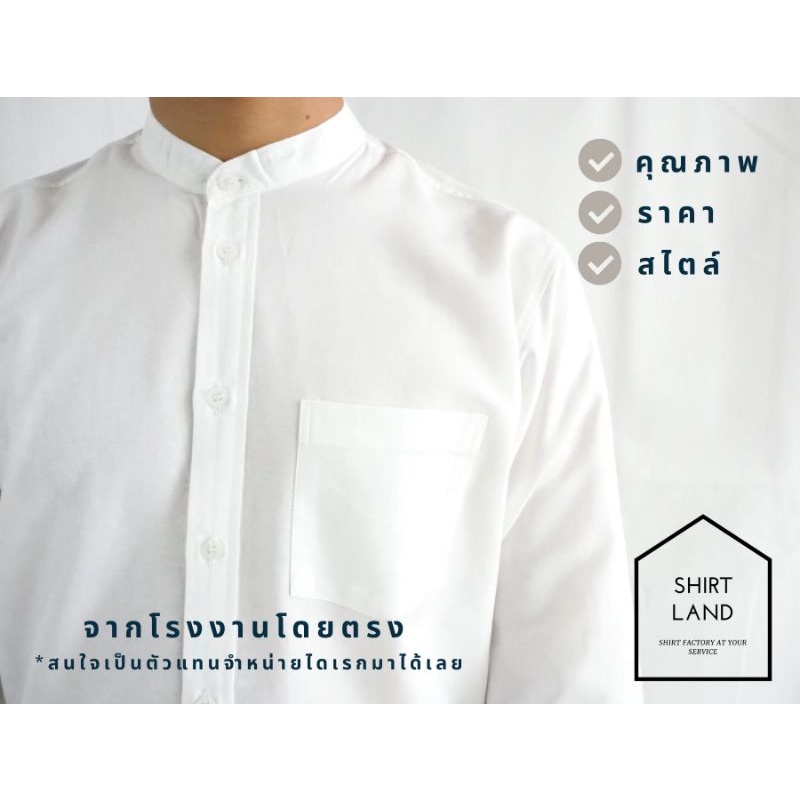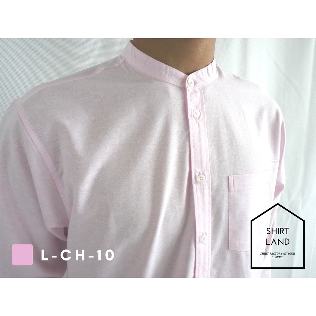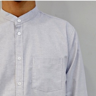 คอจีน/แขนยาว (สีอ่อน) 2XL/3XL/4XL ผ้า OXFORD - เสื้อเชิ้ตผู้ชาย ไซส์ใหญ่ คนอ้วน Short Sleeve Mandarin Collar Shirt