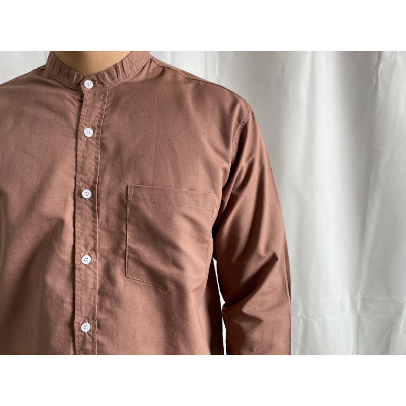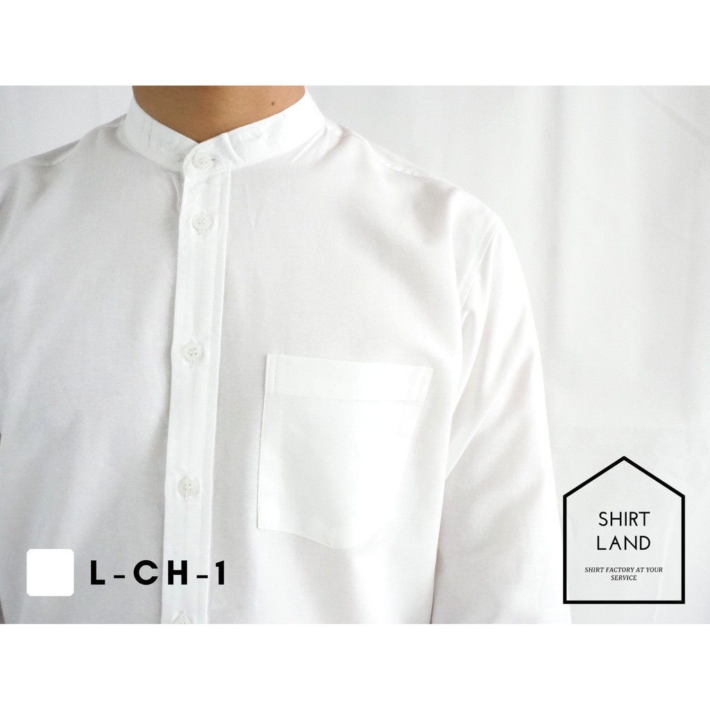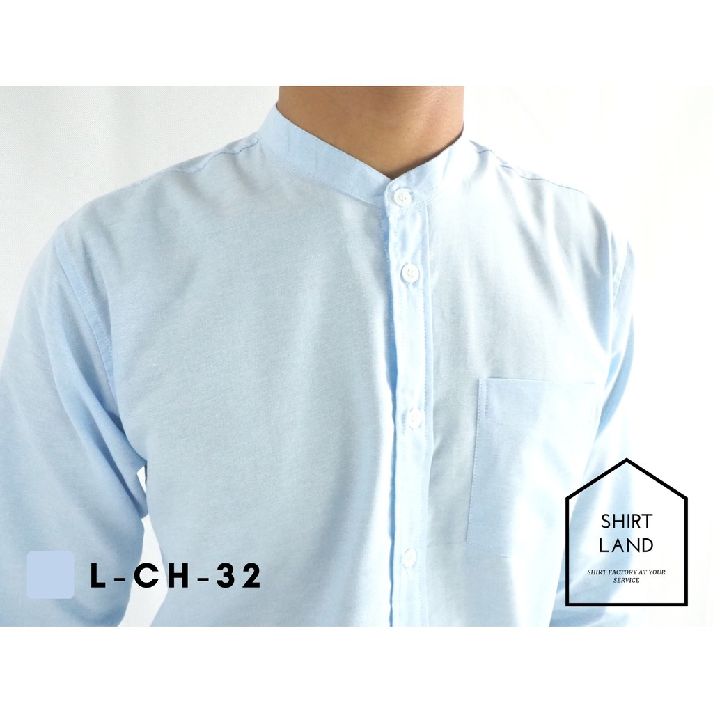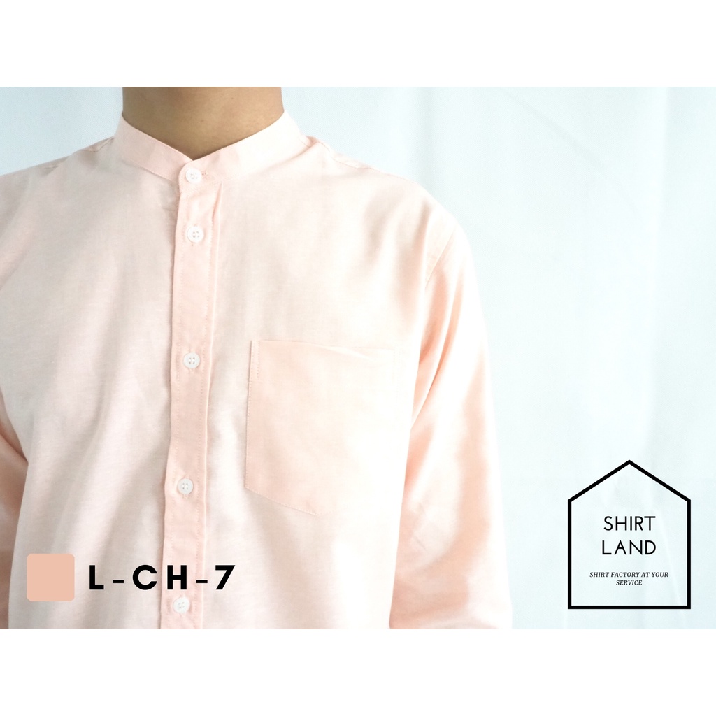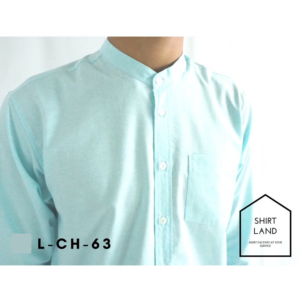 คอจีน/แขนยาว (สีอ่อน) 2XL/3XL/4XL ผ้า OXFORD - เสื้อเชิ้ตผู้ชาย ไซส์ใหญ่ คนอ้วน Short Sleeve Mandarin Collar Shirt