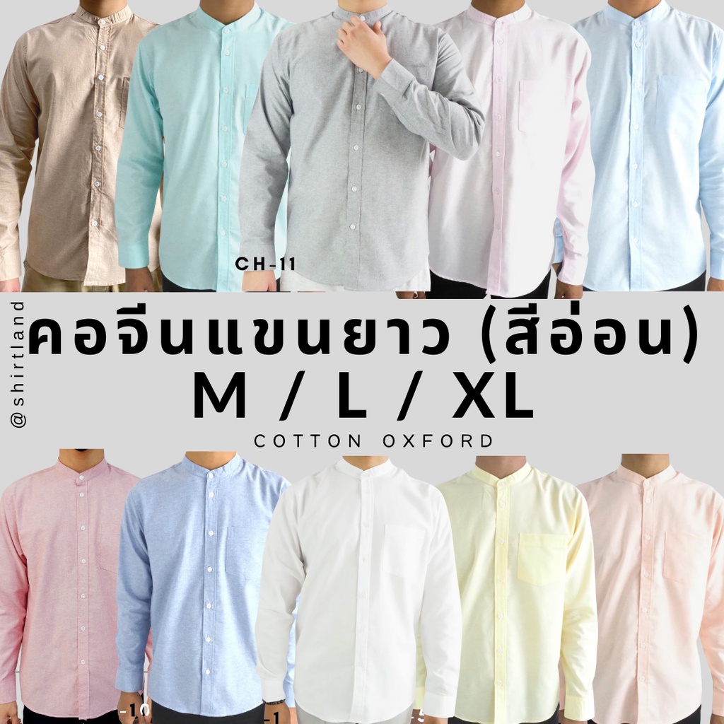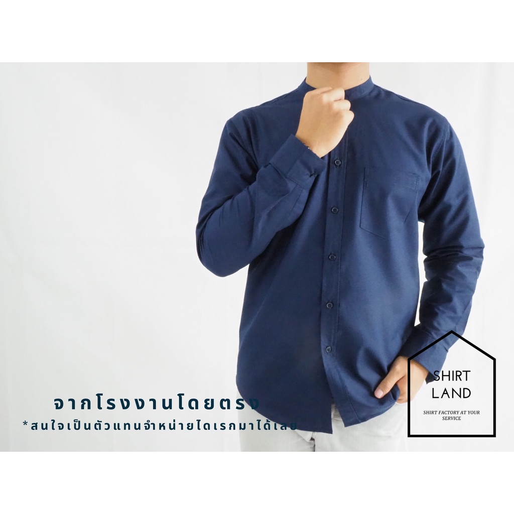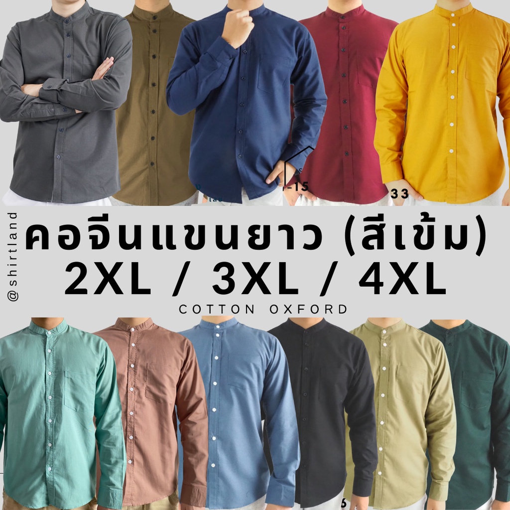 คอจีน/แขนยาว (สีเข้ม) 2XL/3XL/4XL ผ้า OXFORD - เสื้อเชิ้ตผู้ชาย ไซส์ใหญ่ คนอ้วน Short Sleeve Mandarin Collar Shirt