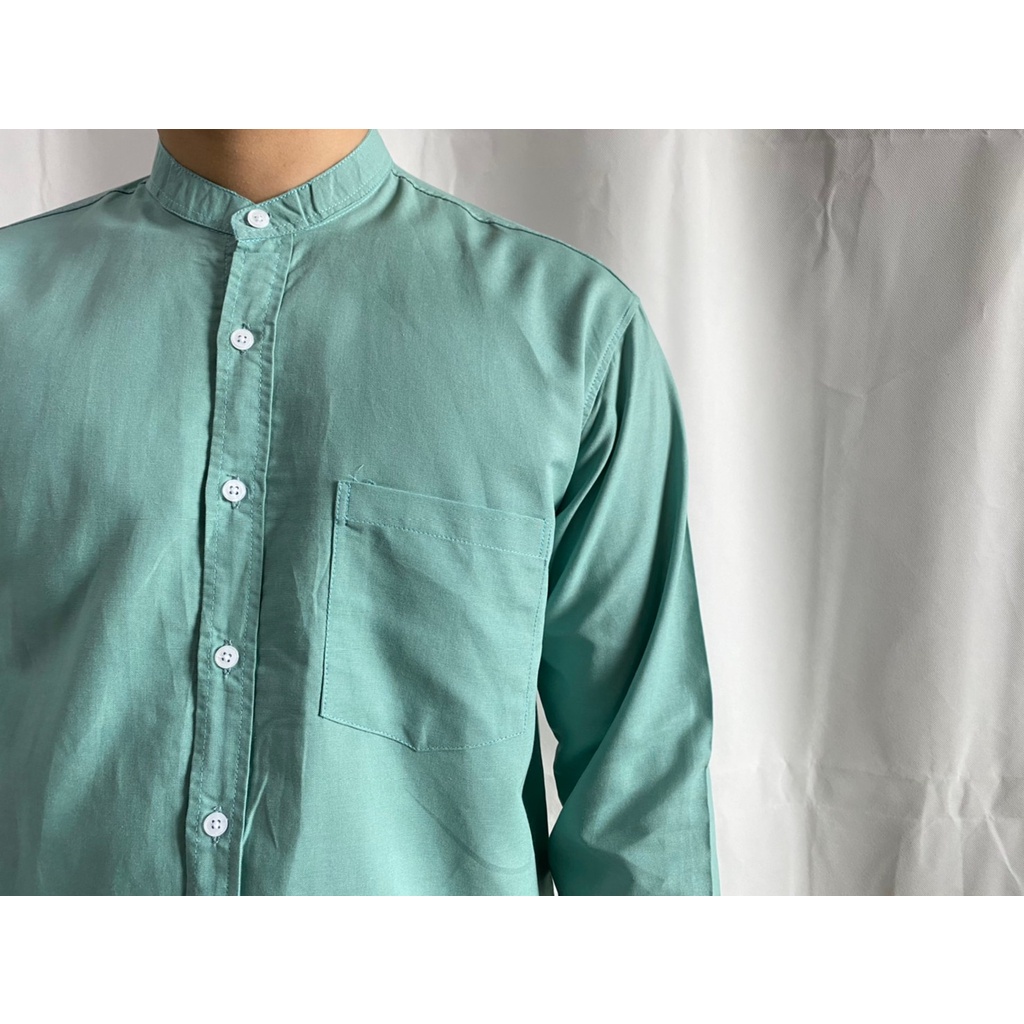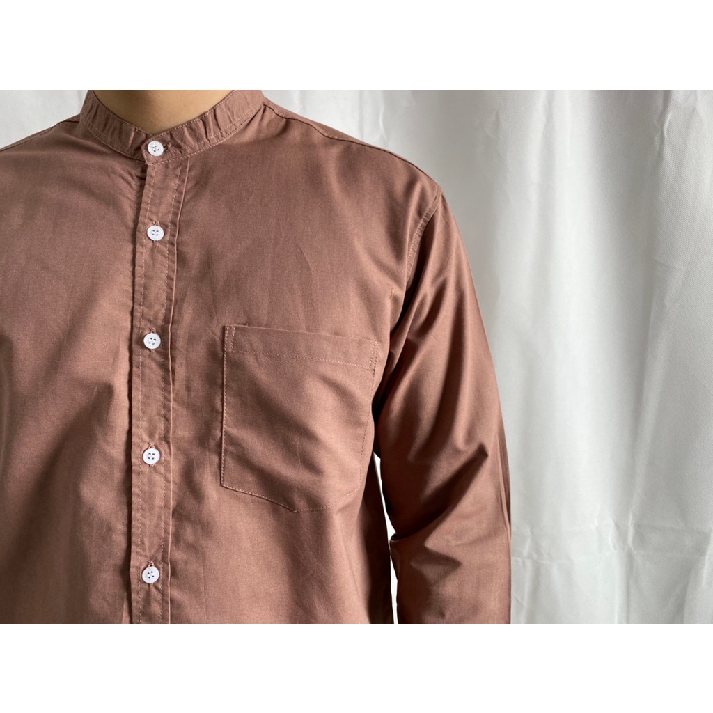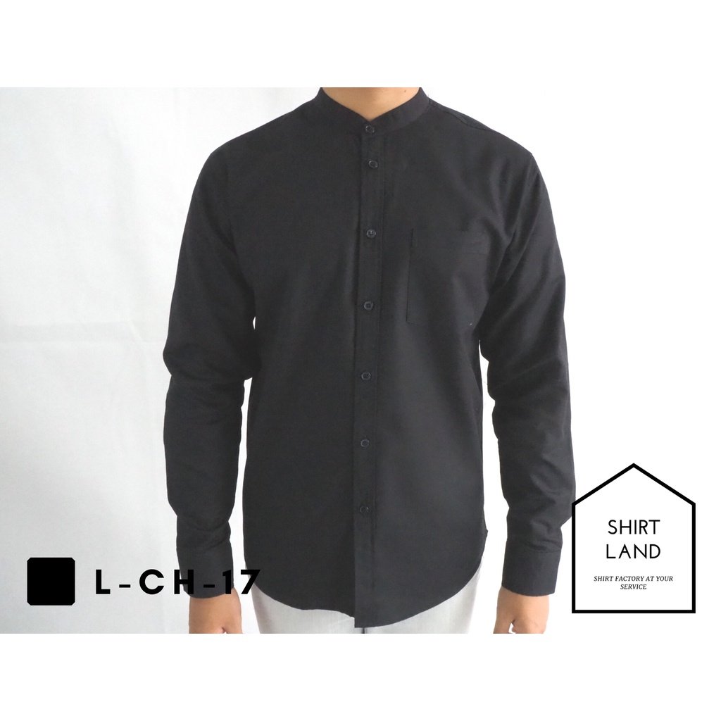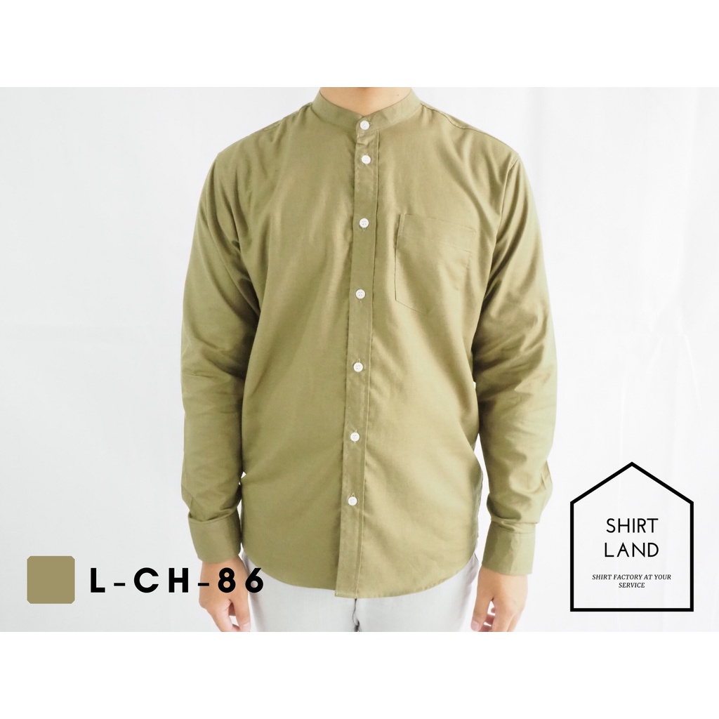 คอจีน/แขนยาว (สีเข้ม) 2XL/3XL/4XL ผ้า OXFORD - เสื้อเชิ้ตผู้ชาย ไซส์ใหญ่ คนอ้วน Short Sleeve Mandarin Collar Shirt