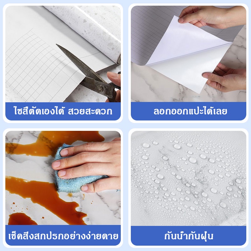 PACKONE วอลเปเปอร์หินอ่อน สติกเกอร์ติดโต๊ะ กันน้ำมัน ลายหินอ่อนกันน้ำ ทนความร้อน มีกาวในตัว pvc wallpaper การตกแต่งบ้าน