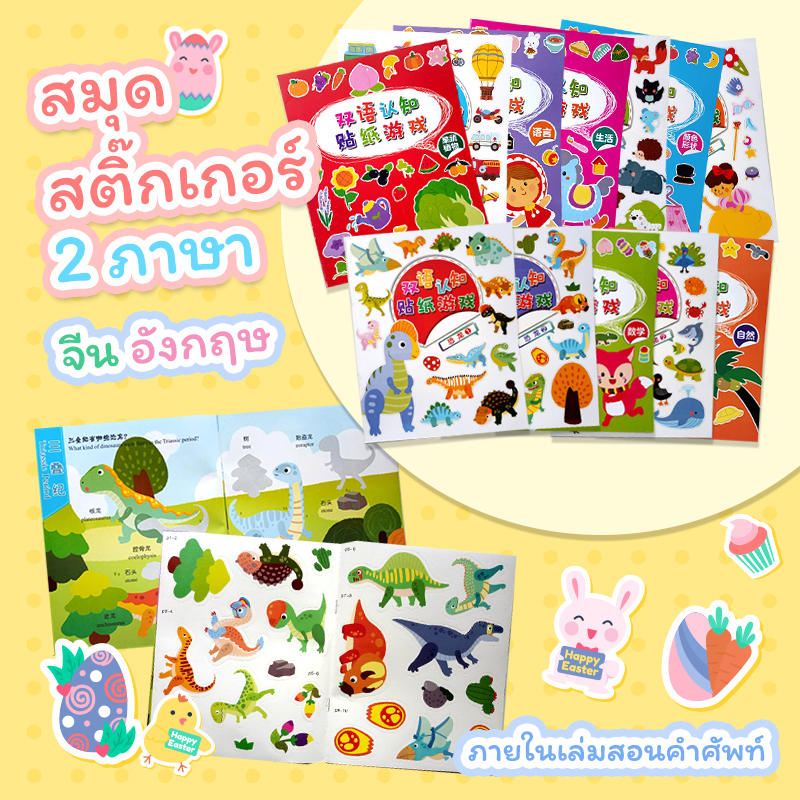 สติกเกอร์เด็กมุ้งมิ้ง สติ๊กเกอร์น่ารัก สมุดสติ๊กเกอร์ 2 ภาษา จีน อังกฤษ สมุดติดสติกเกอร์สอนคำศัพท์ ราคา/เล่ม