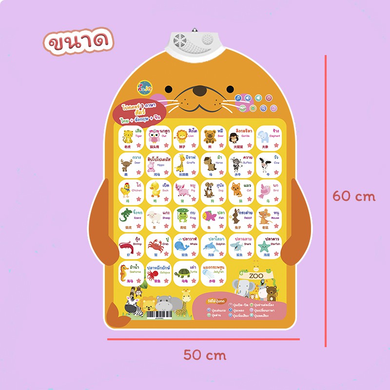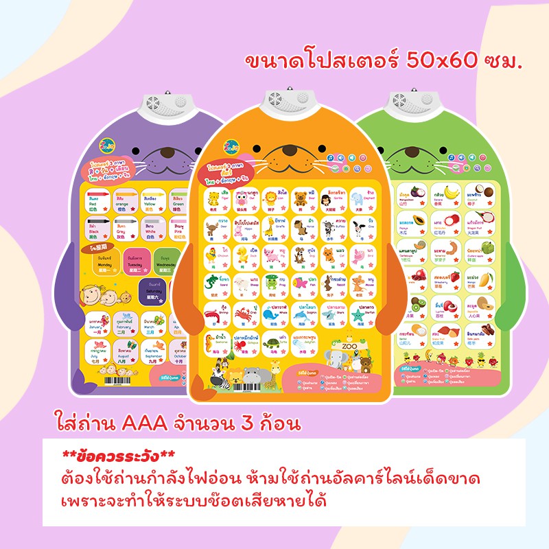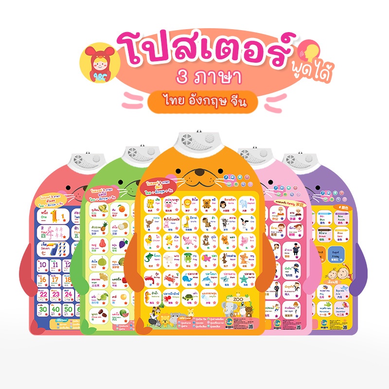 ABC Toy โปสเตอร์พูดได้ 3ภาษา ไทย อังกฤษ จีน หมวดต่างๆ กดแล้วมีเสียง โปสเตอร์เด็ก Poster ของเล่น เสริมพัฒนาการ