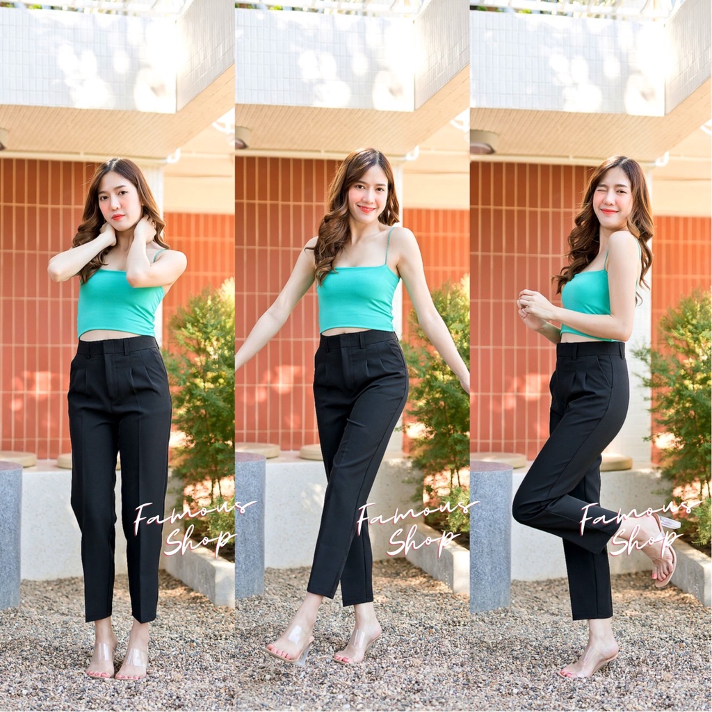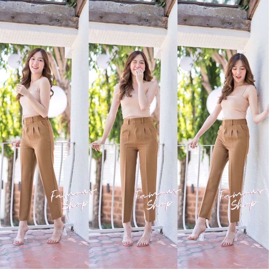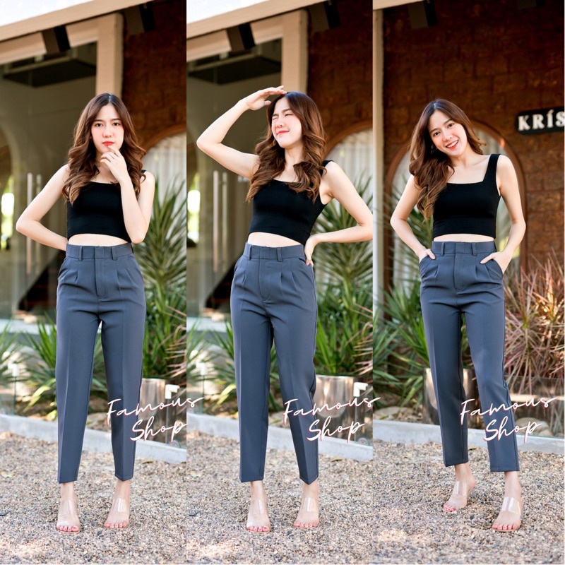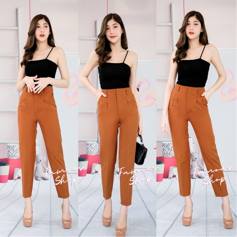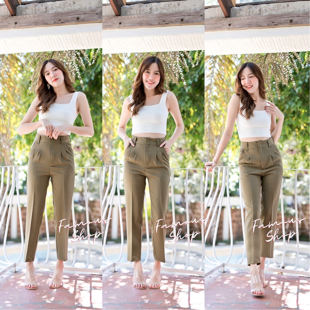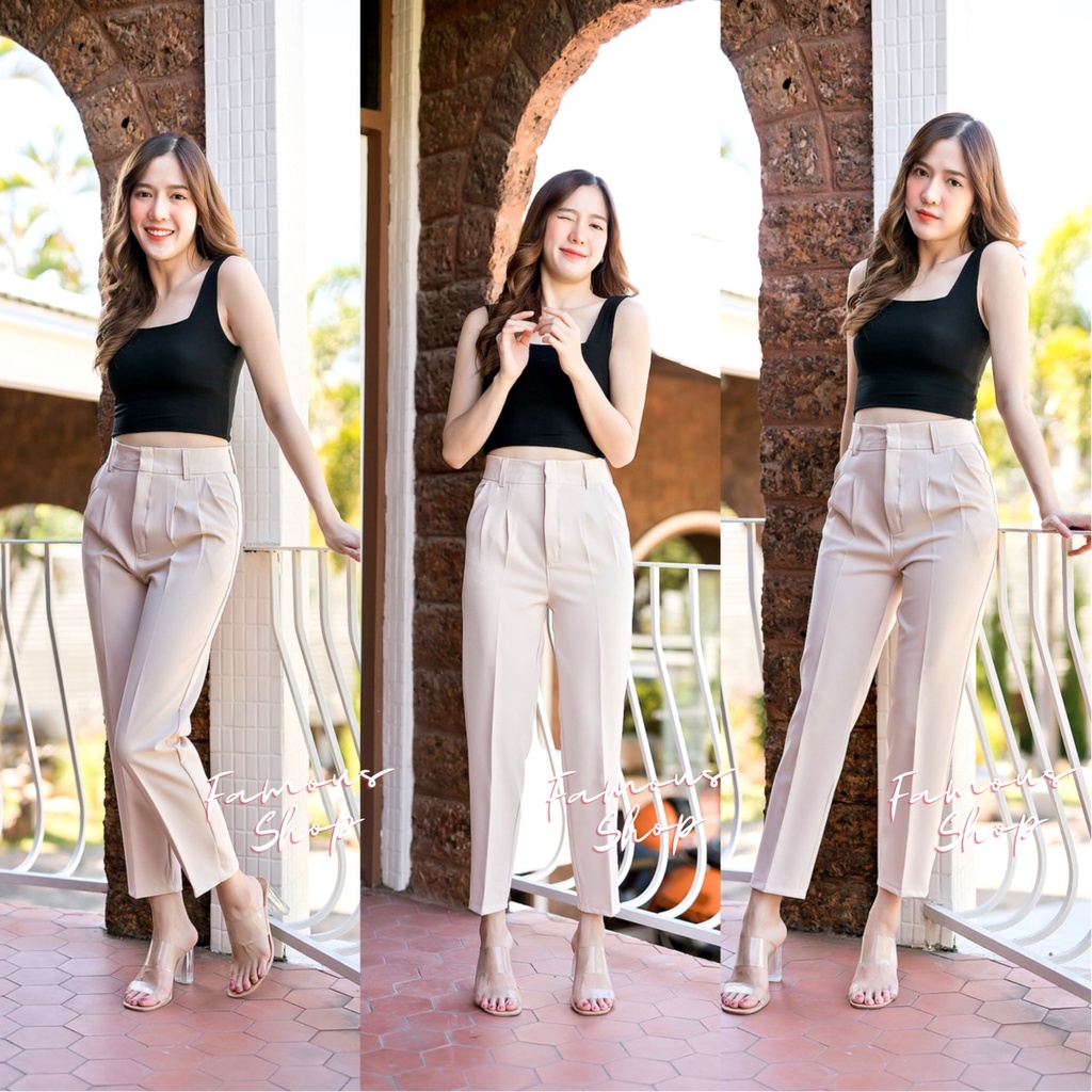 🍒ไมโครตะขอ8ส่วน🍒กางเกงขายาวเอวสูง/ผ้าไมโครจีบหน้า/ซิปหน้าหน้าไซต์S-2XL🧸งานป้ายFAMOUS🎀