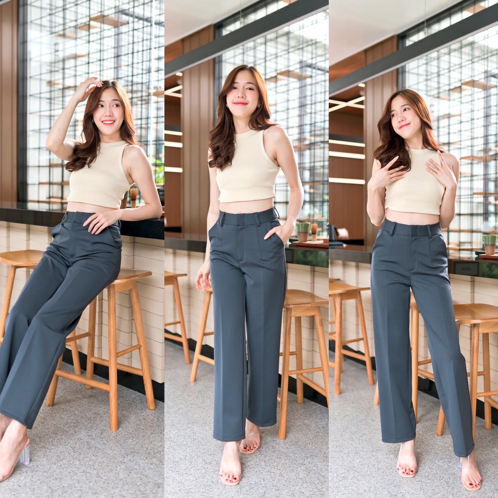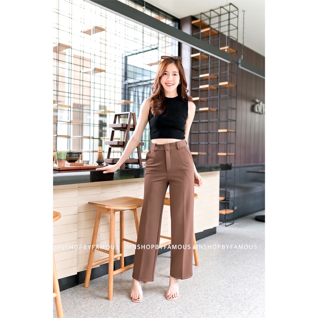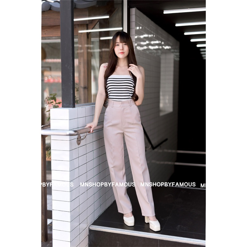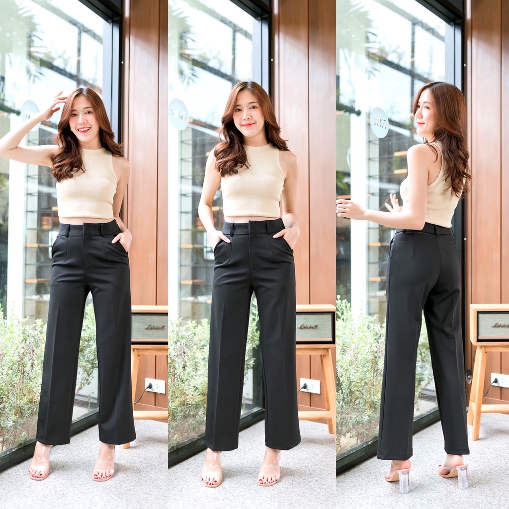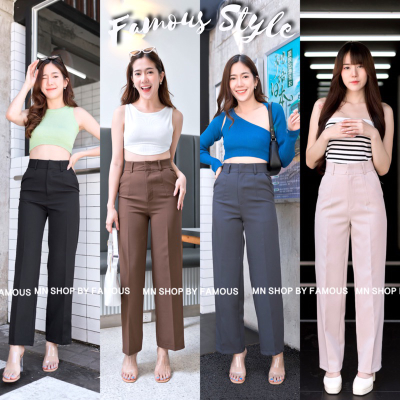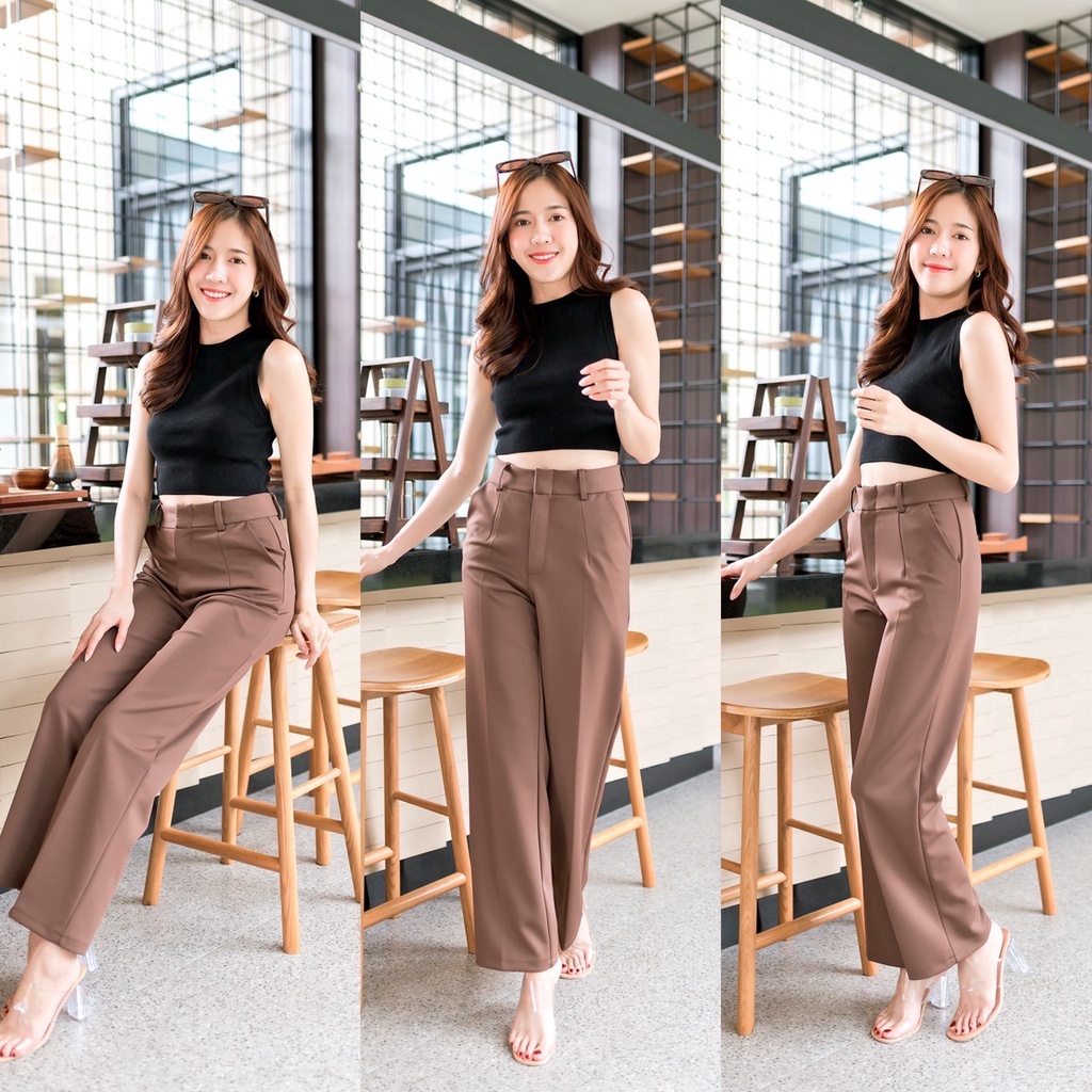 🍒กระบอกขาใหญ่จีบหน้า🍒กางเกงผ้าไมโครขาตรง(มีจีบหน้า)ไซส์S-2Xl📦งานป้ายพร้อมส่ง