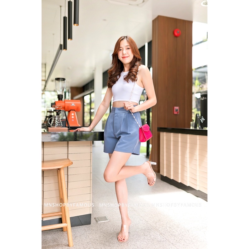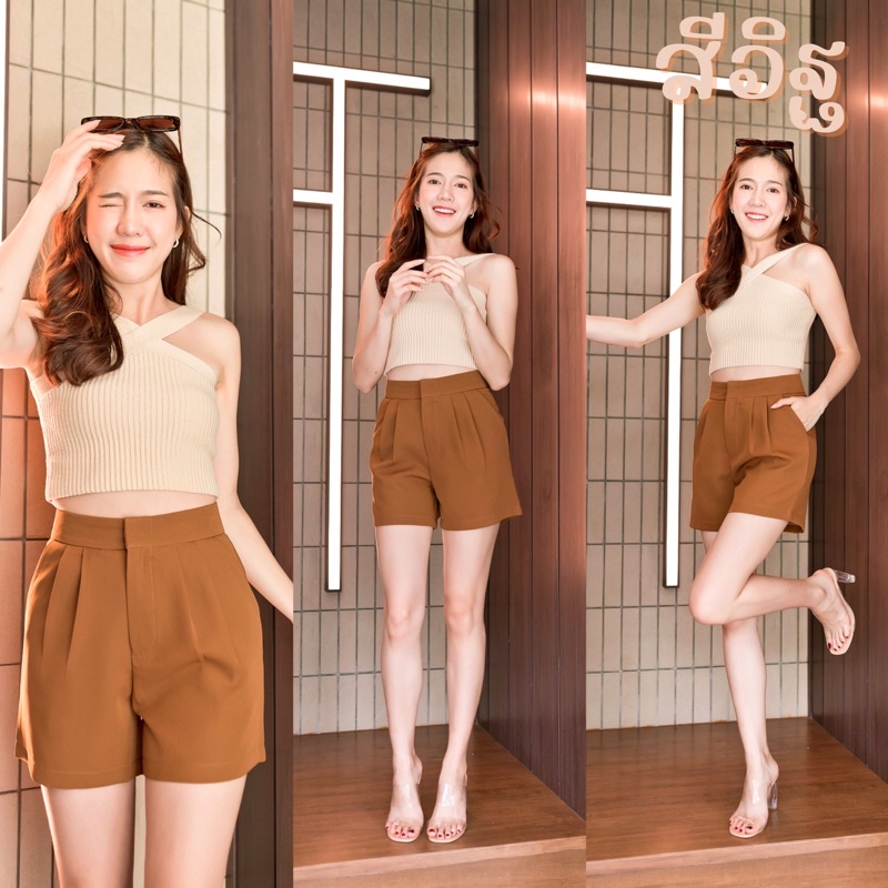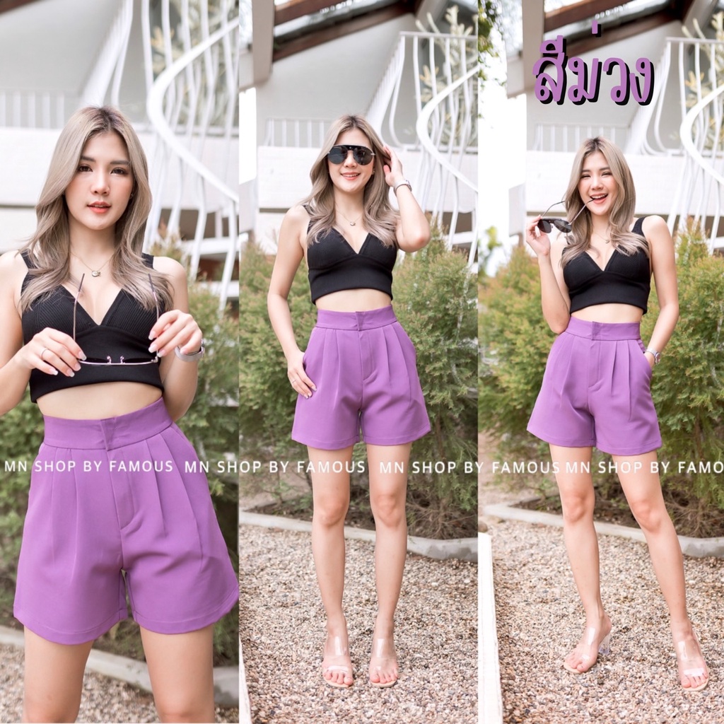 🍒ขาสั้นไมโคจีบตะขอ🍒 เอวสูงซิปหน้าS-2Xl-📦สินค้าพร้อมส่ง