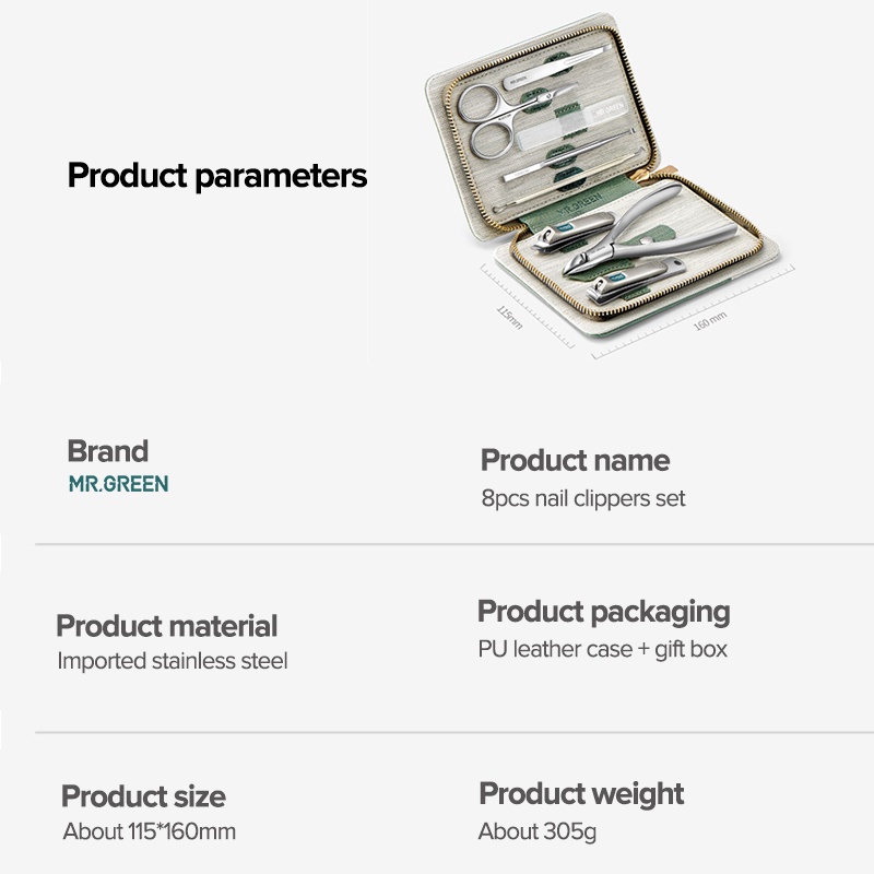 MR.GREEN ชุดกรรไกรตัดเล็บมือ เล็บเท้า แบบสเตนเลส 8 ชิ้น พร้อมกล่องเก็บ