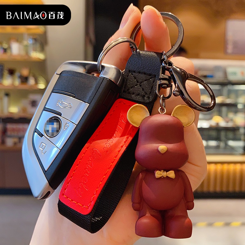 แฟชั่นยุโรปเหนือหมีผูกโบว์พวงกุญแจบุคลิกอินเทรนด์จี้ห้อยกระเป๋าพวงกุญแจรถ