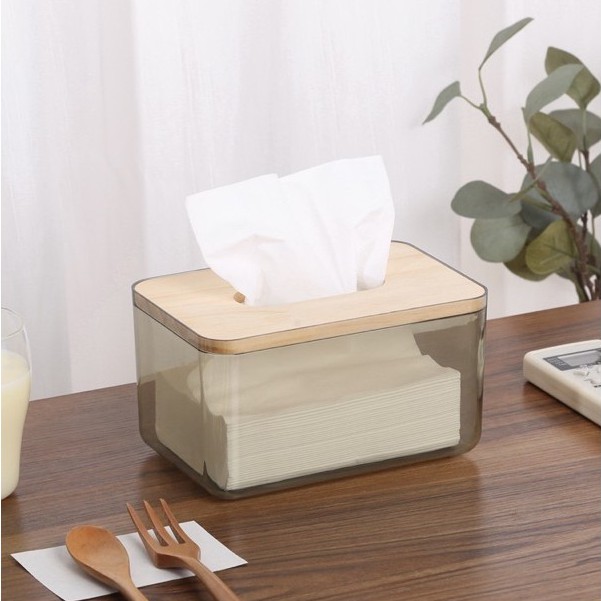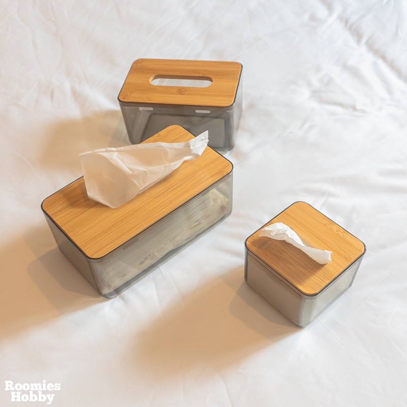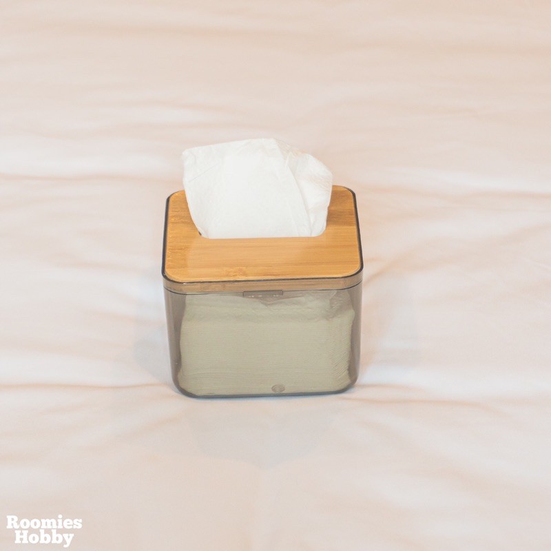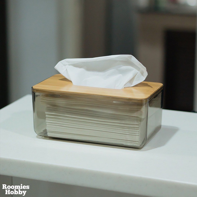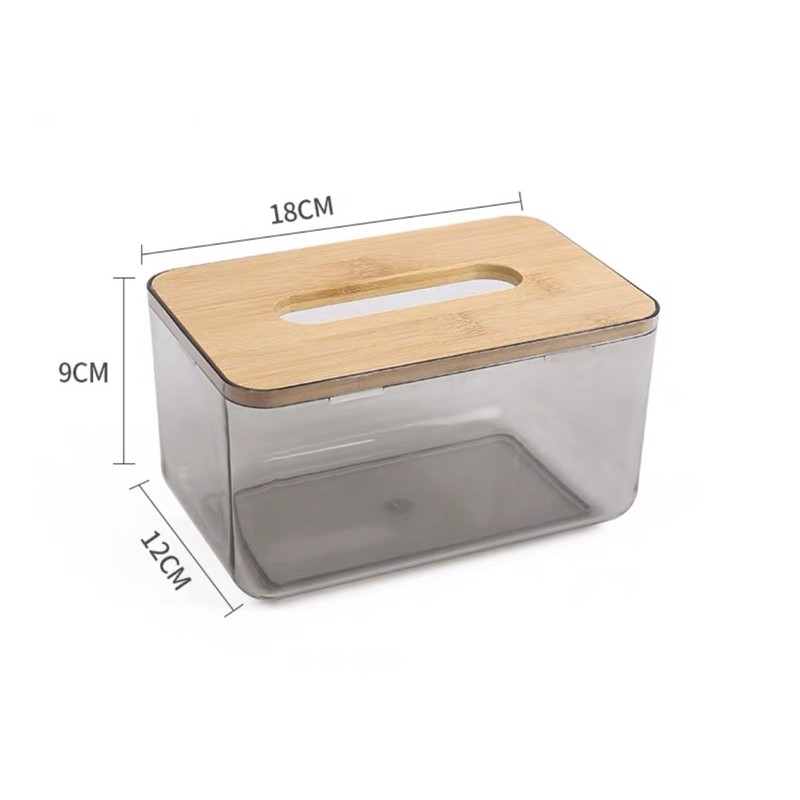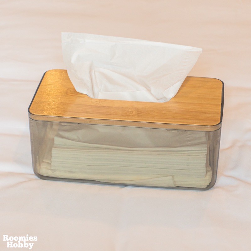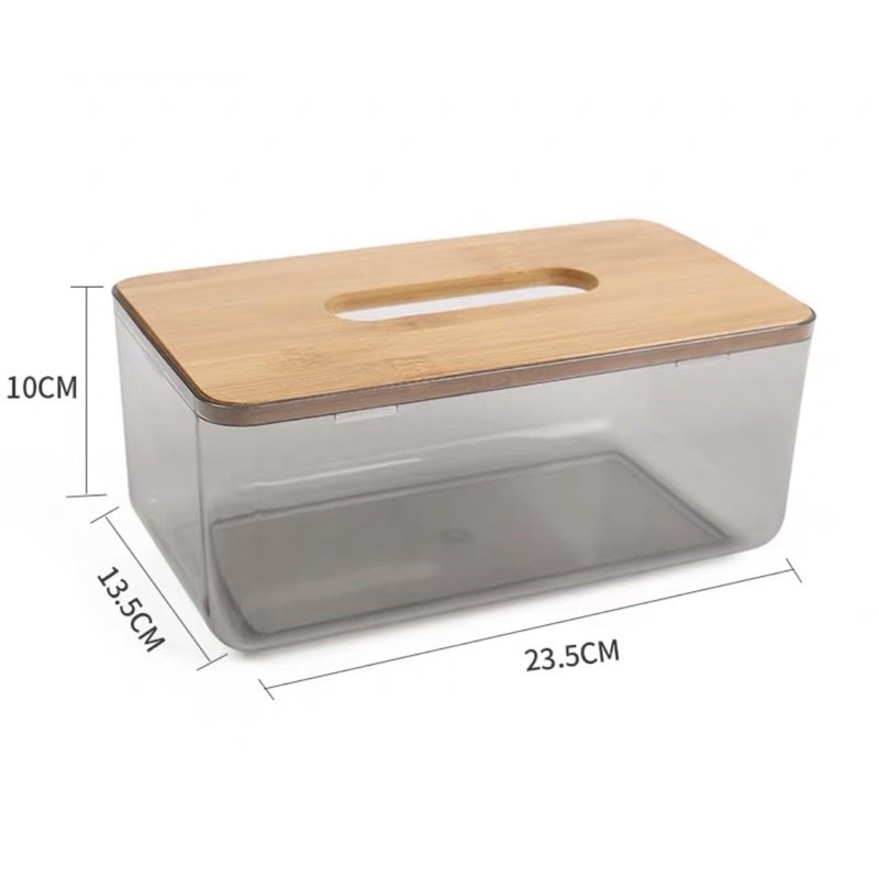 🌷โค้ดPB6SA3UYซื้อ 300 ลด 45.-🌷 กล่องทิชชู่แบบใส ฝาไม้ไผ่ กล่องใส่กระดาษทิชชู่ กล่องทิชชู่อเนกประสงค์