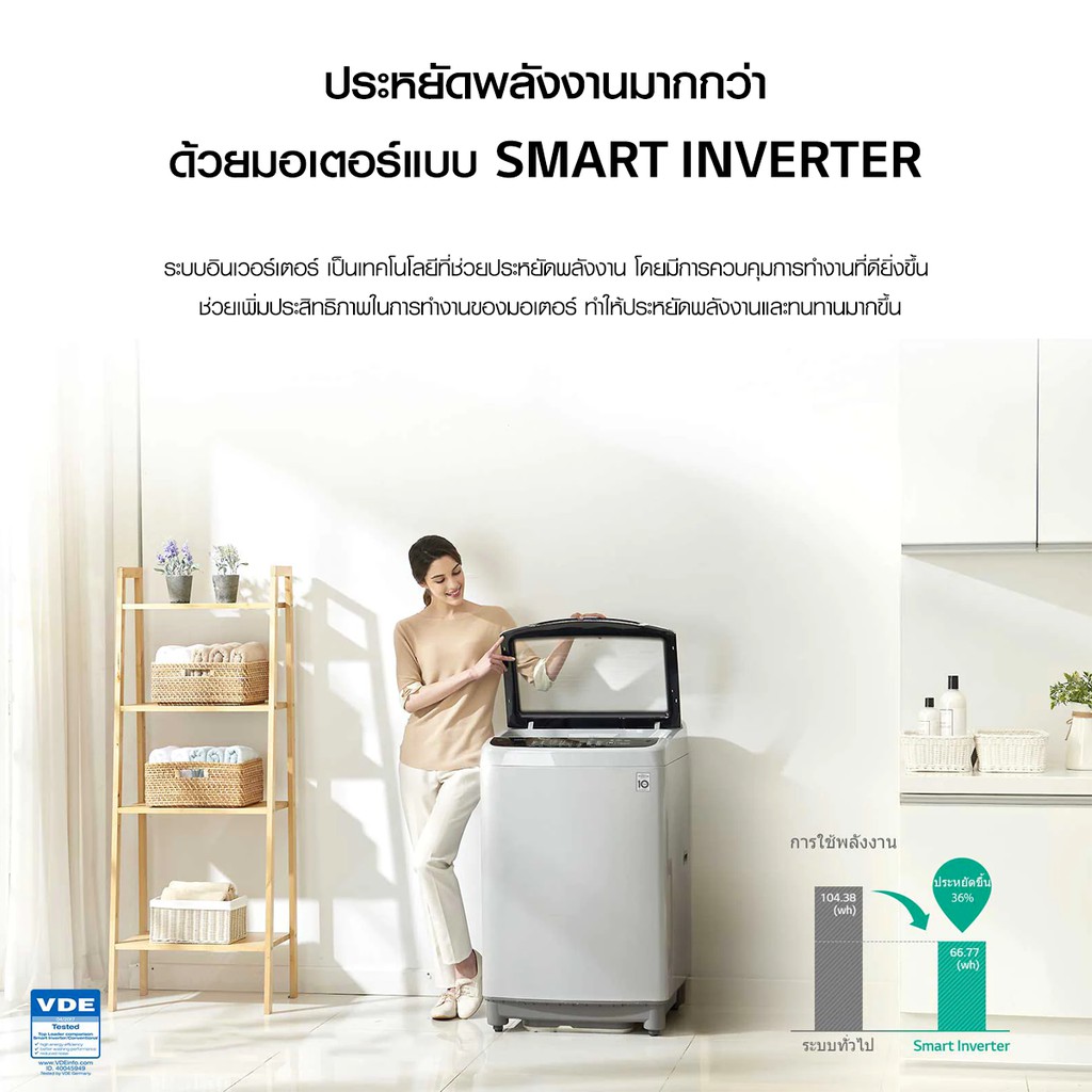LG เครื่องซักผ้าฝาบน รุ่น T2312VS2M ระบบ Smart Inverter ความจุซัก 12 กก.