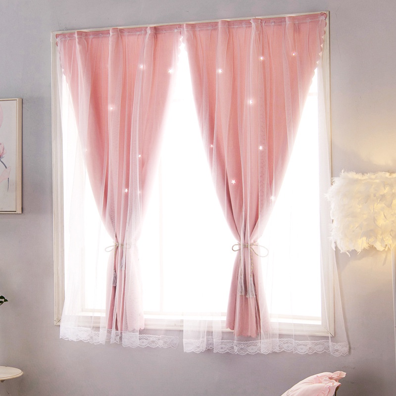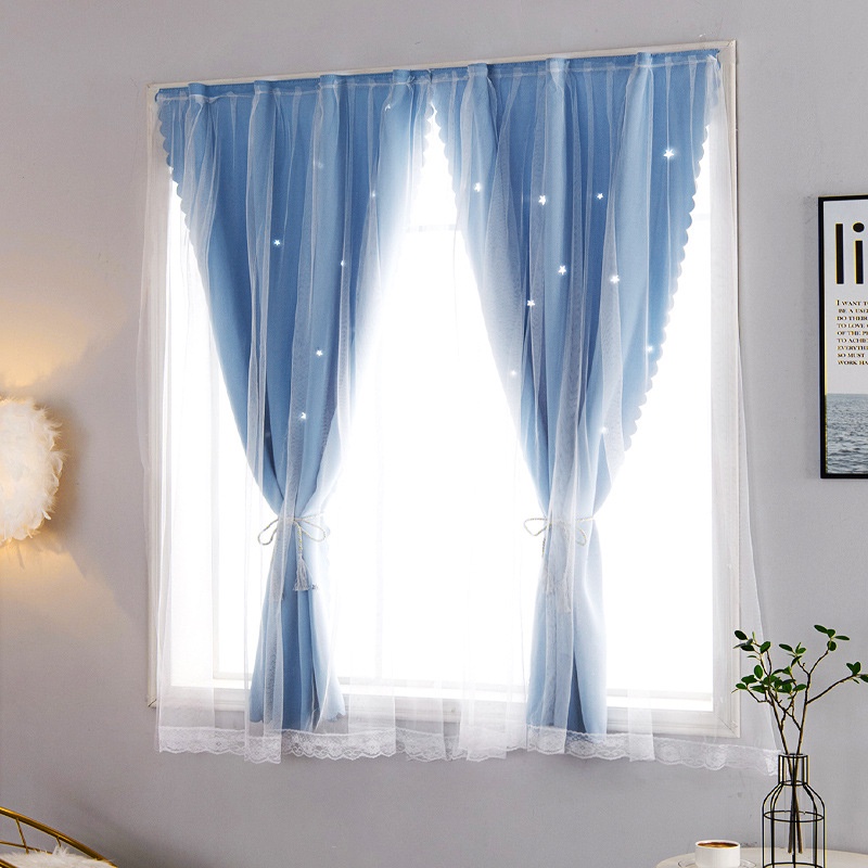 ผ้าม่านตีนตุ๊กแก ผ้าม่านหน้าต่าง ผ้าม่านกันแสง ลายดาว มีหลายขนาดให้เลือก สไตล์มินิมอล ใช้ตีนตุ๊กแก ไม่ต้องเจาะผนัง