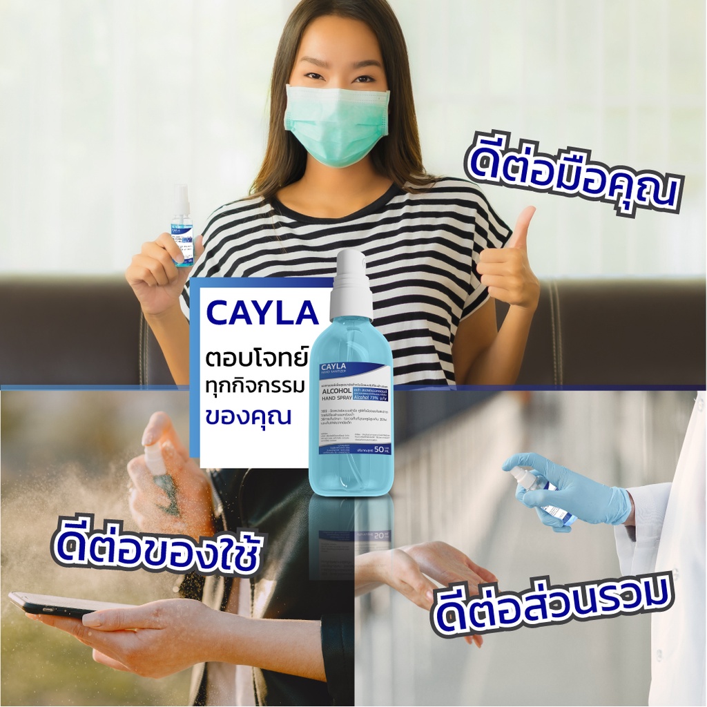 🔥จ่าย0฿+ส่งฟรีไม่ต้องใช้โค้ด🔥สเปรย์แอลกอฮอล์ กลิ่นหอม ถนอมมือ แบรนด์ CAYLA ขนาดพกพา 50ml.