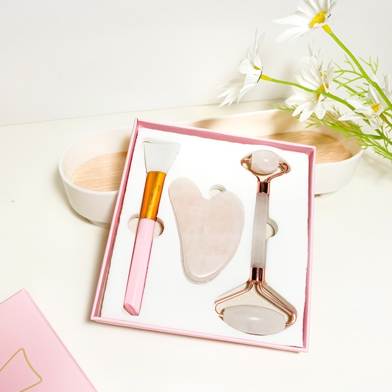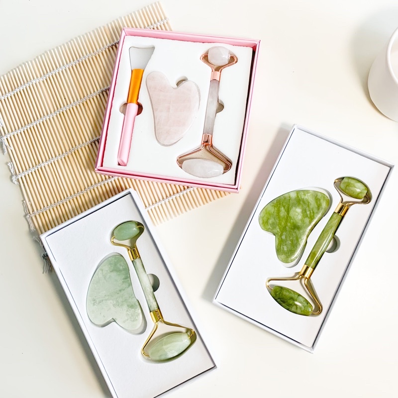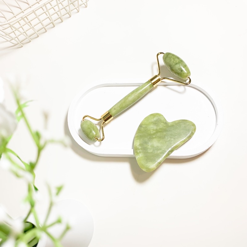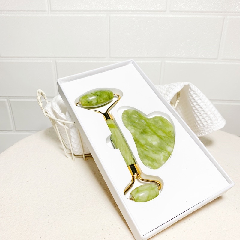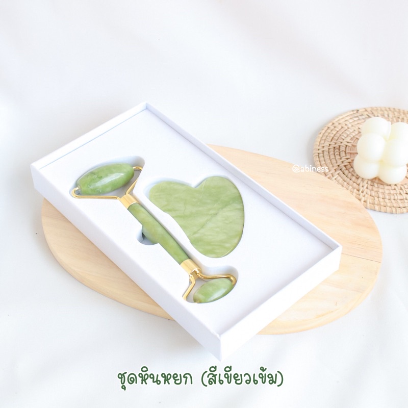 พร้อมส่งจากไทย กัวซาหินหยกแท้นวดหน้า2ชิ้น สำหรับนวดใบหน้าเพื่อความสวยกลับสู่วัยเยาว์กระชับใบหน้า