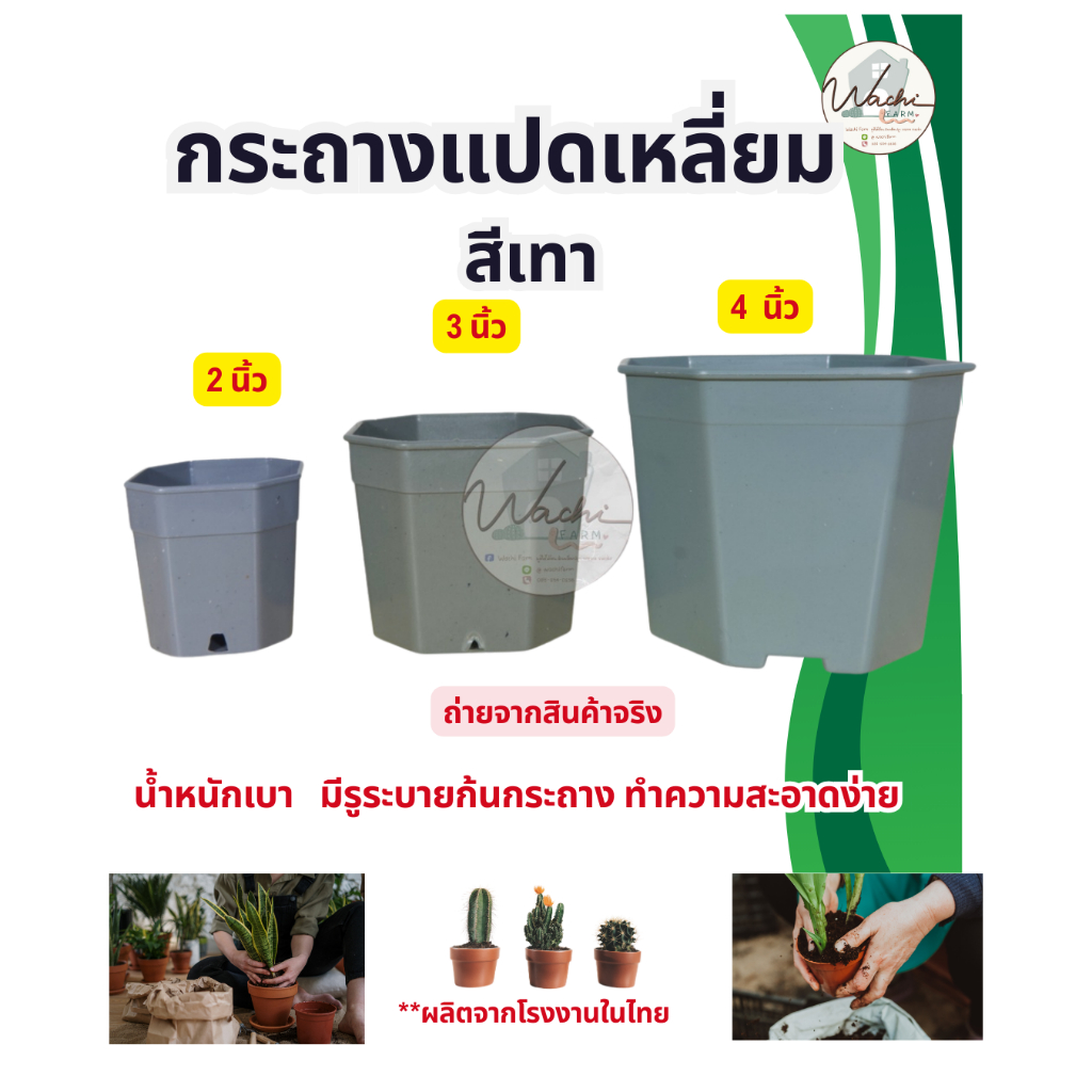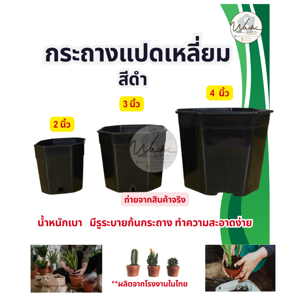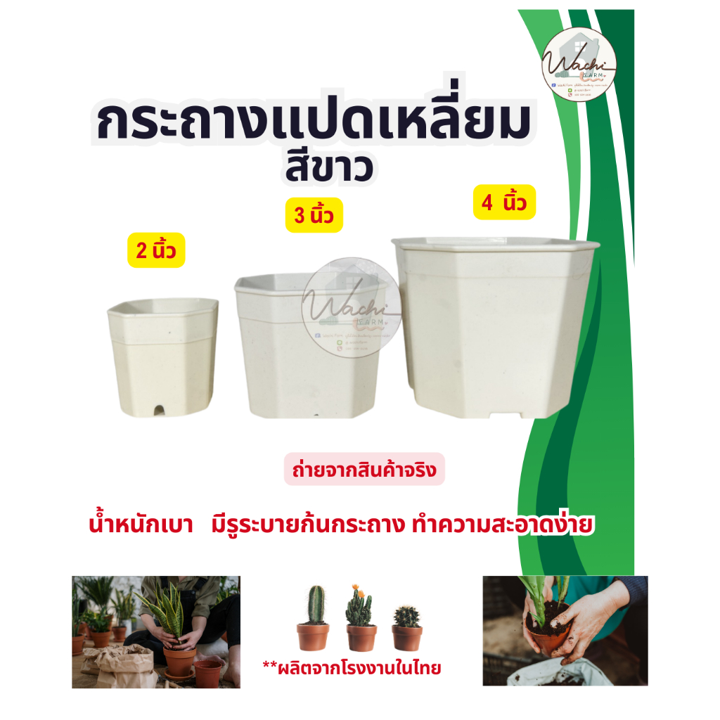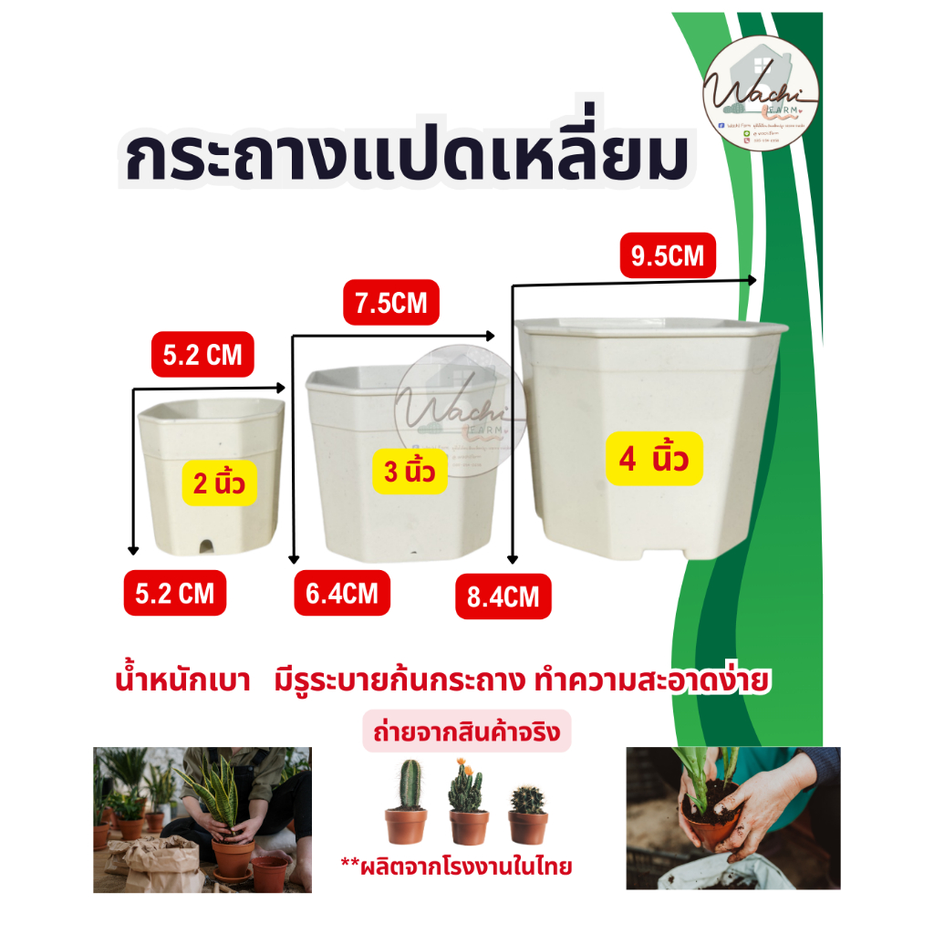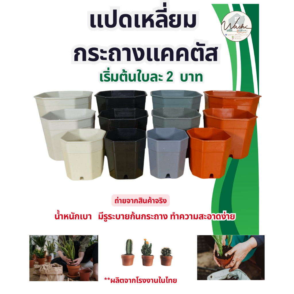 กระถางกระบองเพชร แคคตัส ทรงแปดเหลี่ยม ขนาด 2 นิ้ว, 3 นิ้ว และ 4 นิ้ว