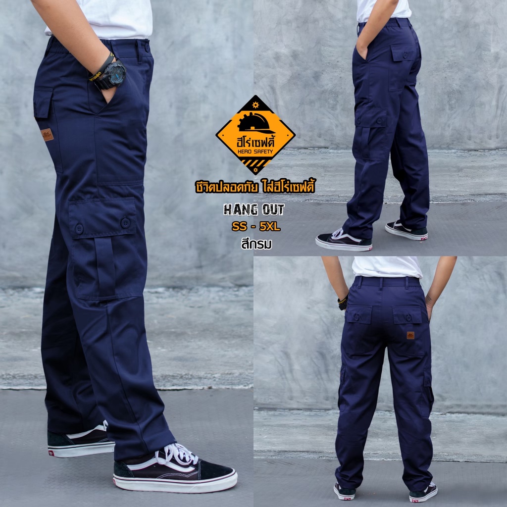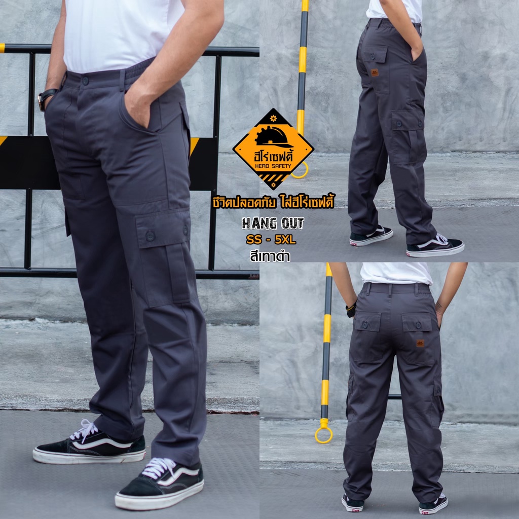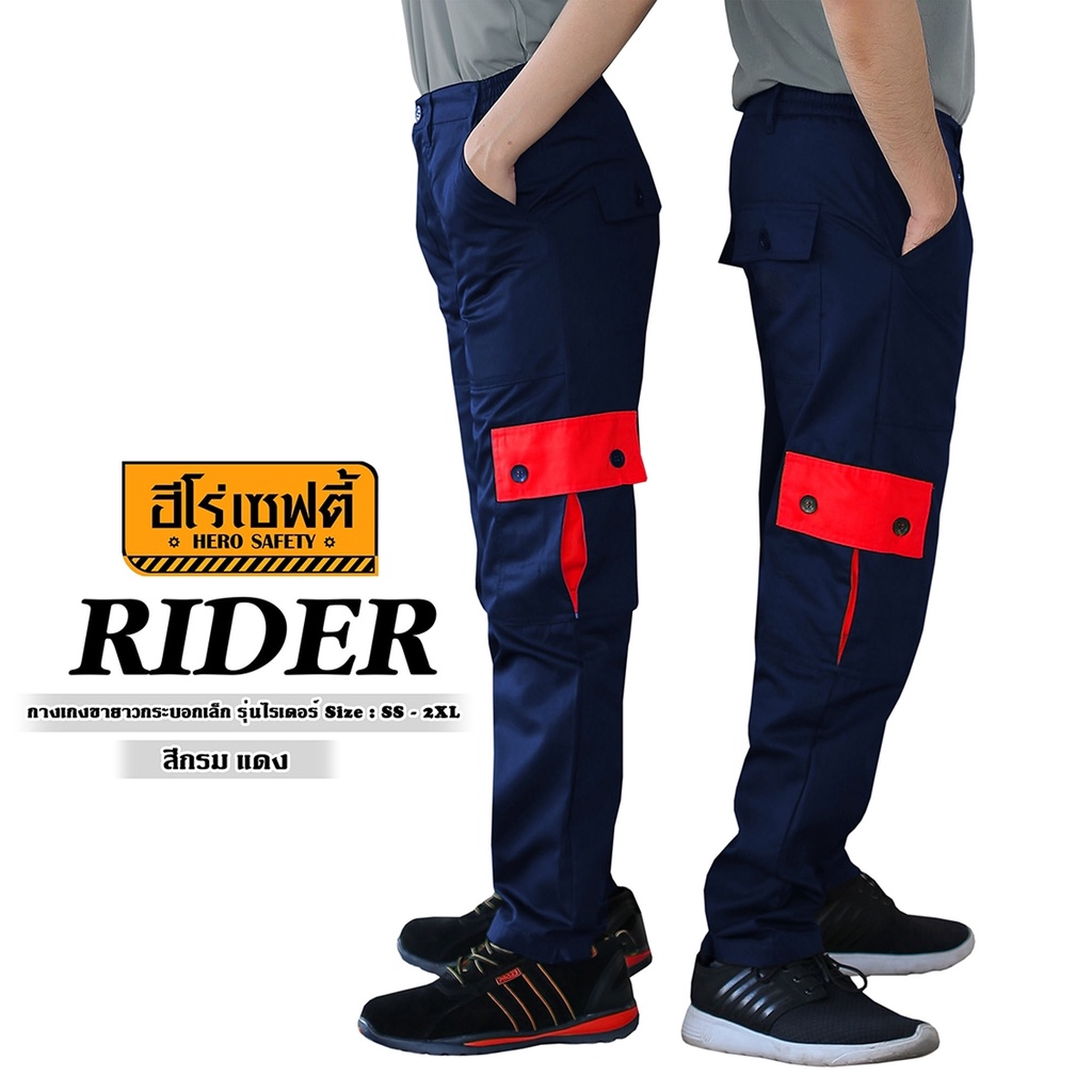 HERO SAFETY :กางเกงคาร์โก้ รุ่น Rider กระเป๋าตัดต่อสี กระบอกเล็ก ขายาว ไรเดอร์ ขนส่ง WORKWEARTHAILAND